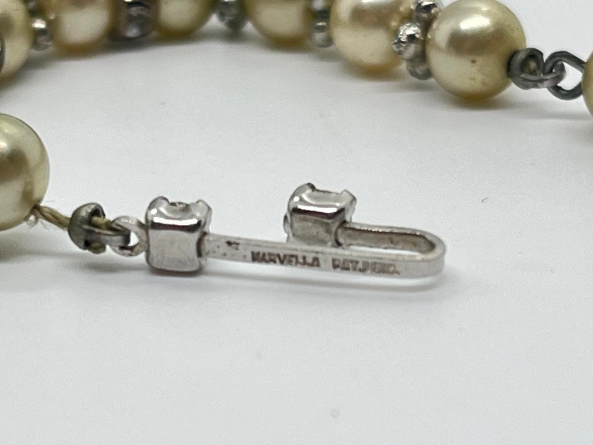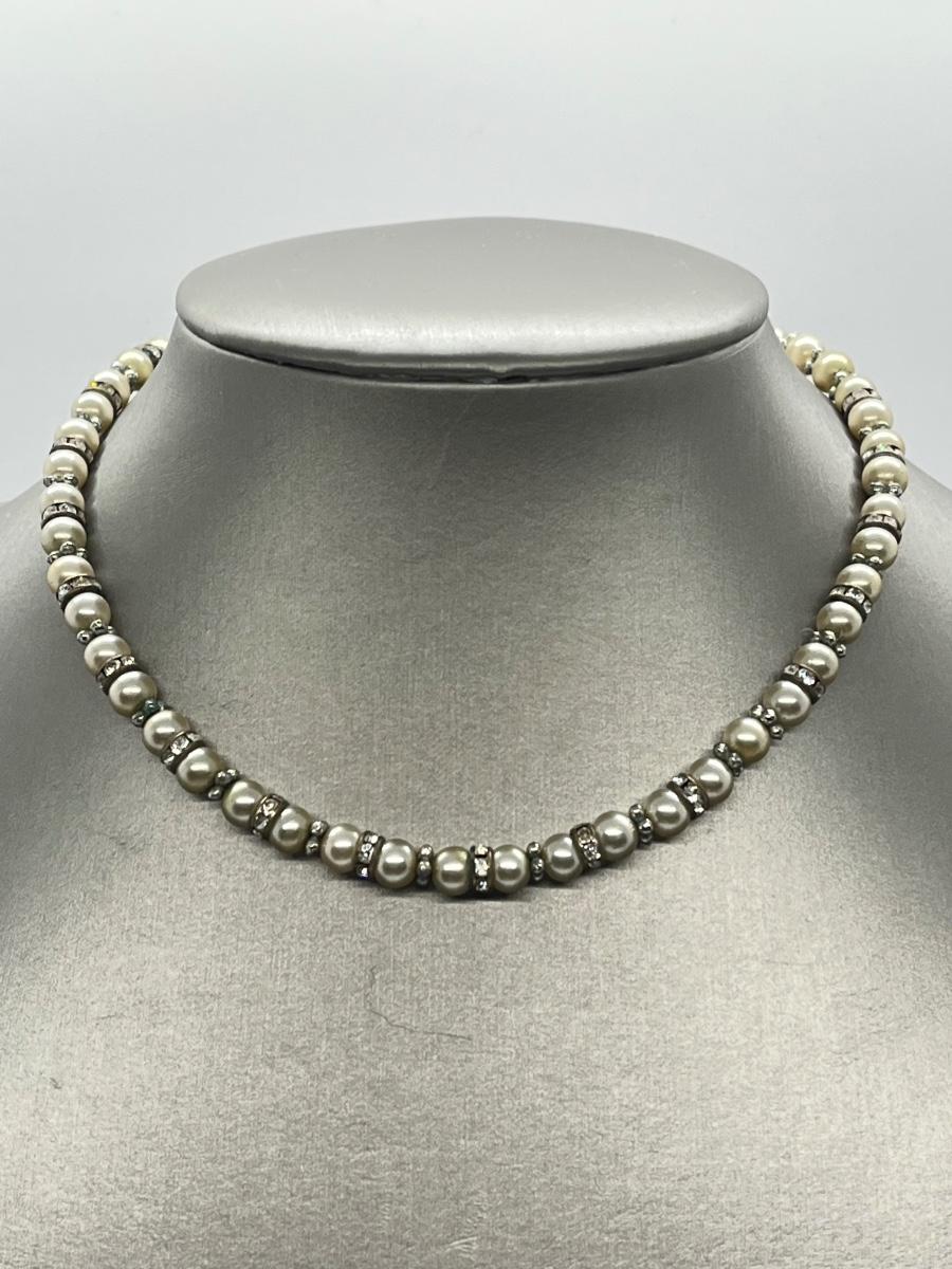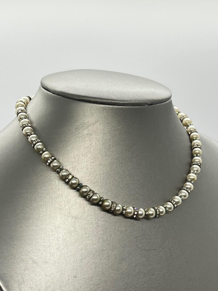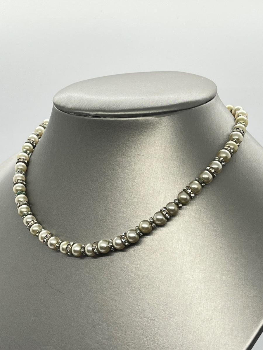 Vintage Marvella Faux Pearl & Rhinestone choker style necklace - 13" + 2"