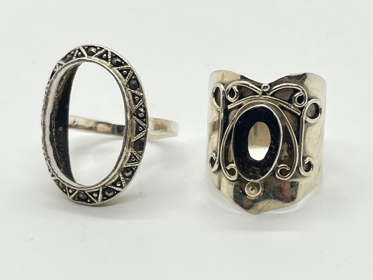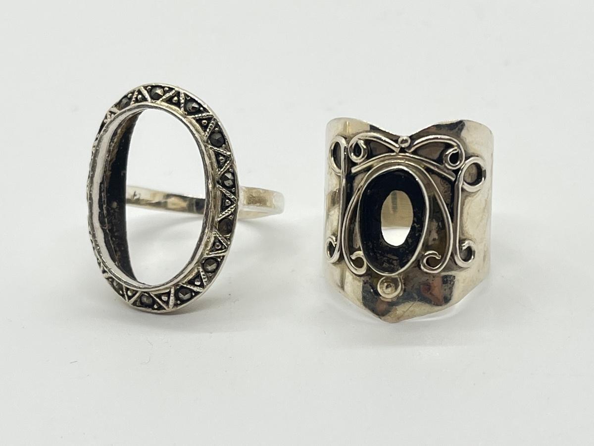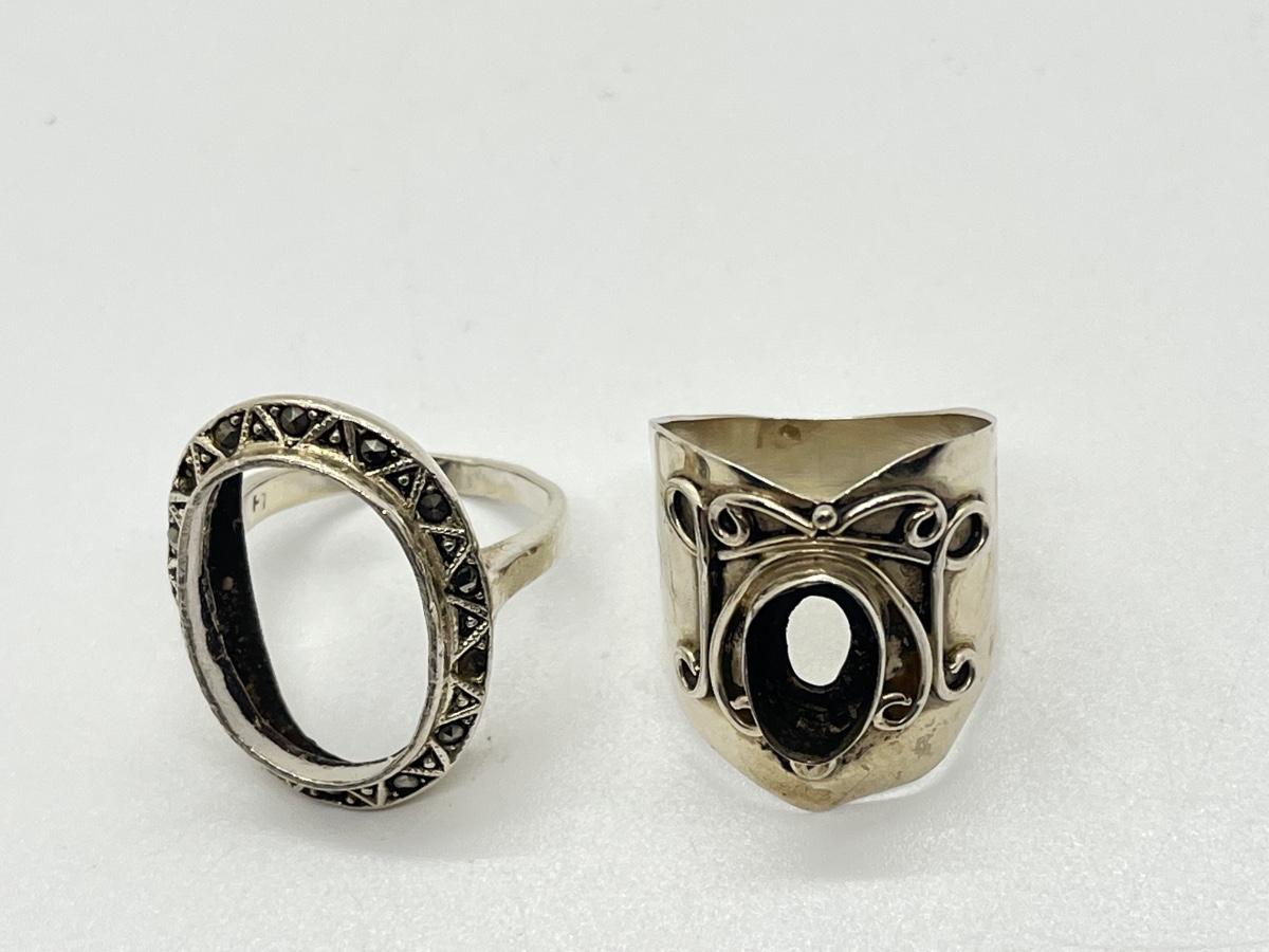 LOT 135: Two Size 7 Sterling Silver Rings - Missing Stones