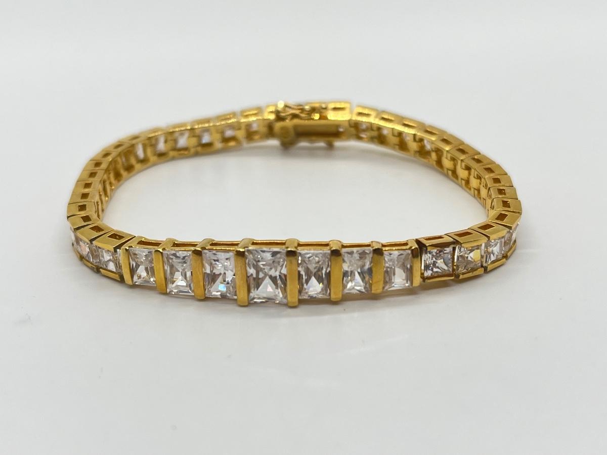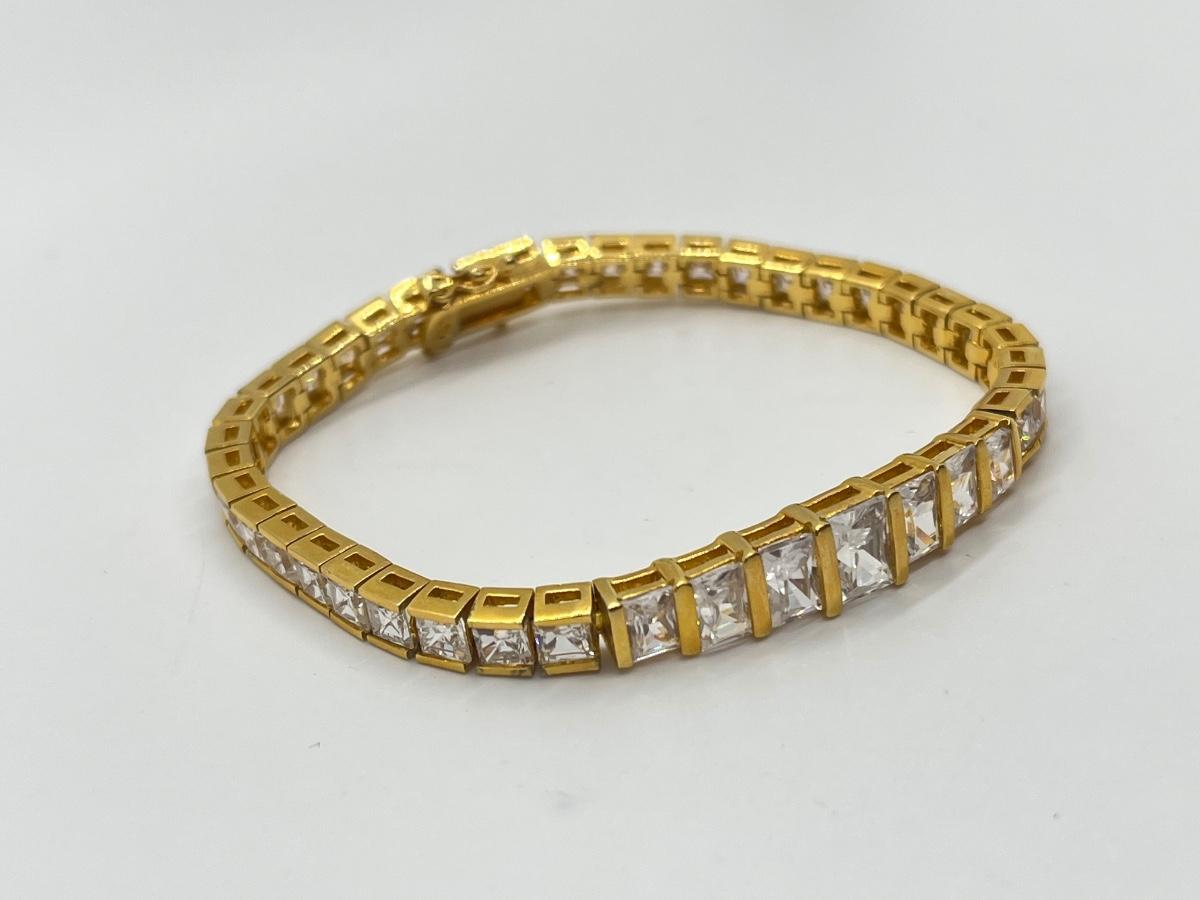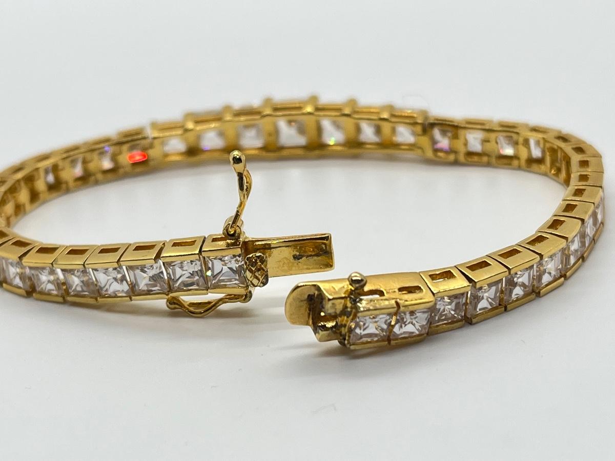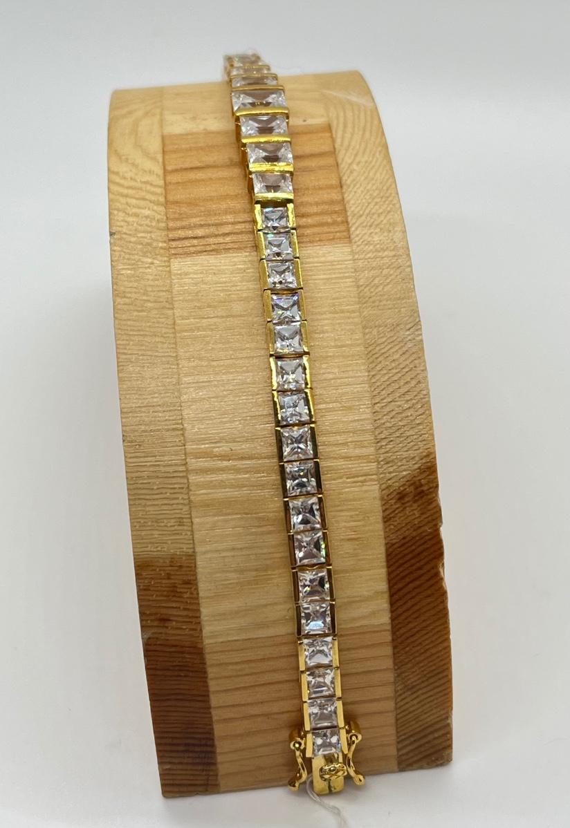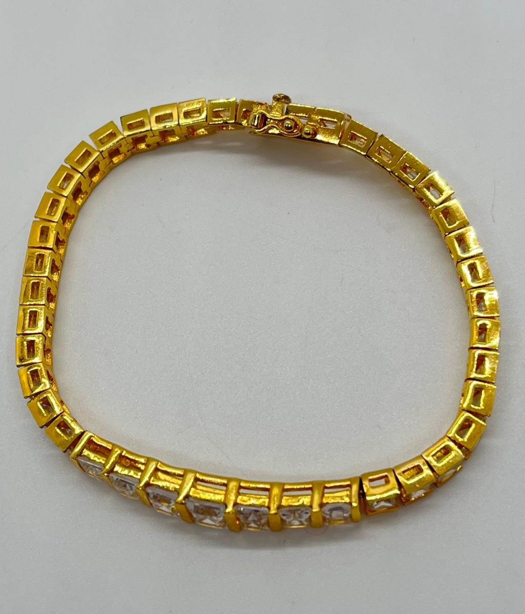 LOT 6: Gold Vermeil over Sterling Silver CZ Tennis Bracelet - 7-1/2"