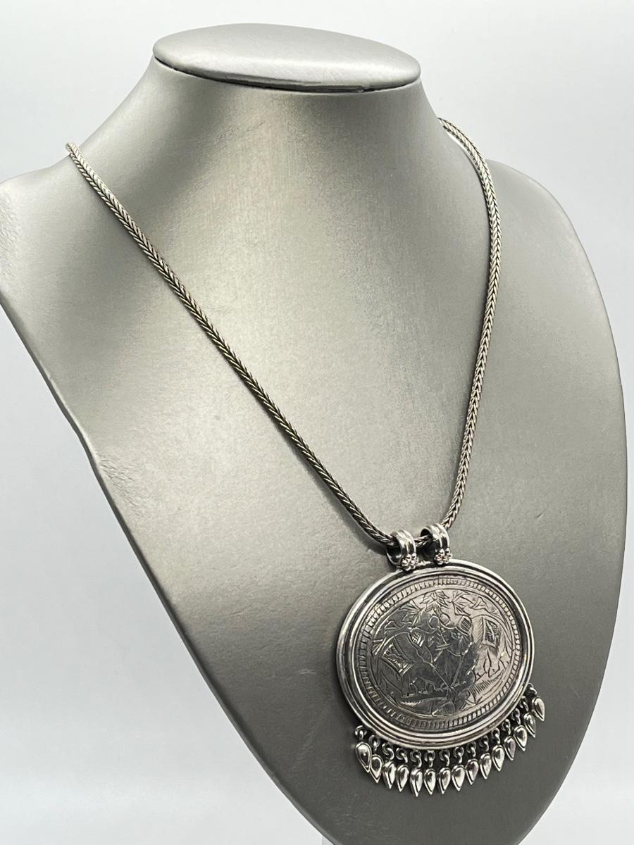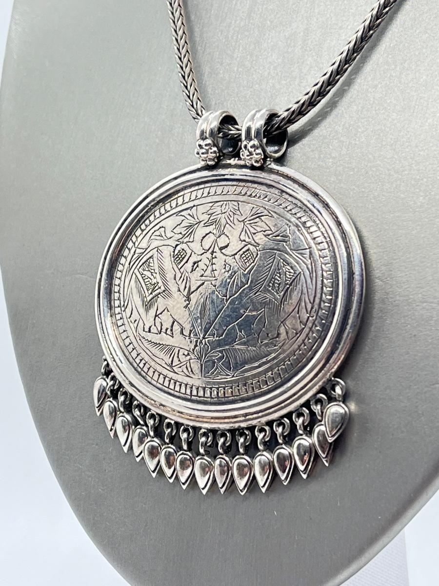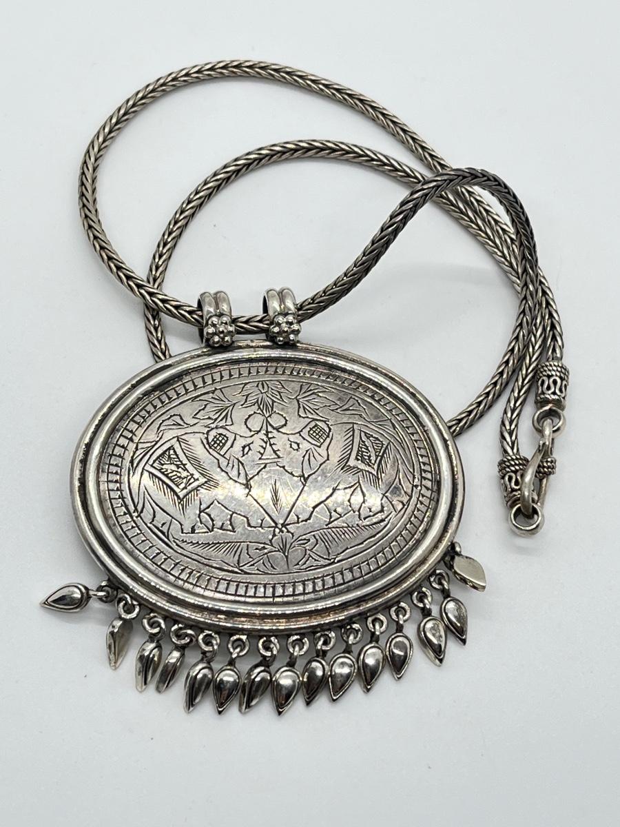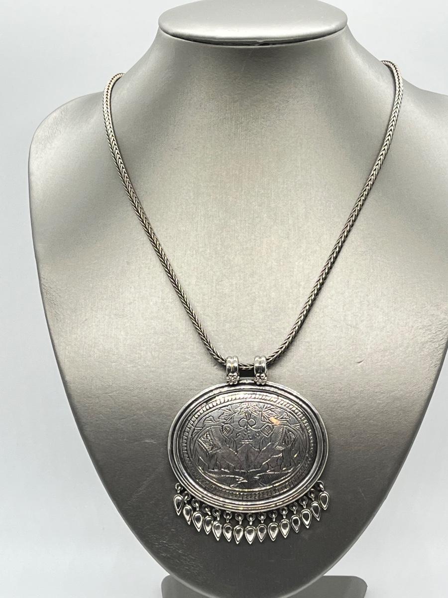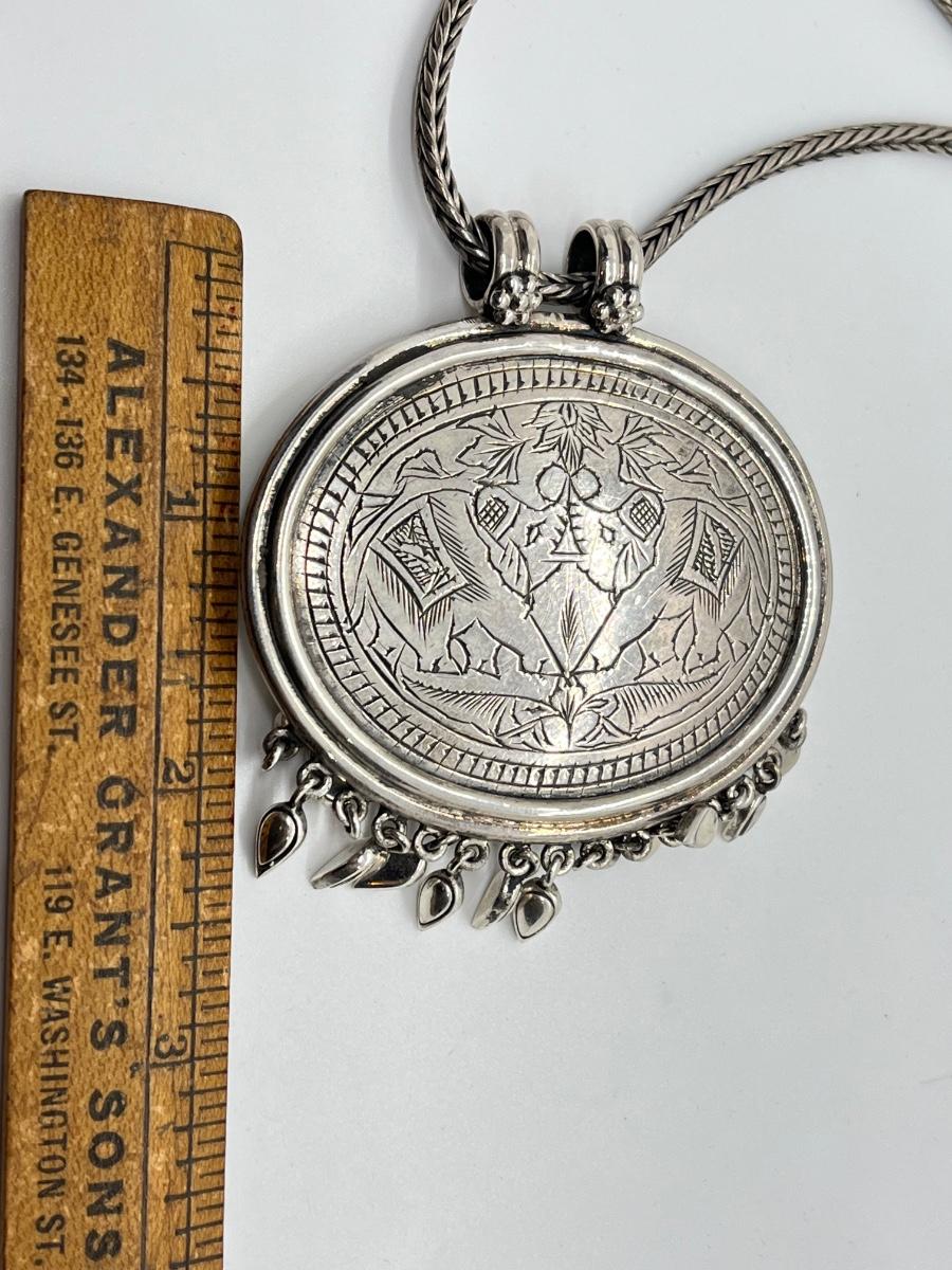 LOT 12: Large Pendant with Elephant Design on 21" Chain - Sterling Silver - Made in India - 73.96 gtw