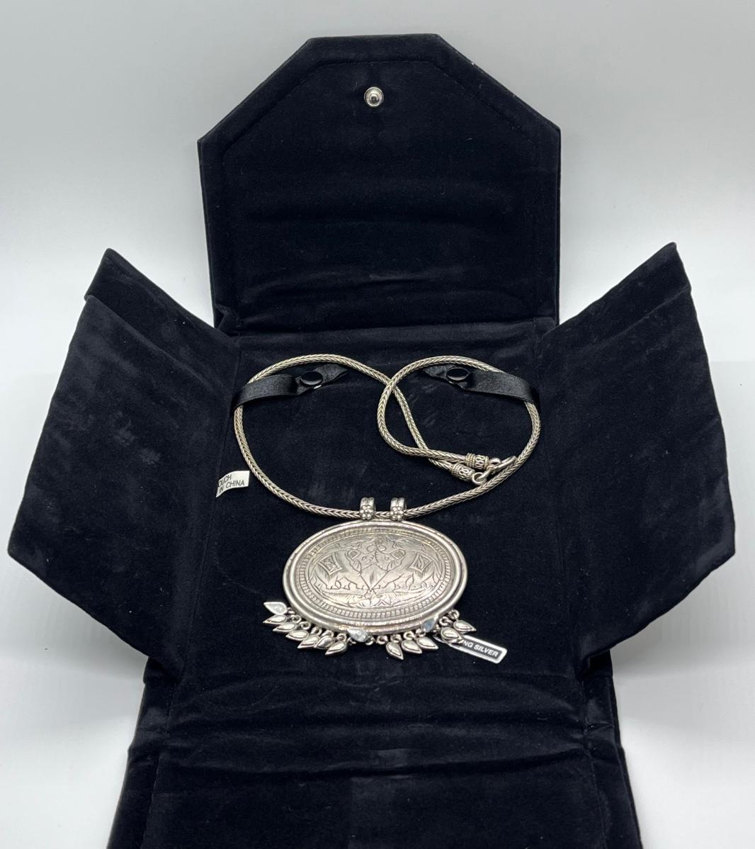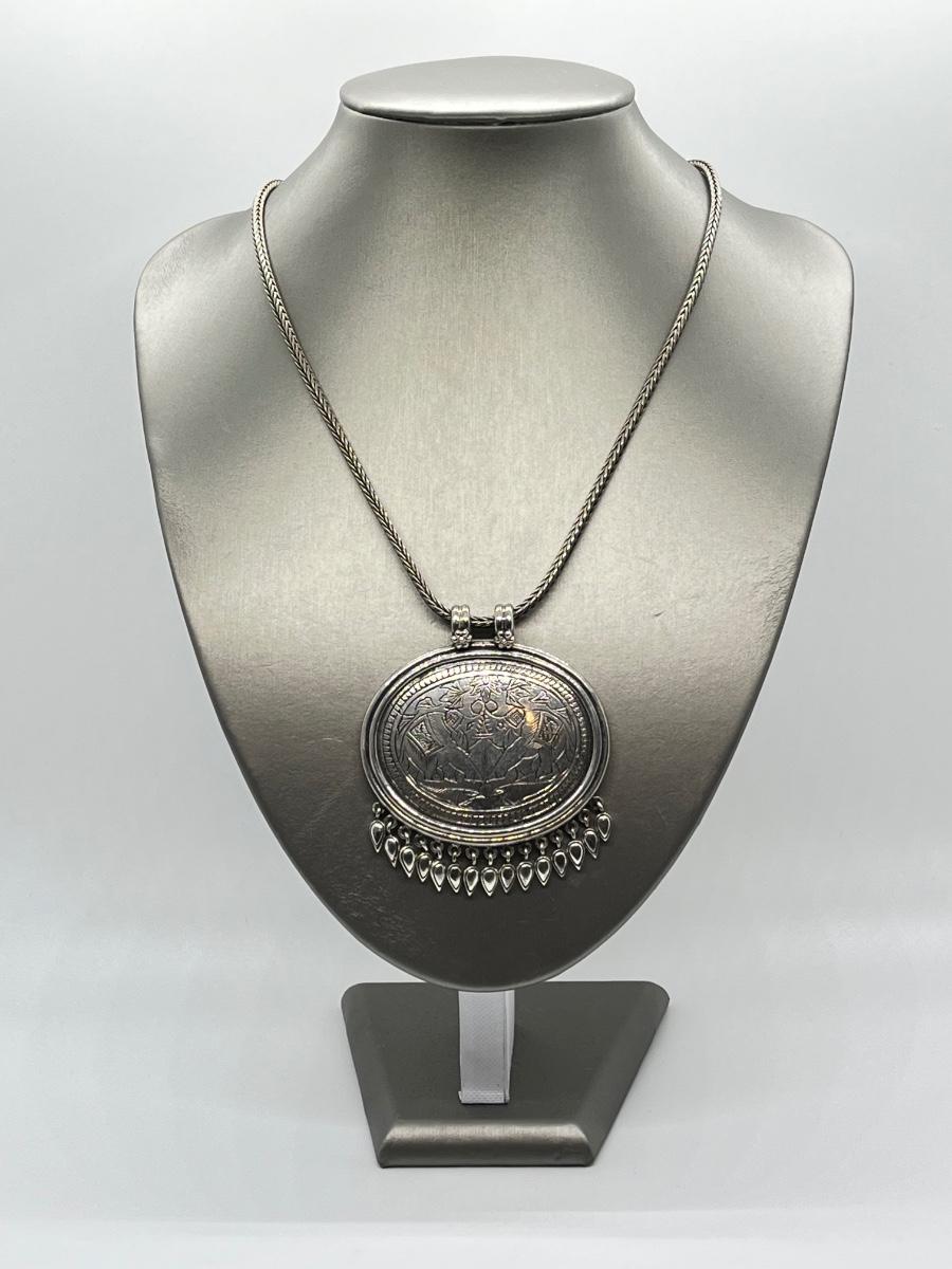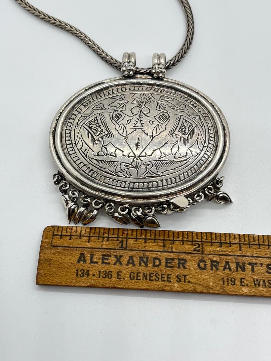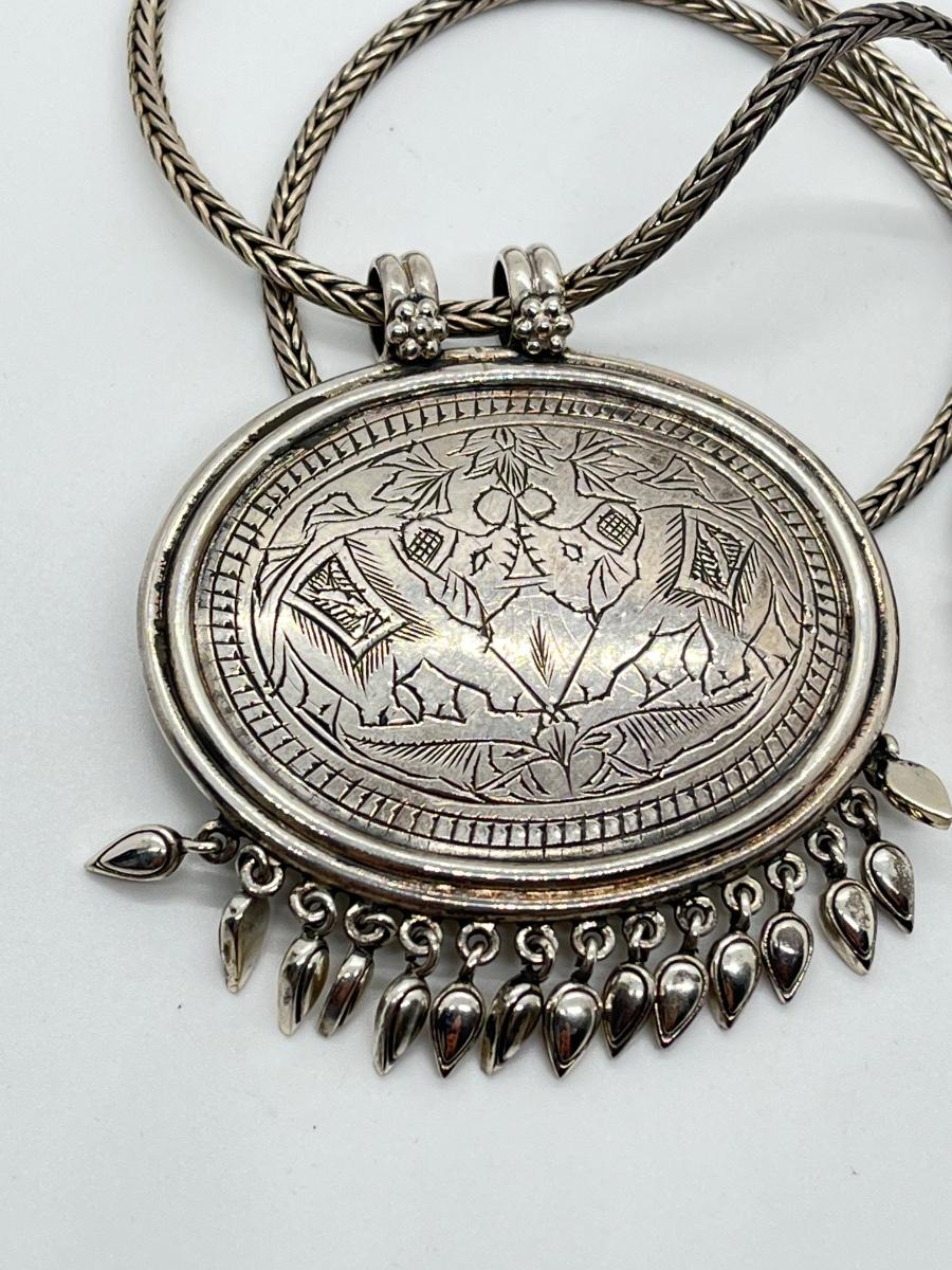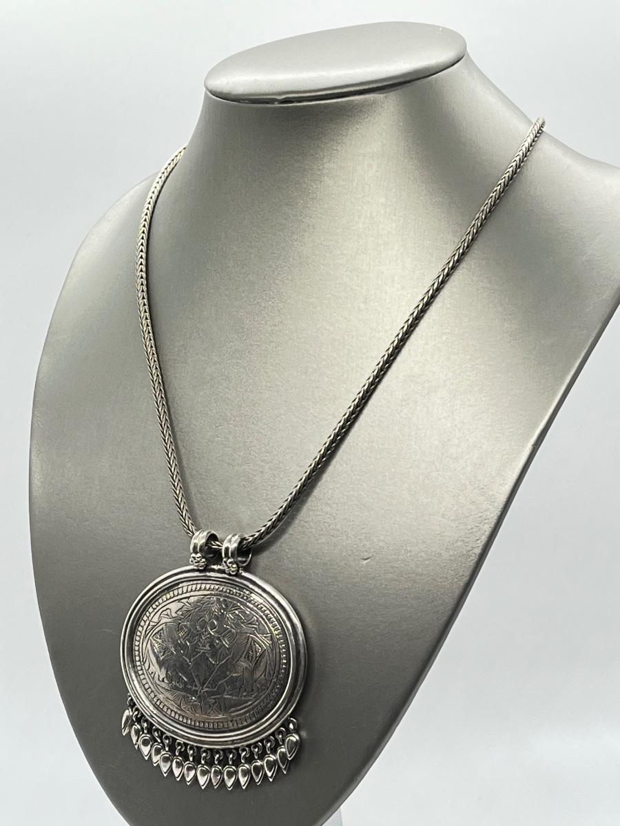 LOT 12: Large Pendant with Elephant Design on 21" Chain - Sterling Silver - Made in India - 73.96 gtw