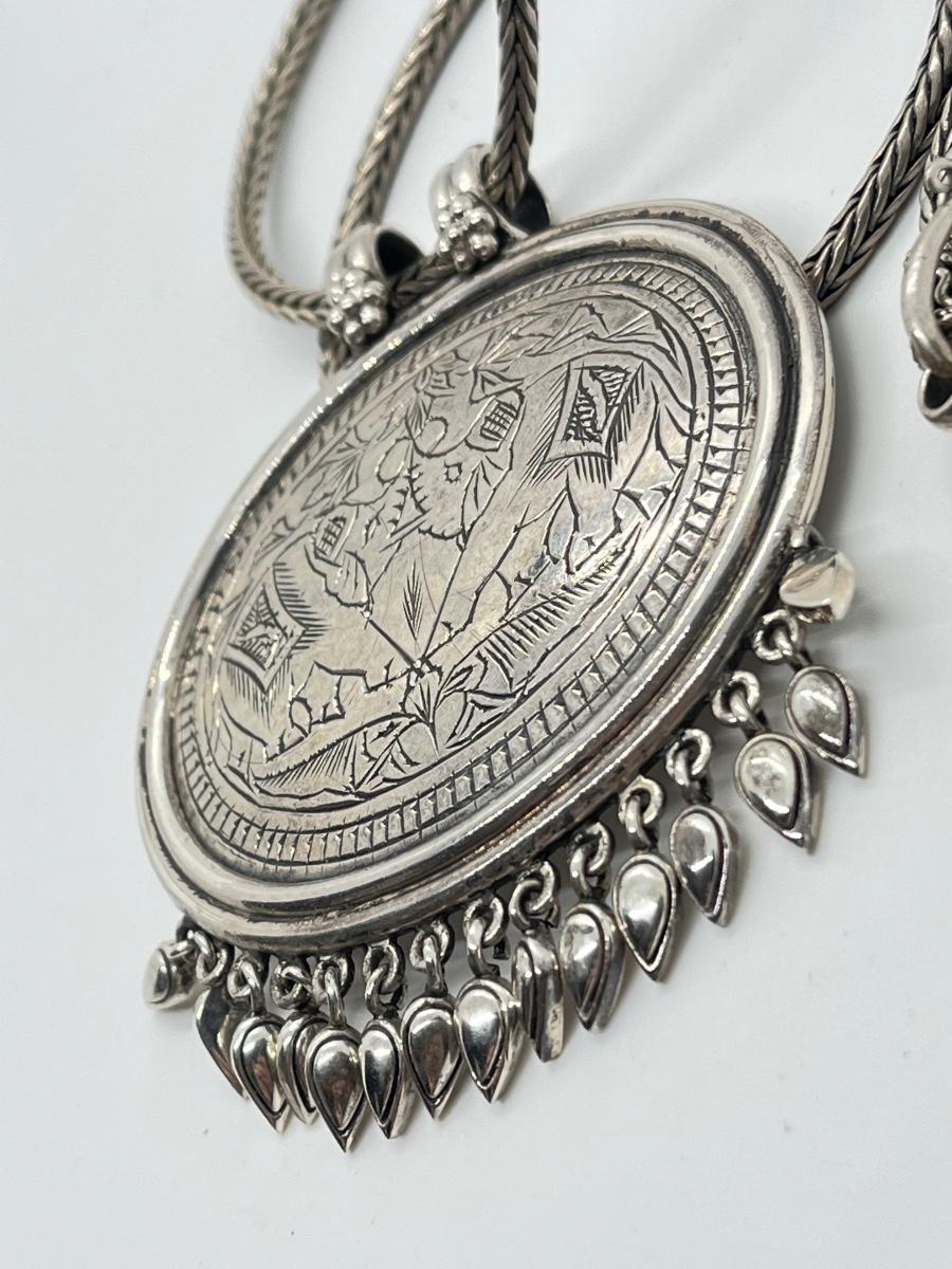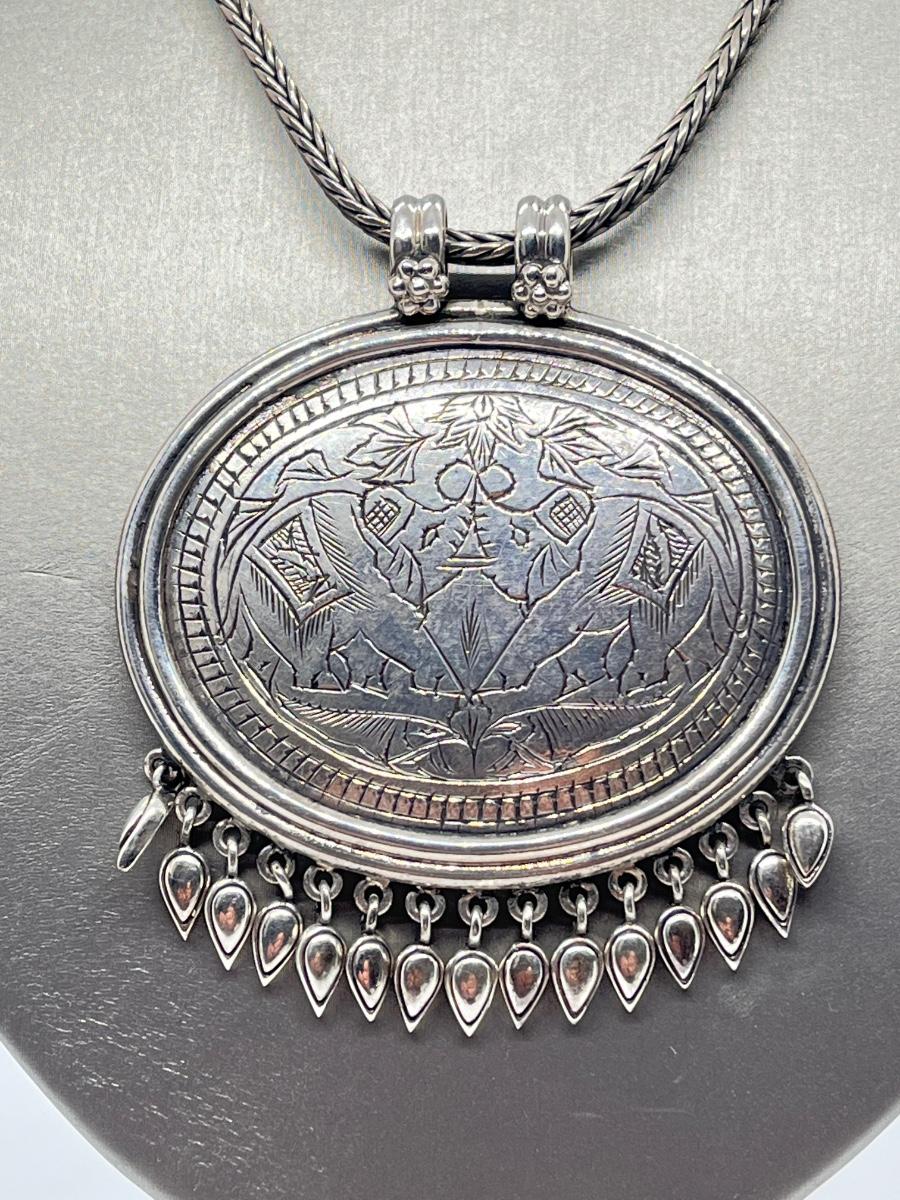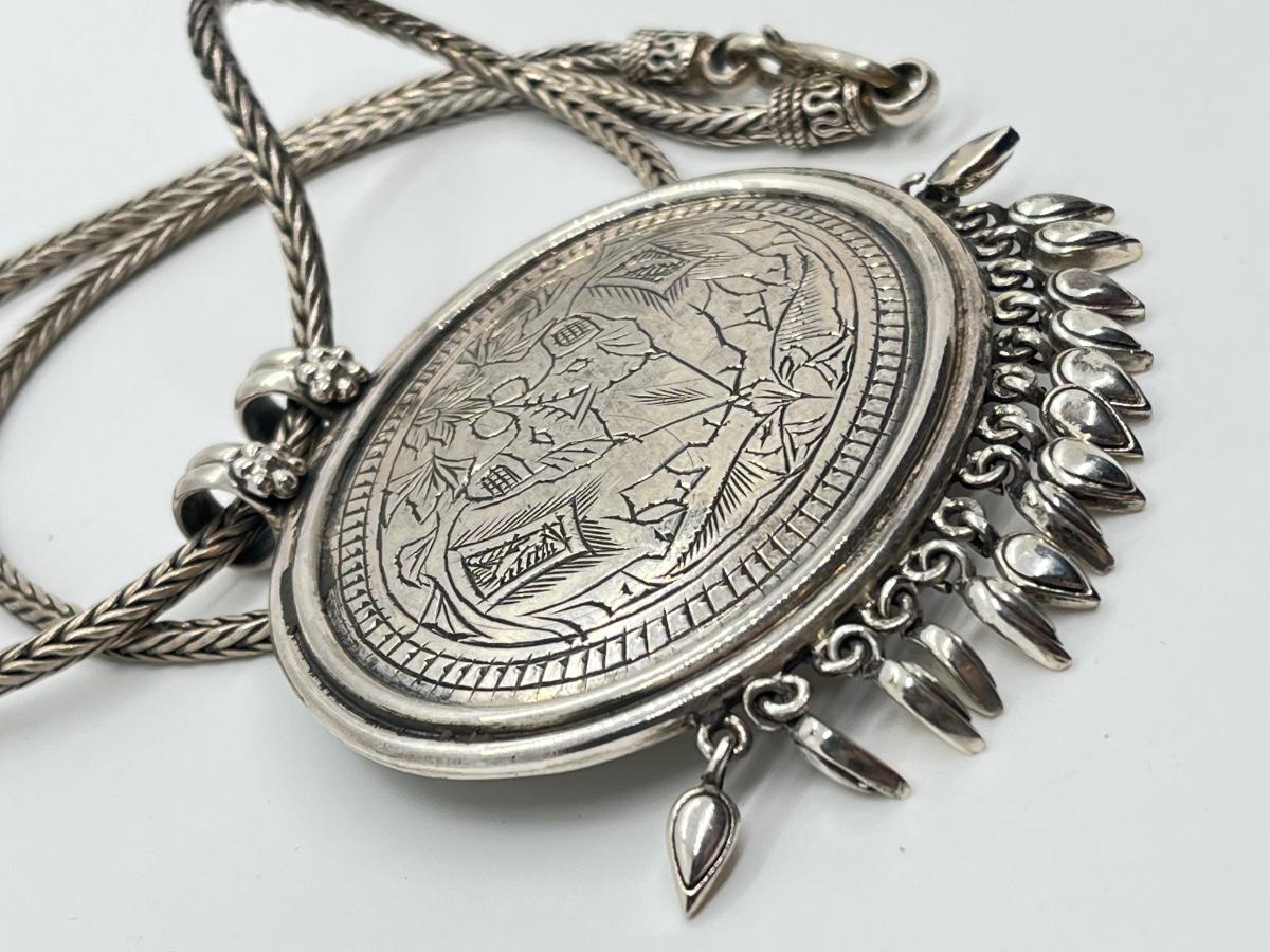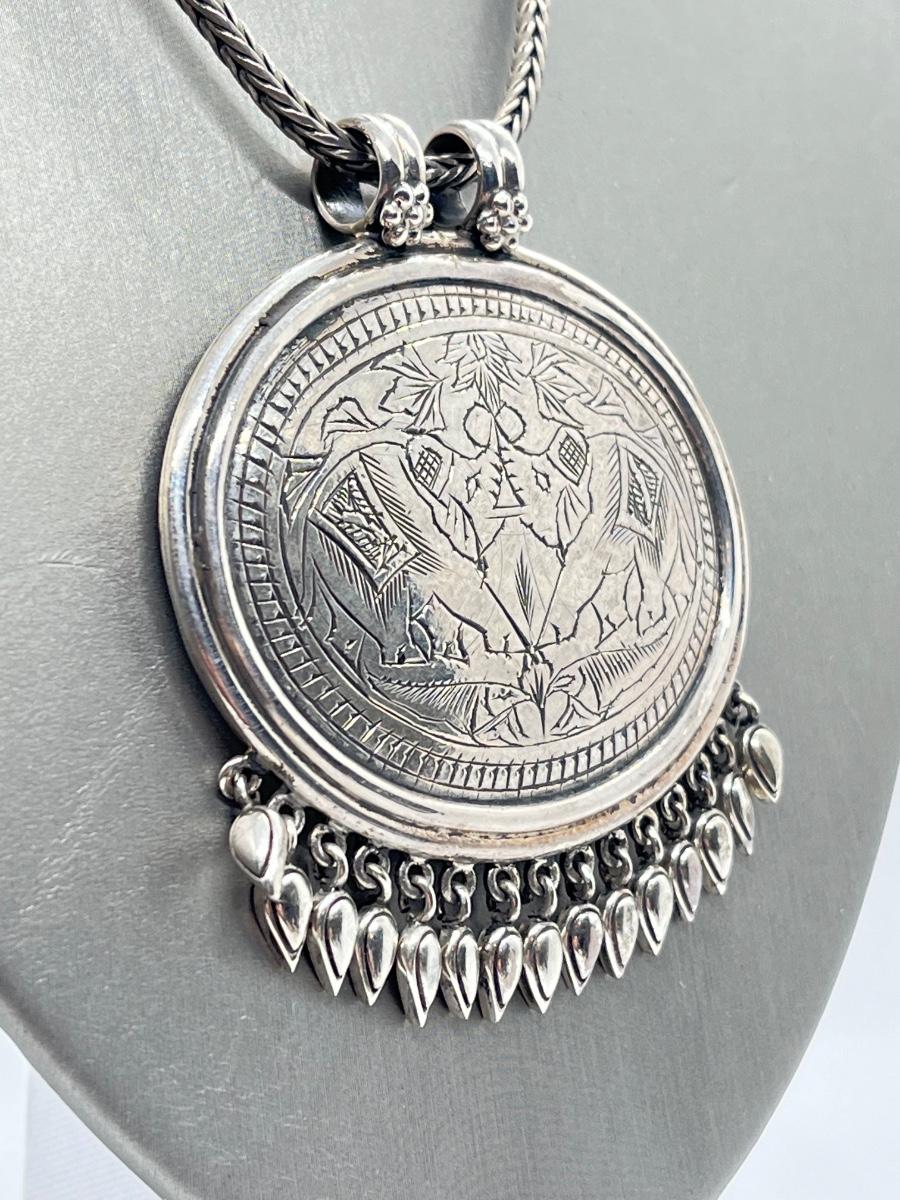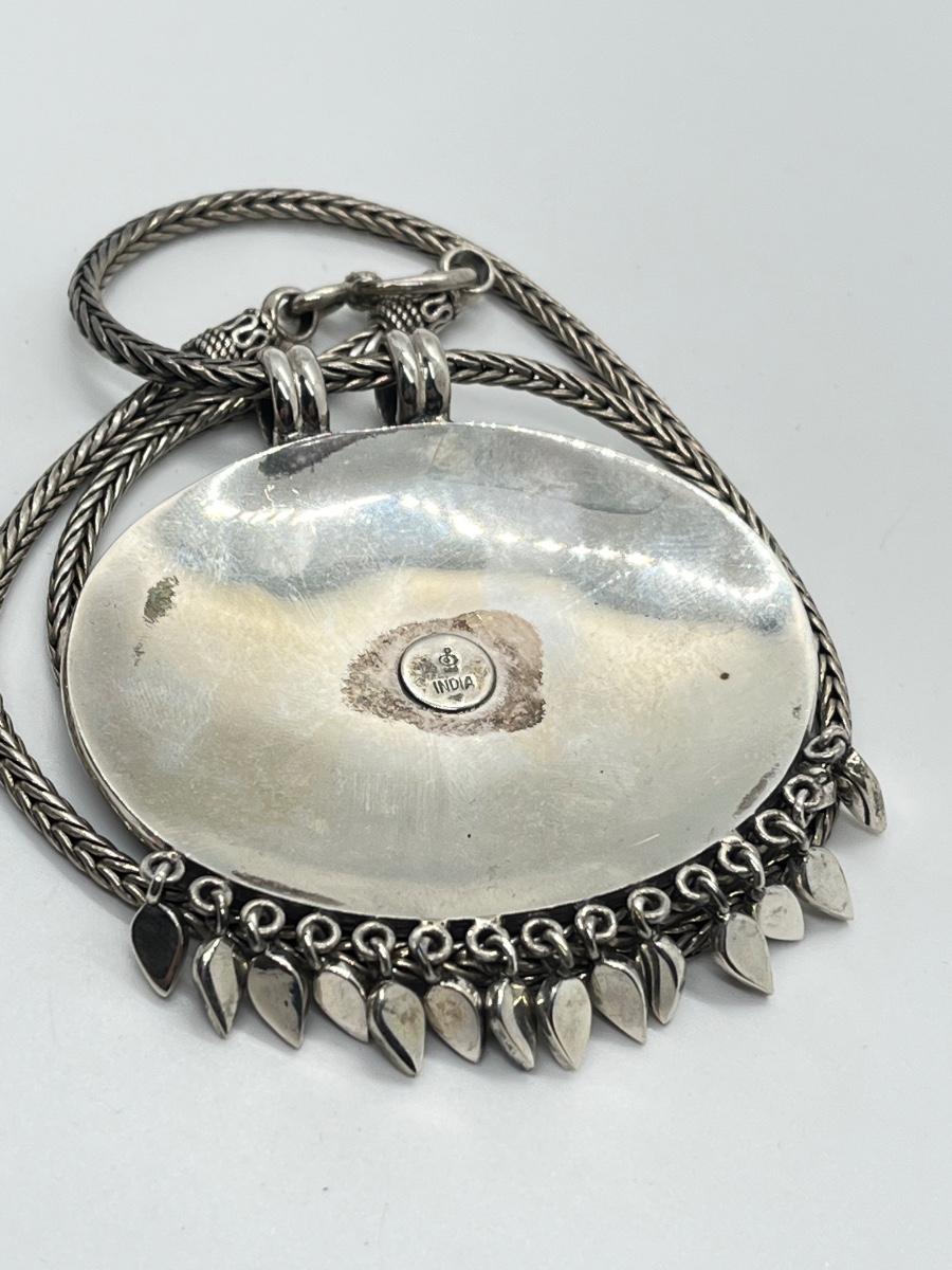 LOT 12: Large Pendant with Elephant Design on 21" Chain - Sterling Silver - Made in India - 73.96 gtw