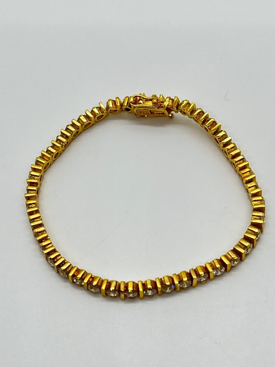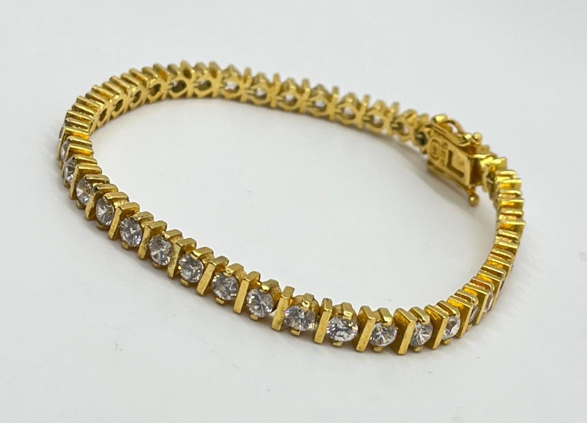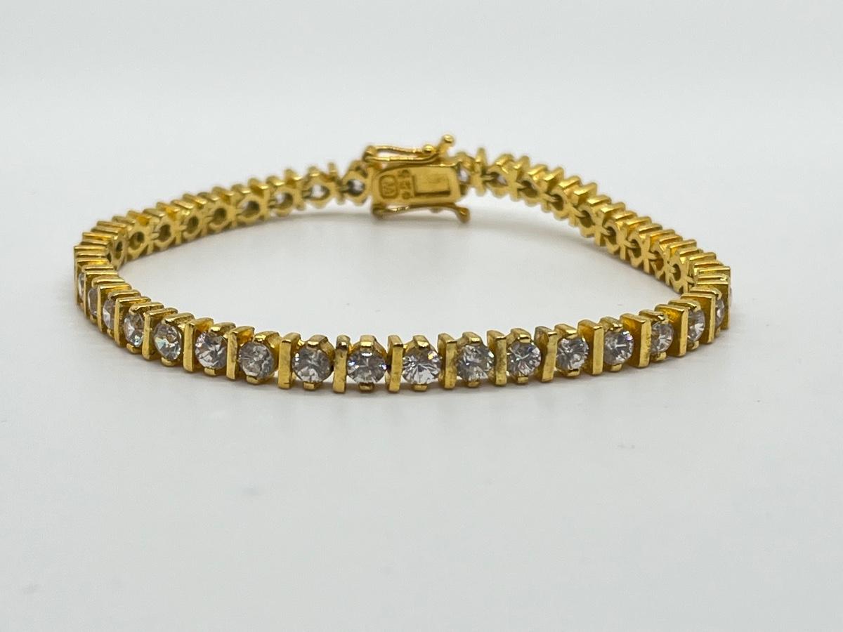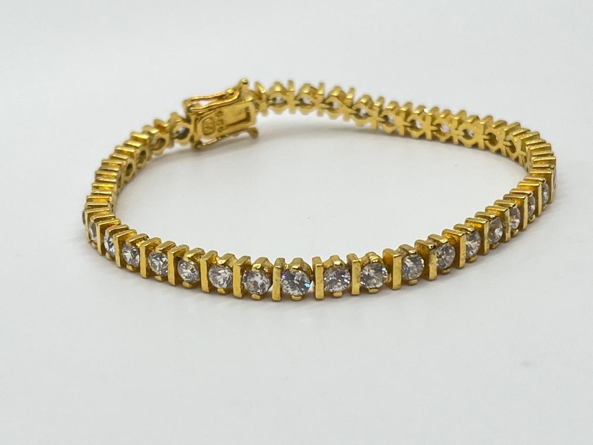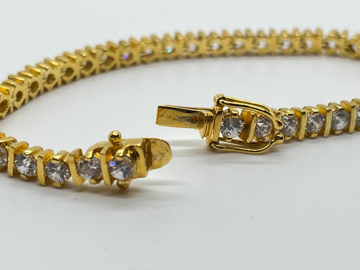 LOT 14: CZ Gold Vermeil Sterling Silver Tennis Bracelet - 7-1/2"