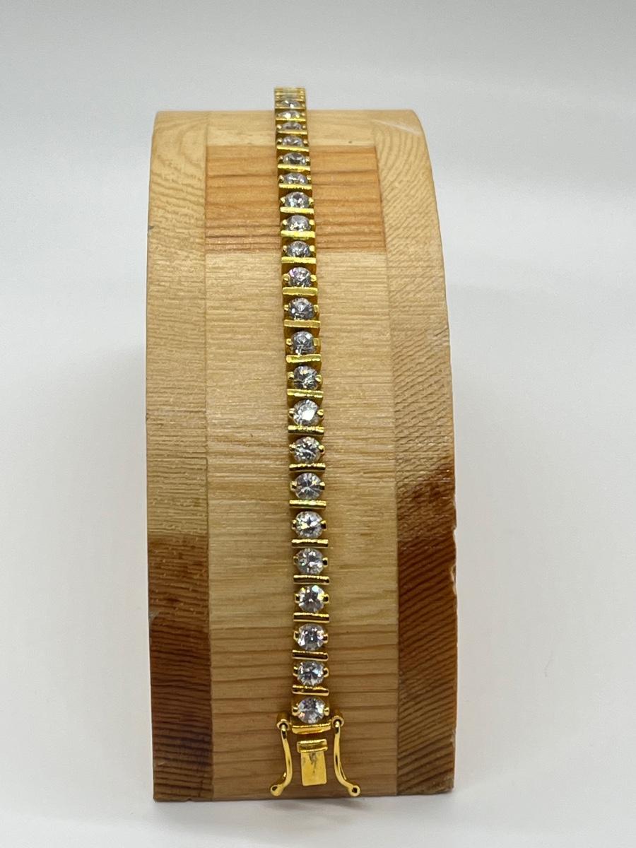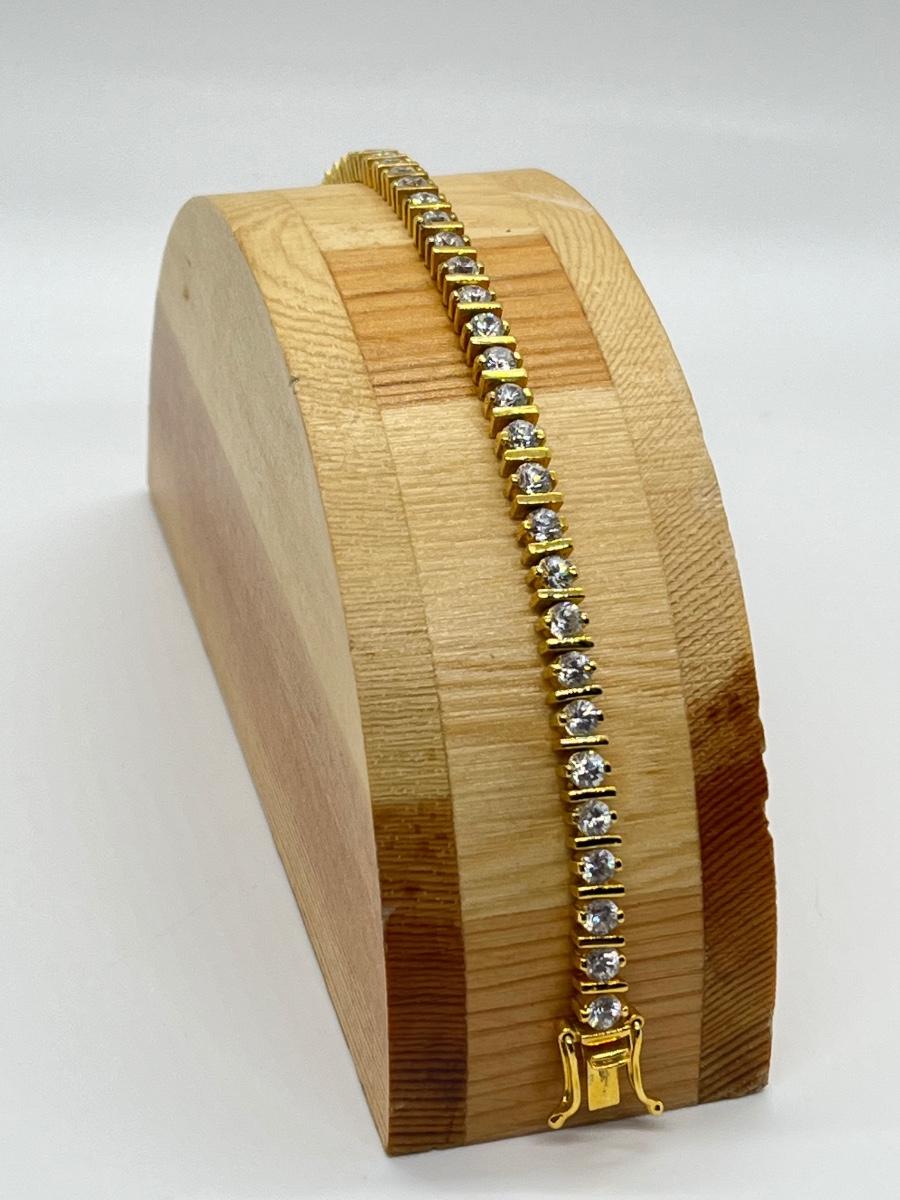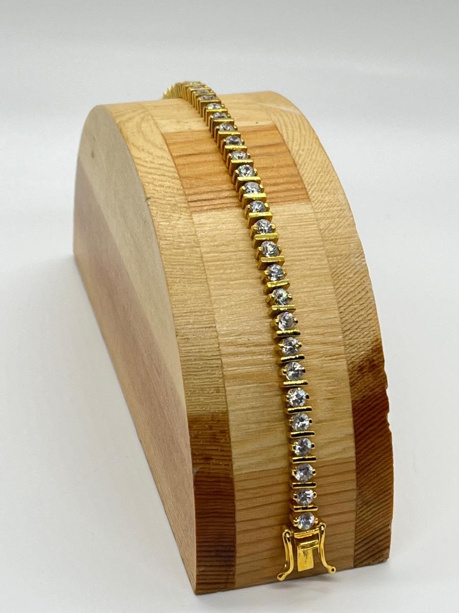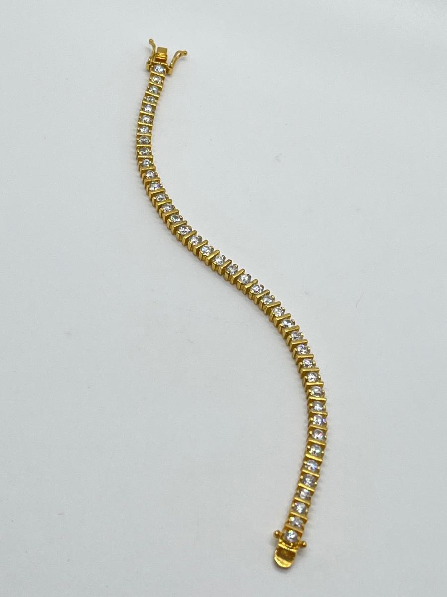 LOT 14: CZ Gold Vermeil Sterling Silver Tennis Bracelet - 7-1/2"