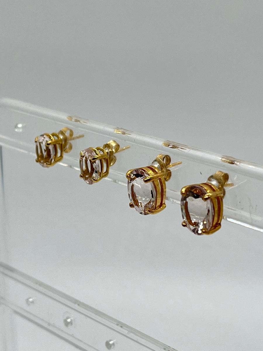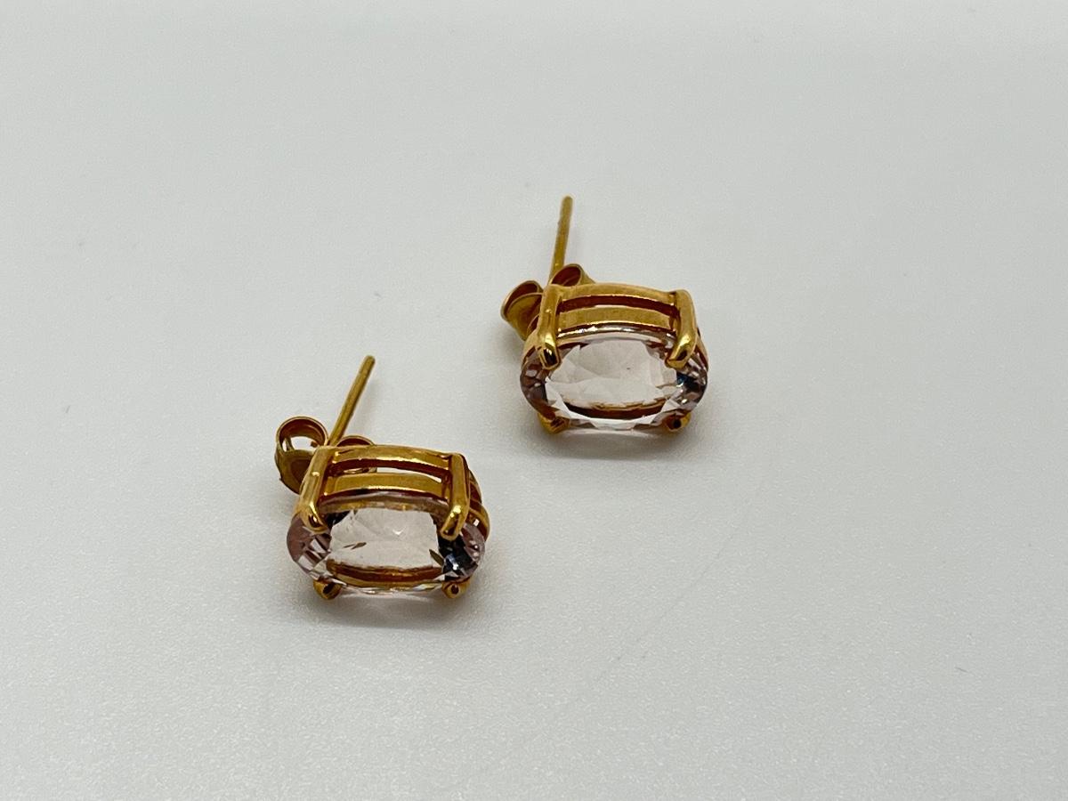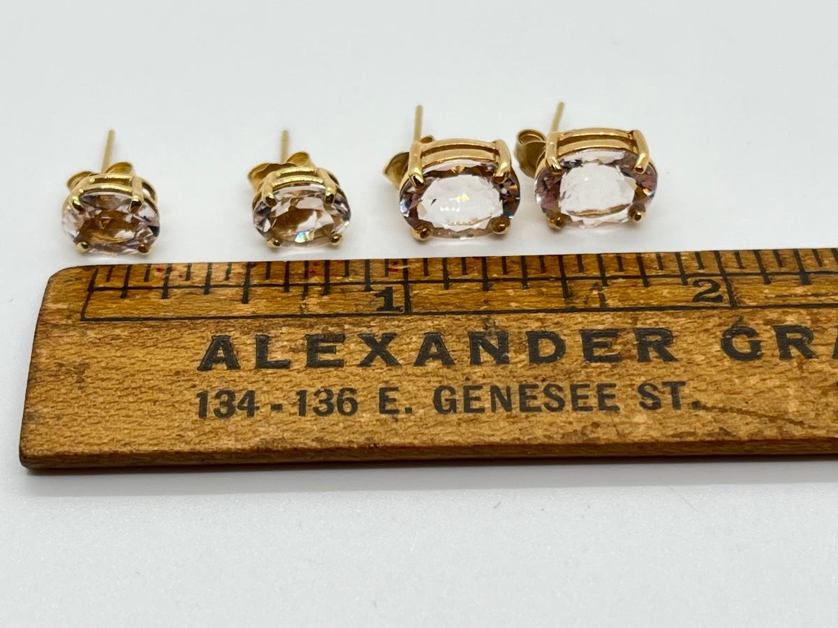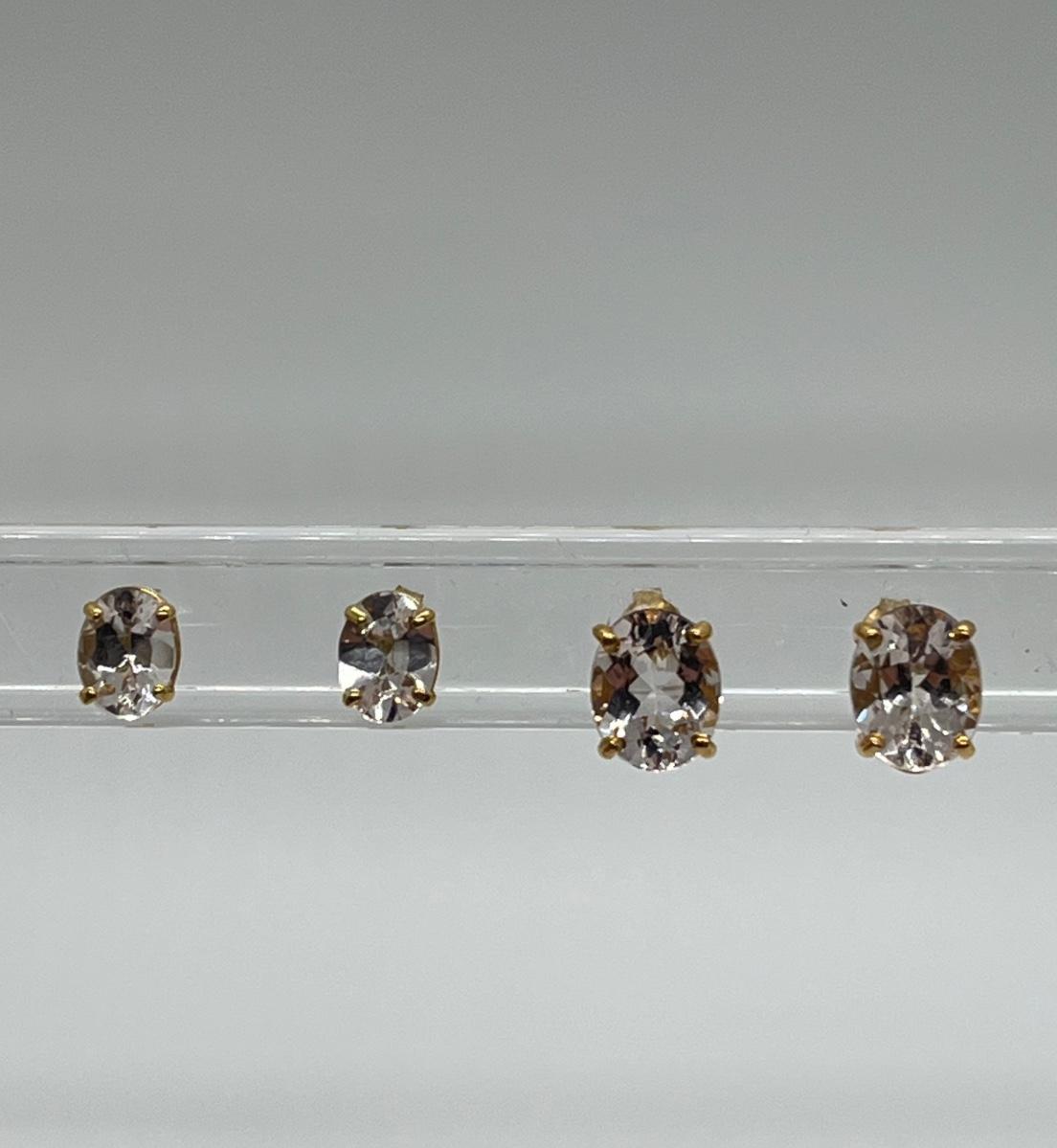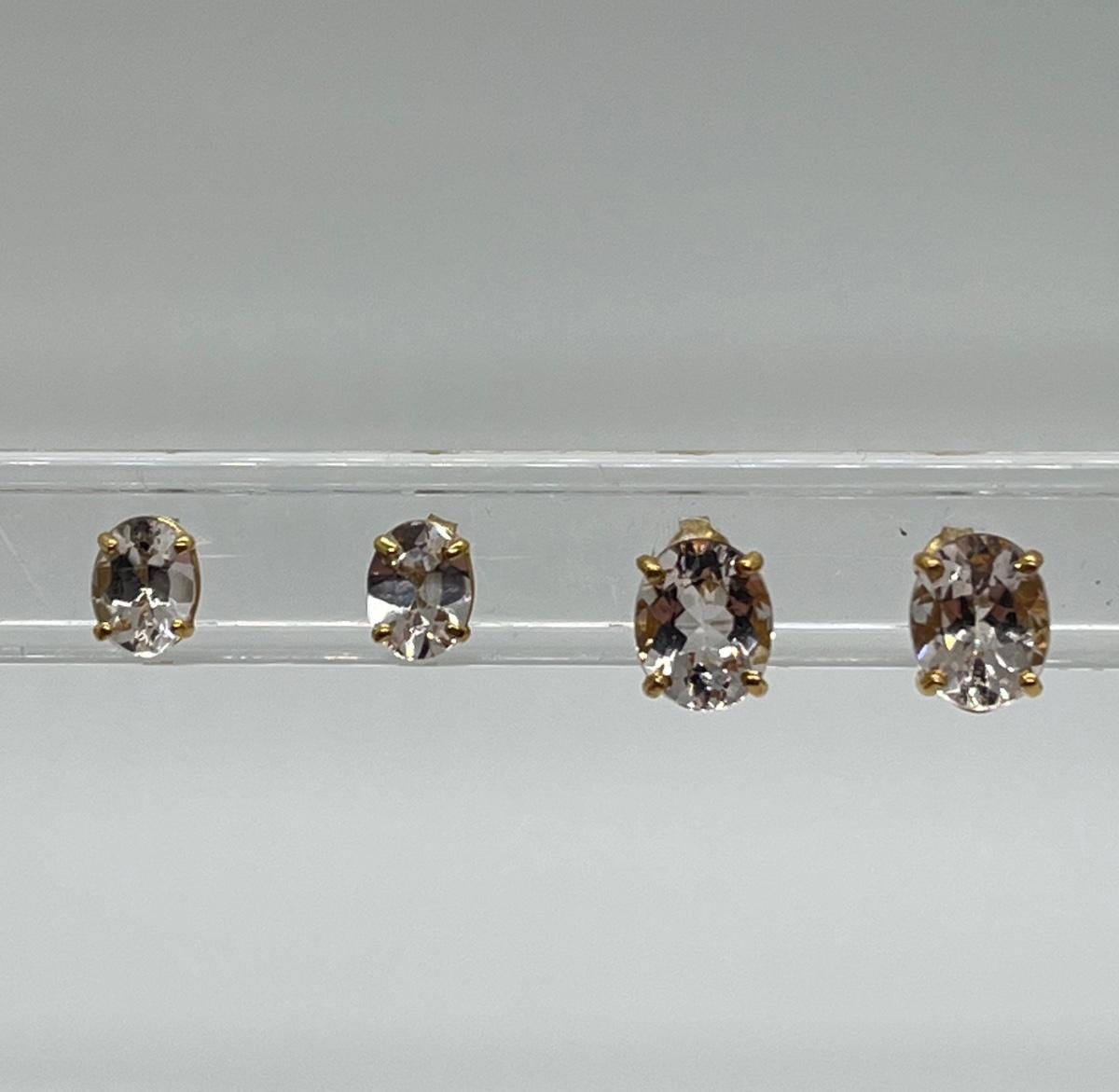 LOT 17: Two Pairs of 14K Gold White Topaz Pierced Earrings