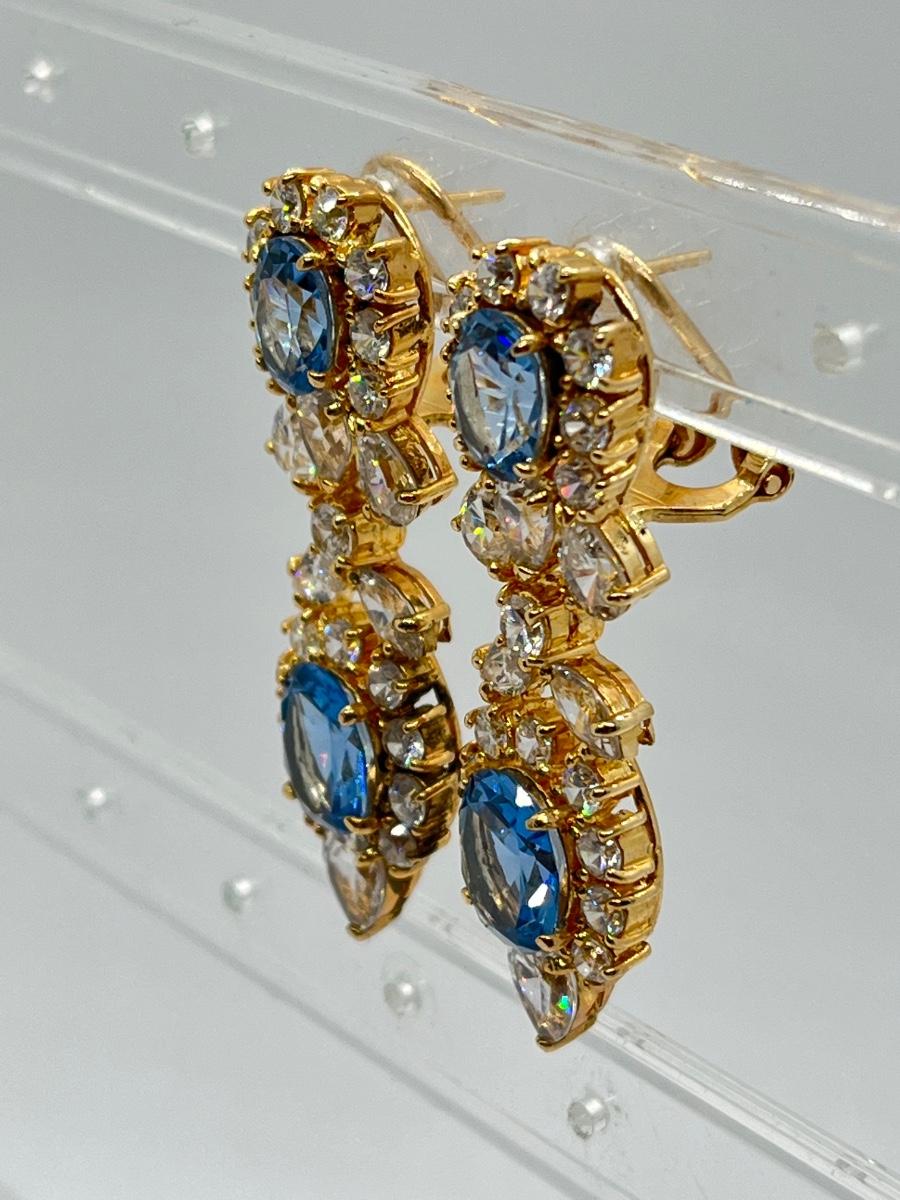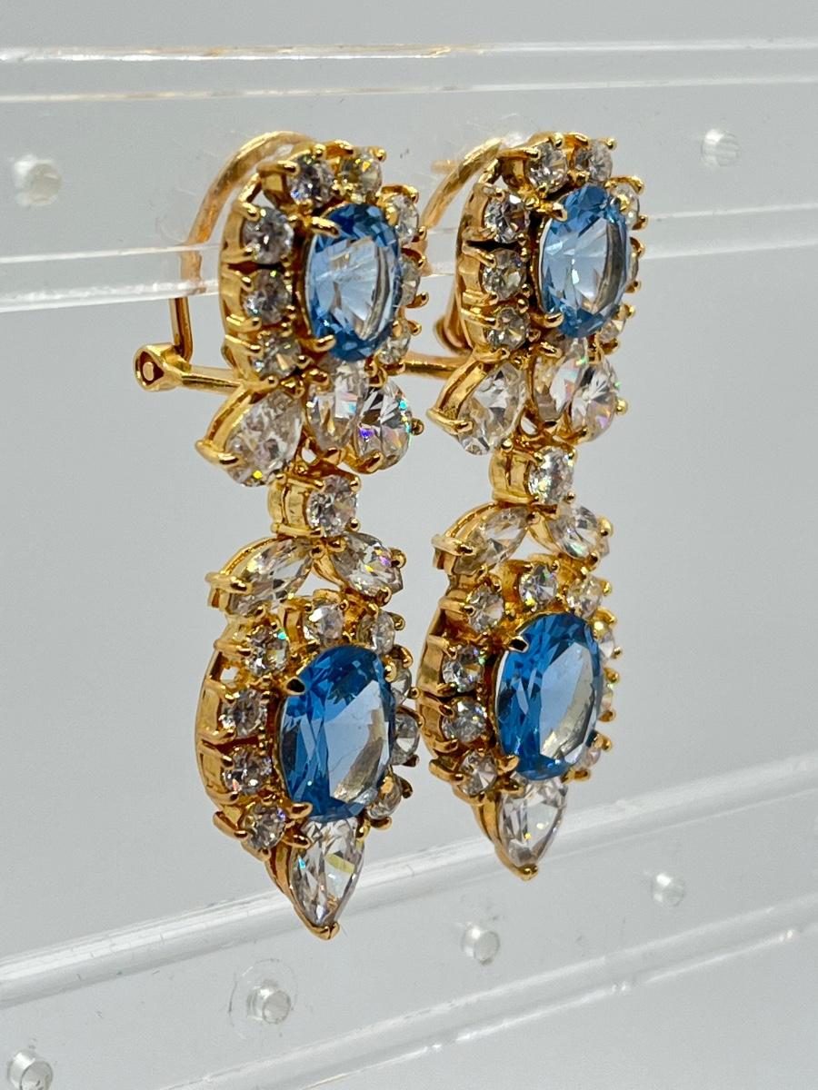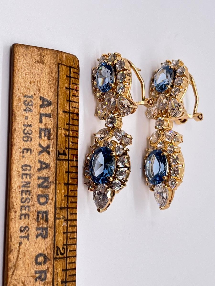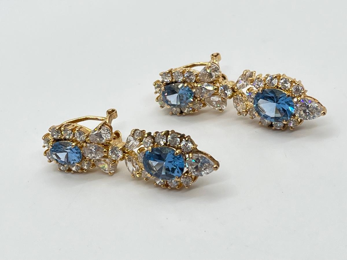 LOT 20: 10K Gold Pierced Leverback Dangle Earrings Beautiful Blue Topaz surrounded by sparkling CZ's- 17.2 gtw