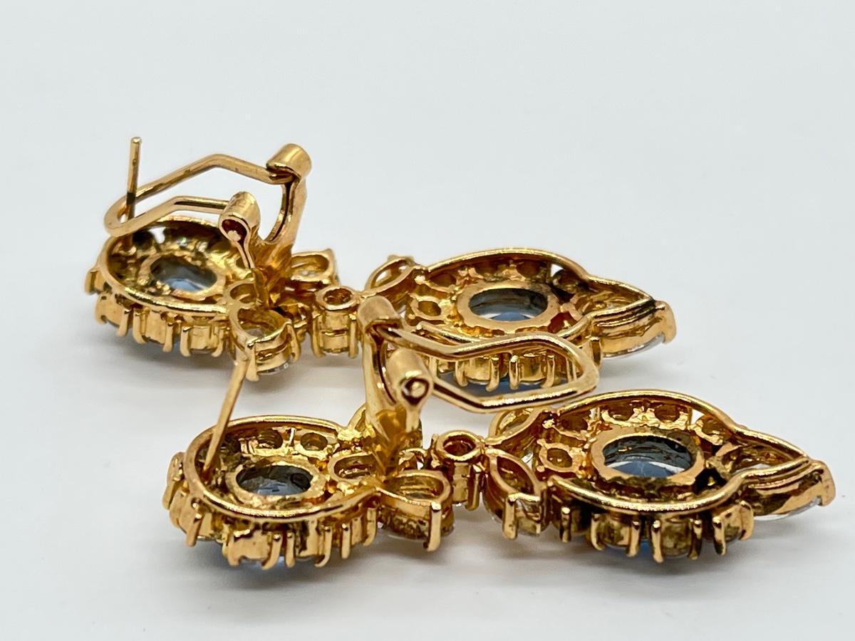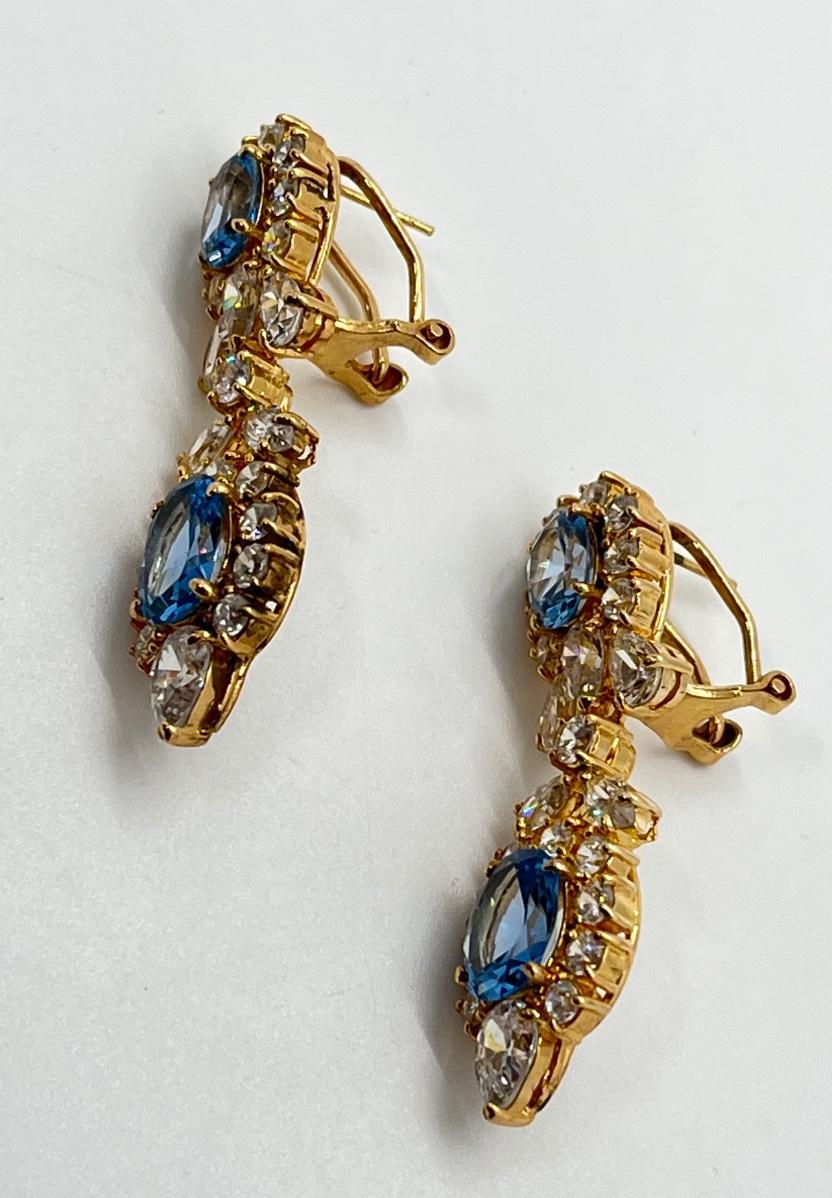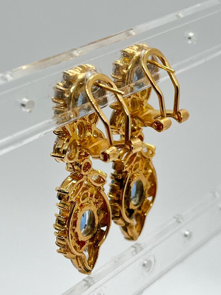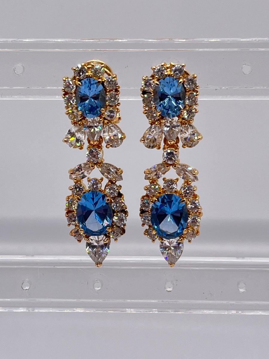 LOT 20: 10K Gold Pierced Leverback Dangle Earrings Beautiful Blue Topaz surrounded by sparkling CZ's- 17.2 gtw