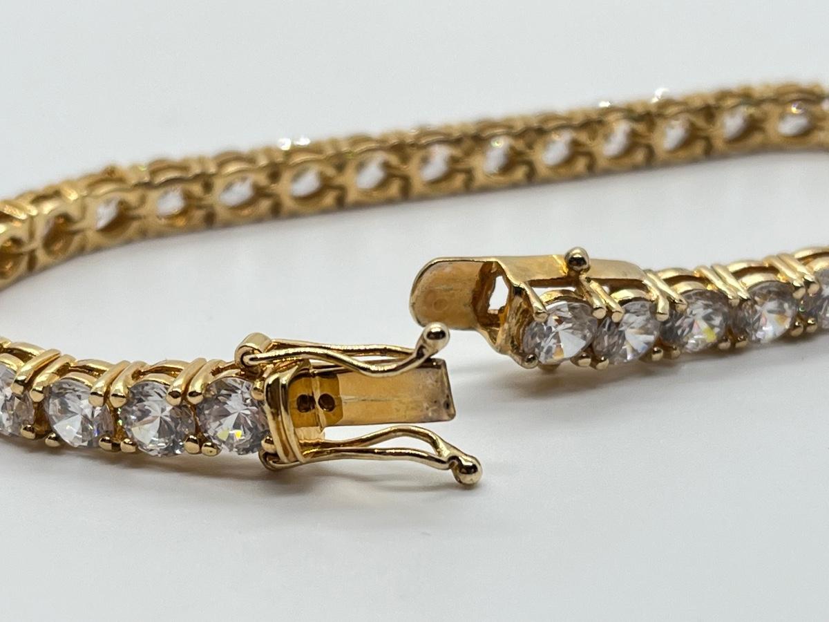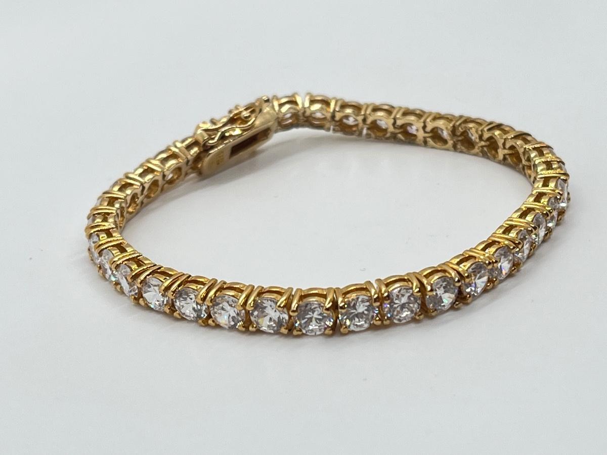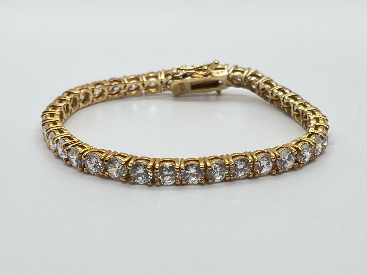 LOT 21: CZ Tennis Bracelet - Gold Vermeil Sterling Silver - 7-1/2"