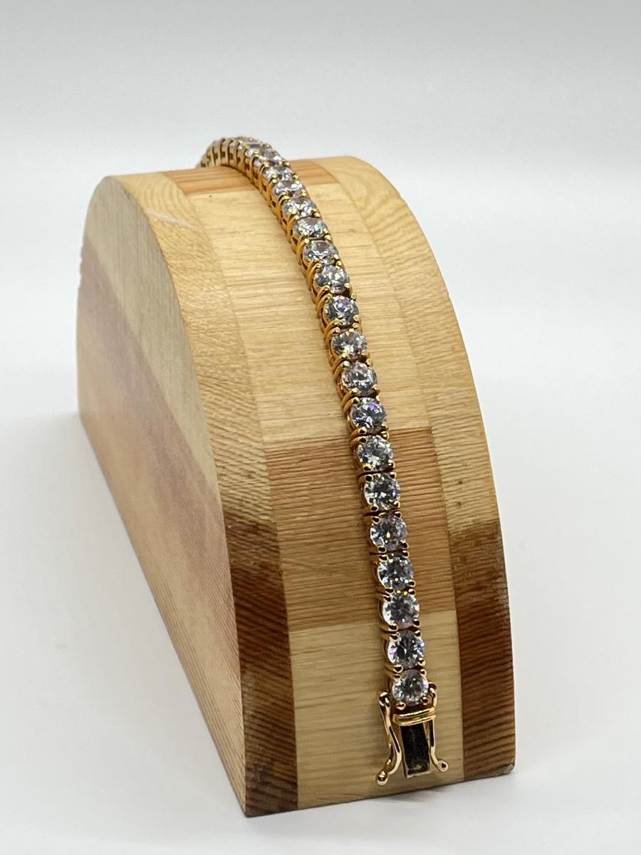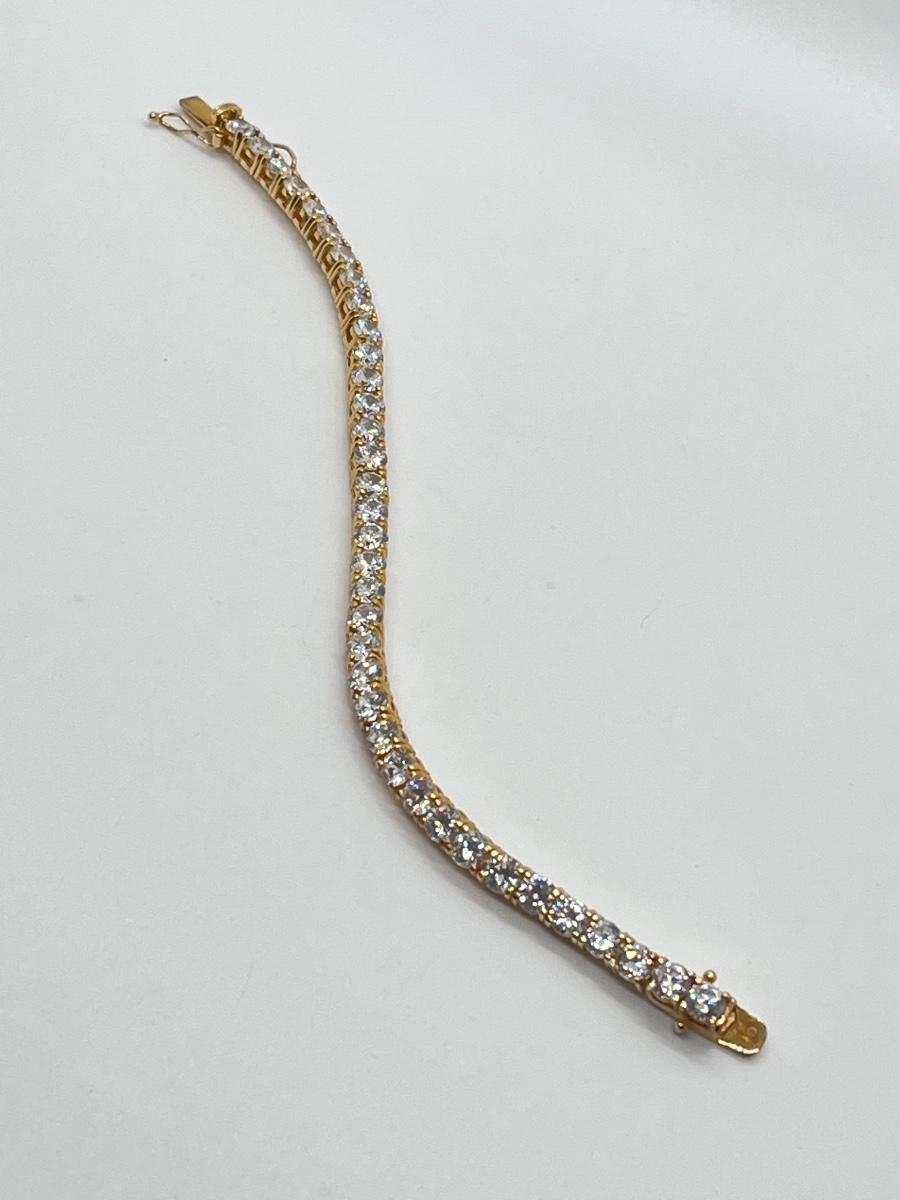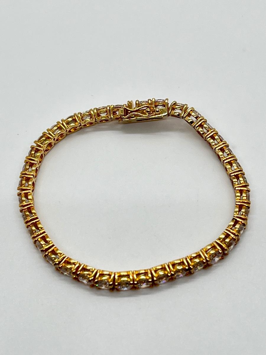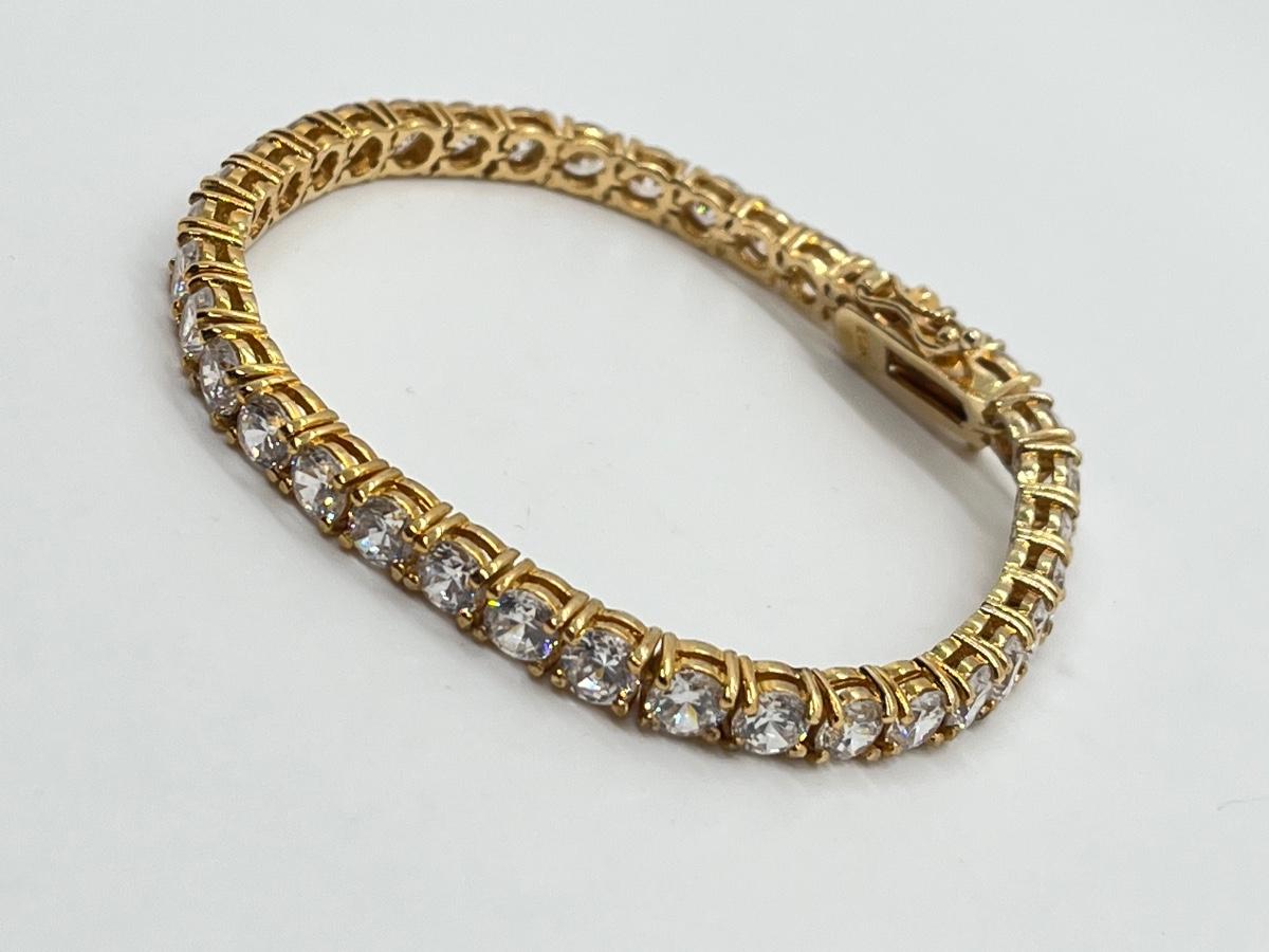 LOT 21: CZ Tennis Bracelet - Gold Vermeil Sterling Silver - 7-1/2"