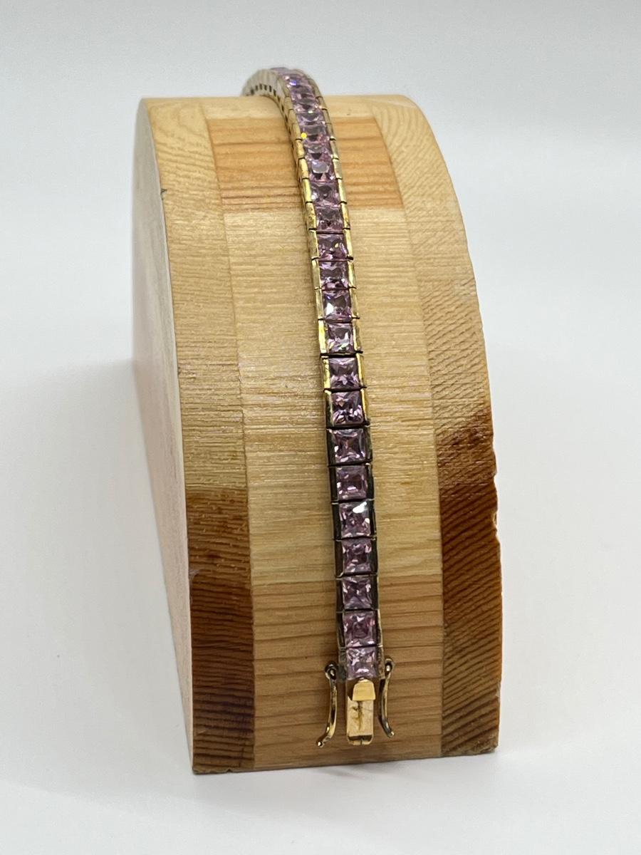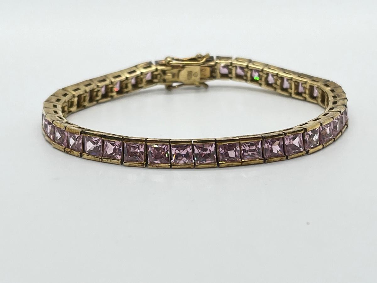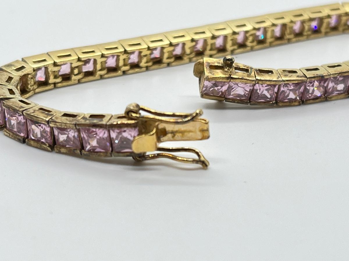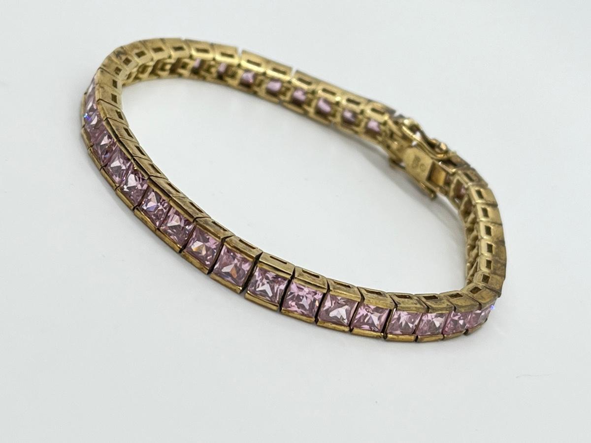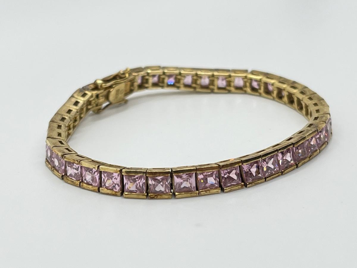 LOT 24: Sterling Silver Gold Vermeil 7-1/4" Tennis Bracelet featuring Pink Cubic Zirconia's