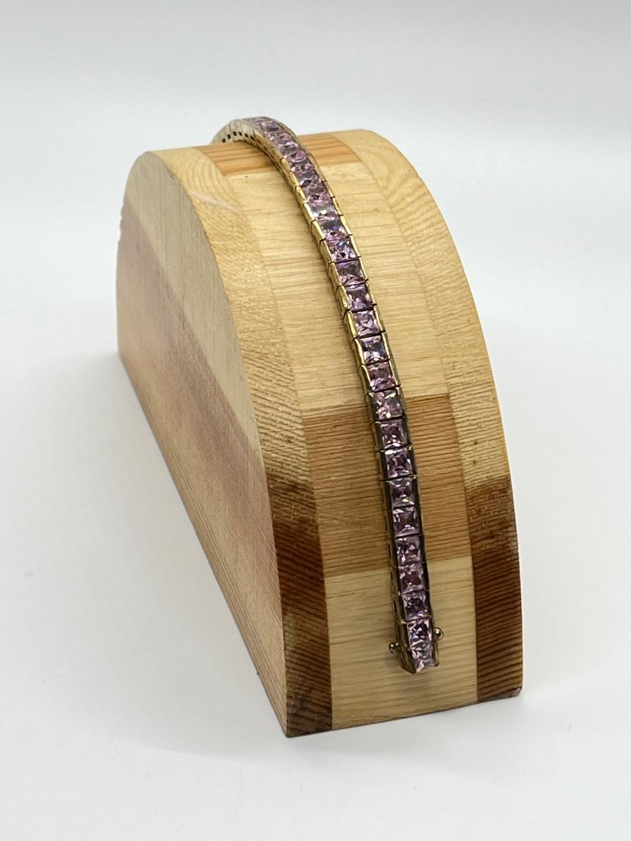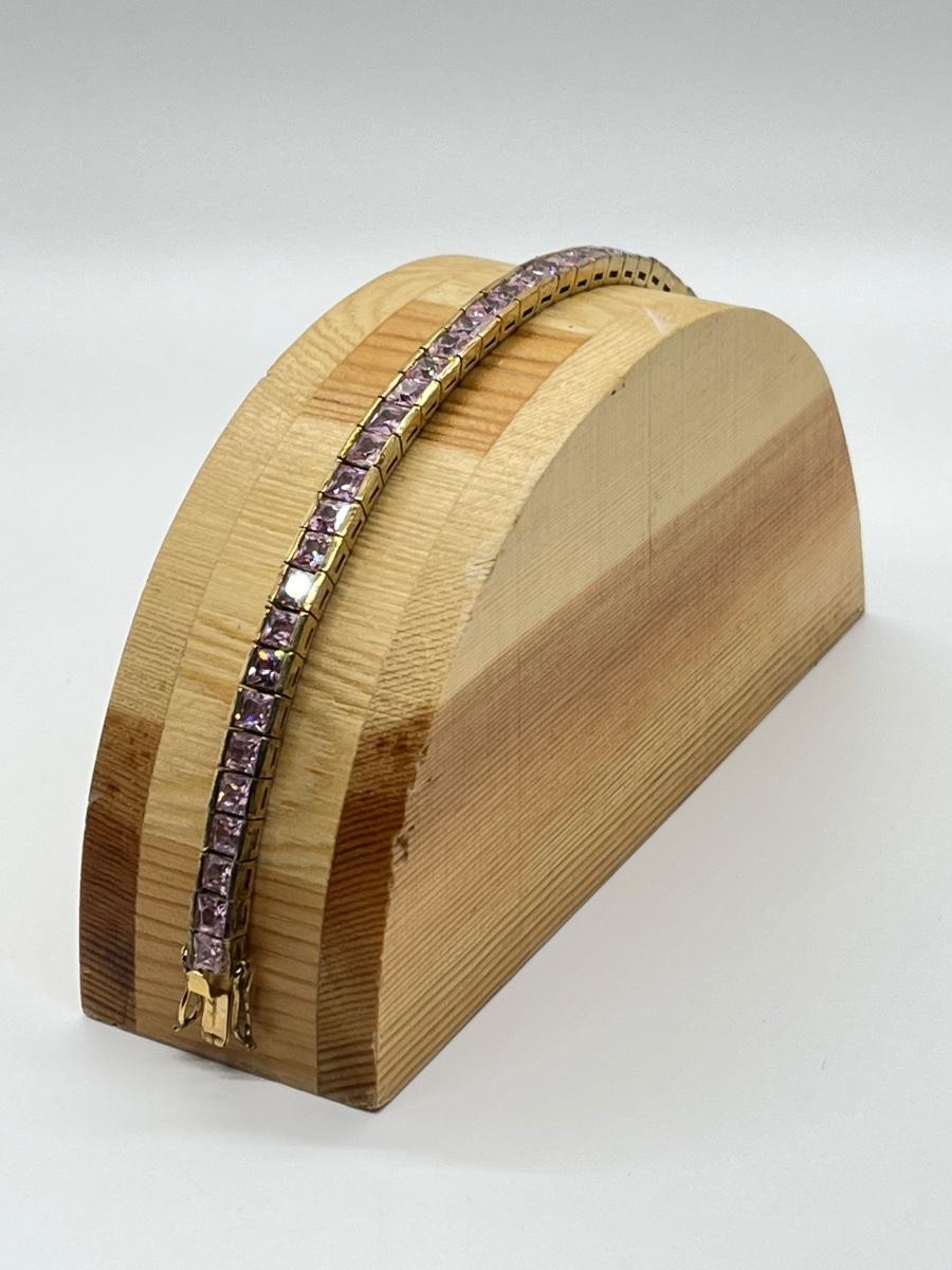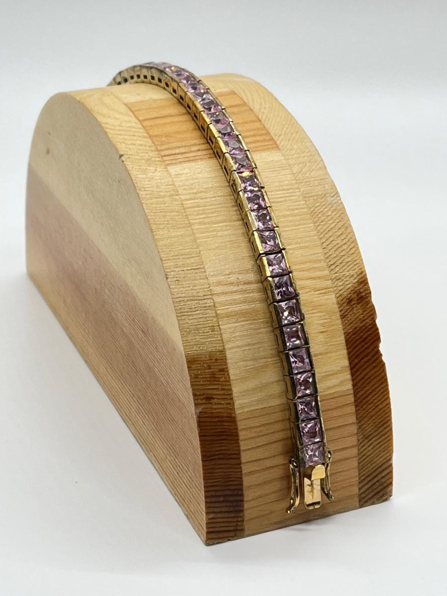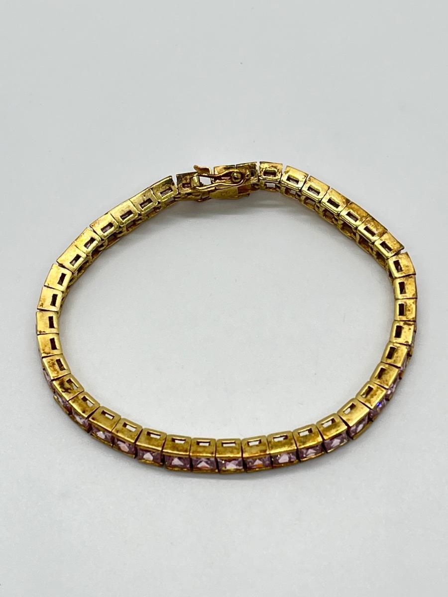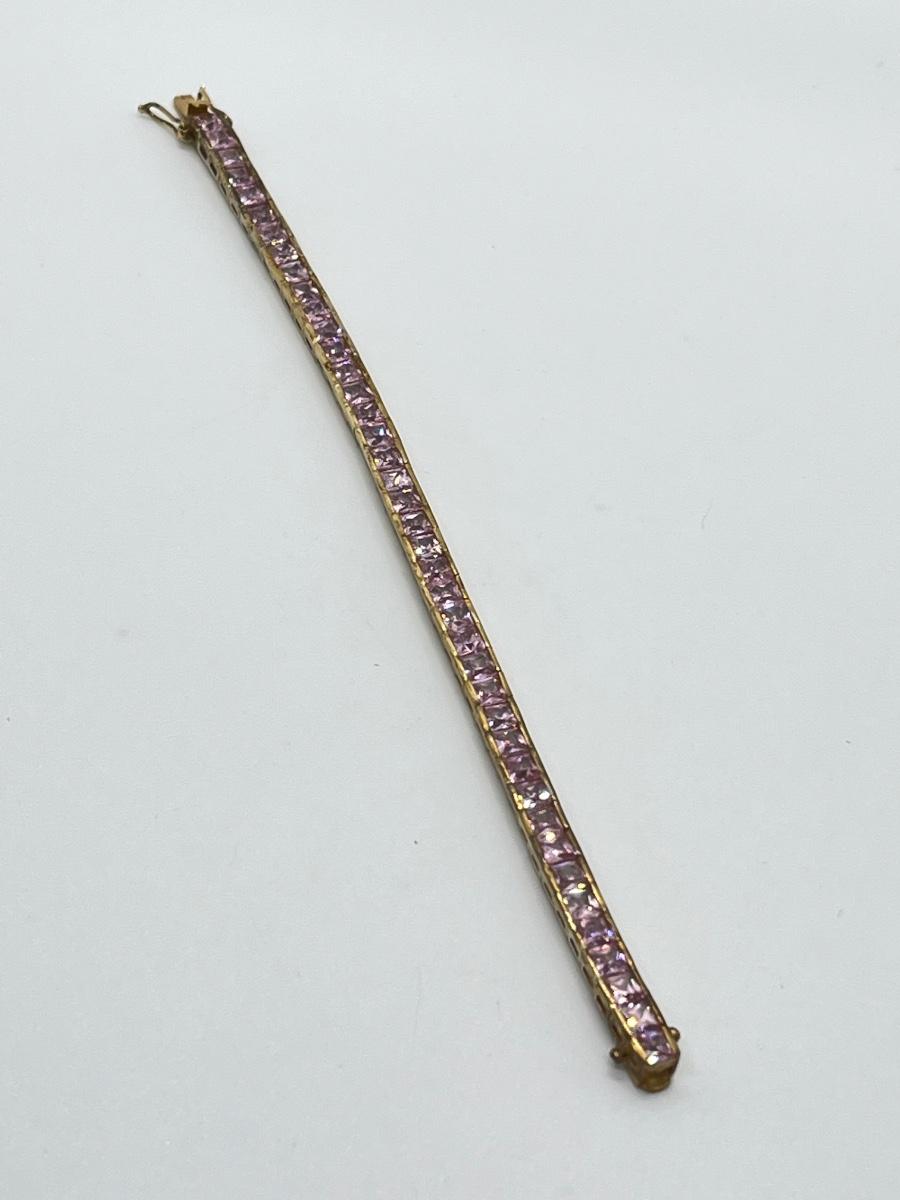 LOT 24: Sterling Silver Gold Vermeil 7-1/4" Tennis Bracelet featuring Pink Cubic Zirconia's