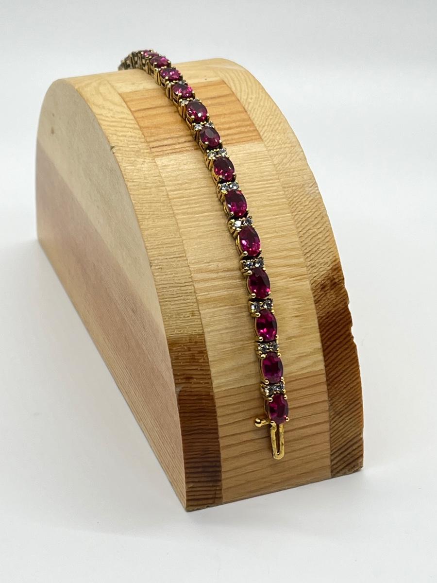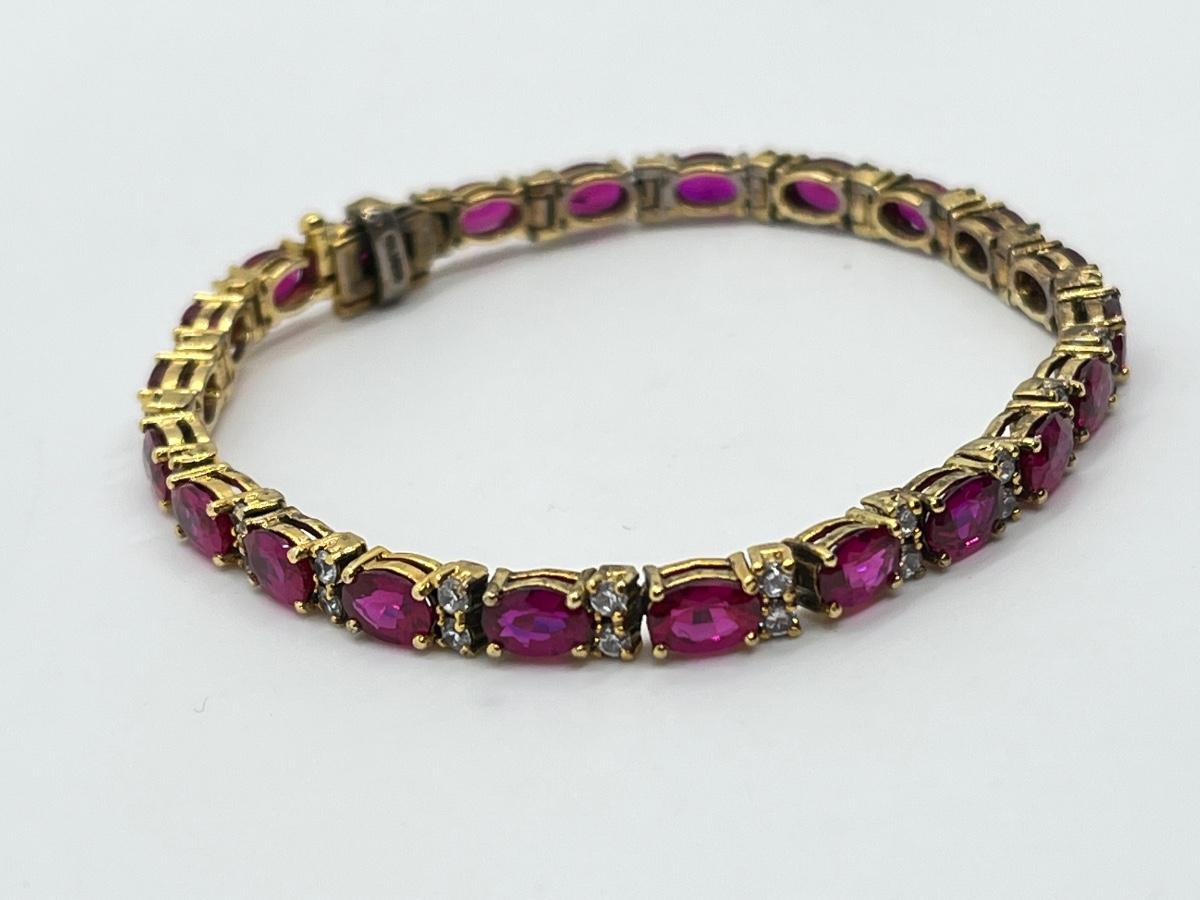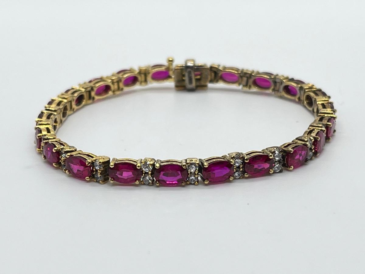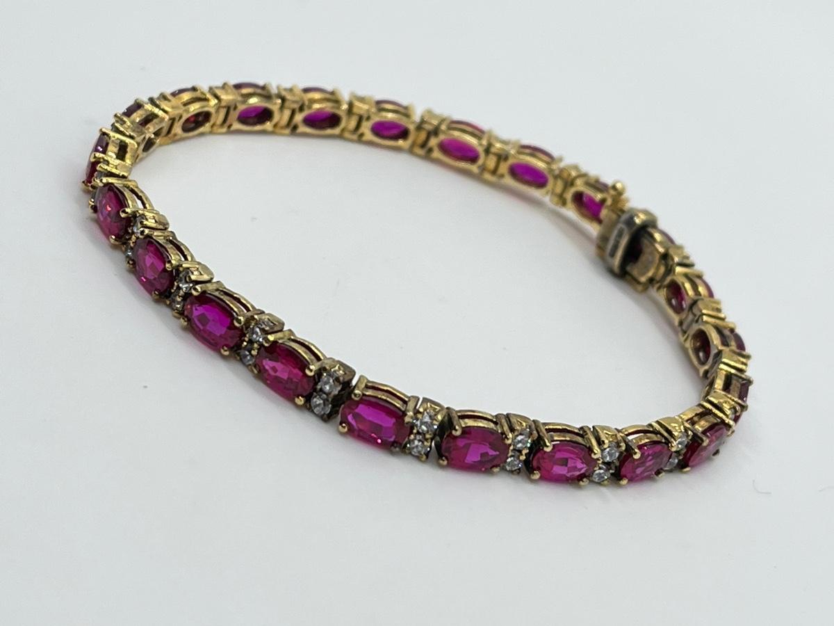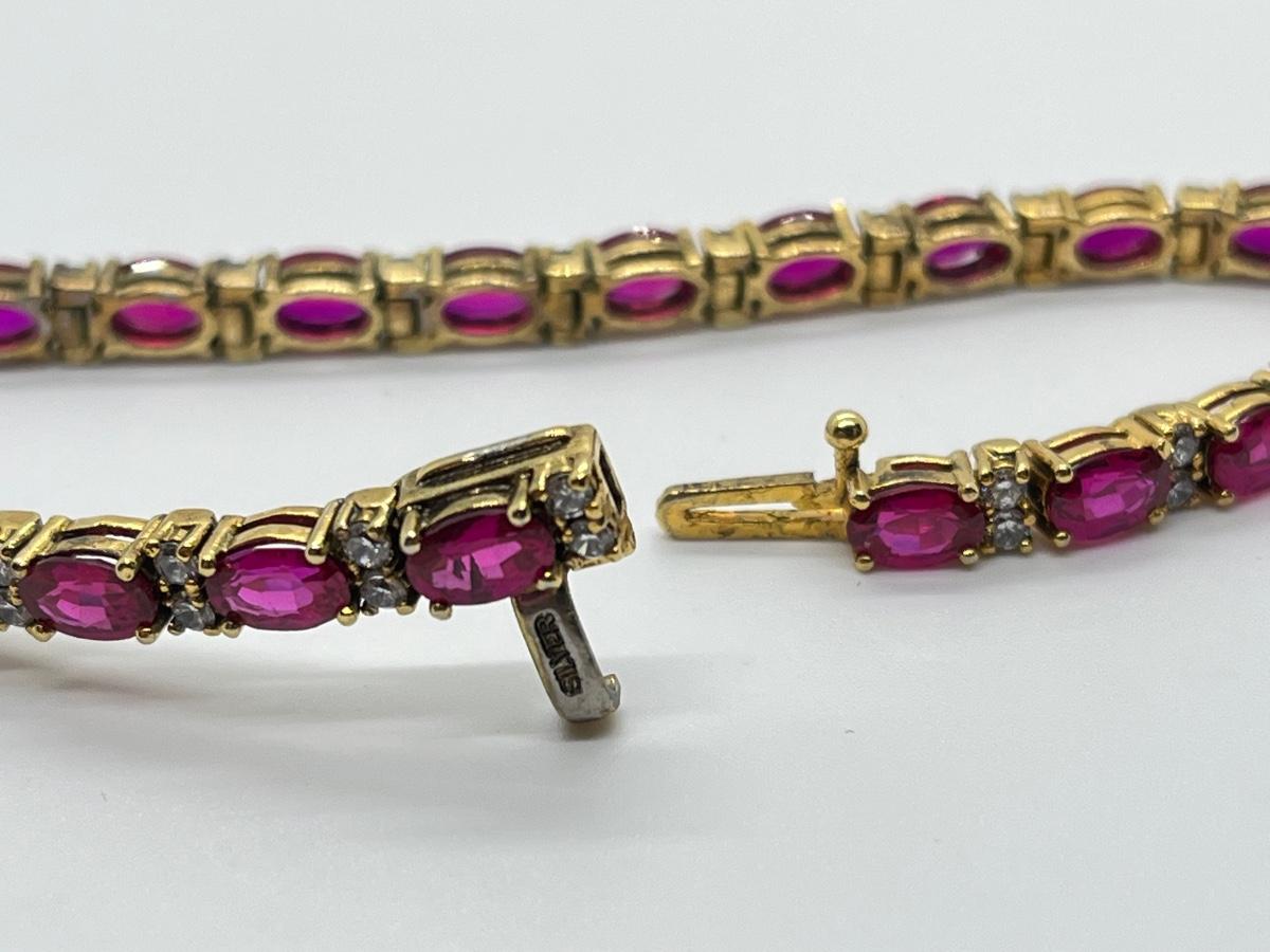 LOT 25: Pink Tourmaline & CZ Gold Vermeil over Sterling Silver Tennis Bracelet - 7-1/4"