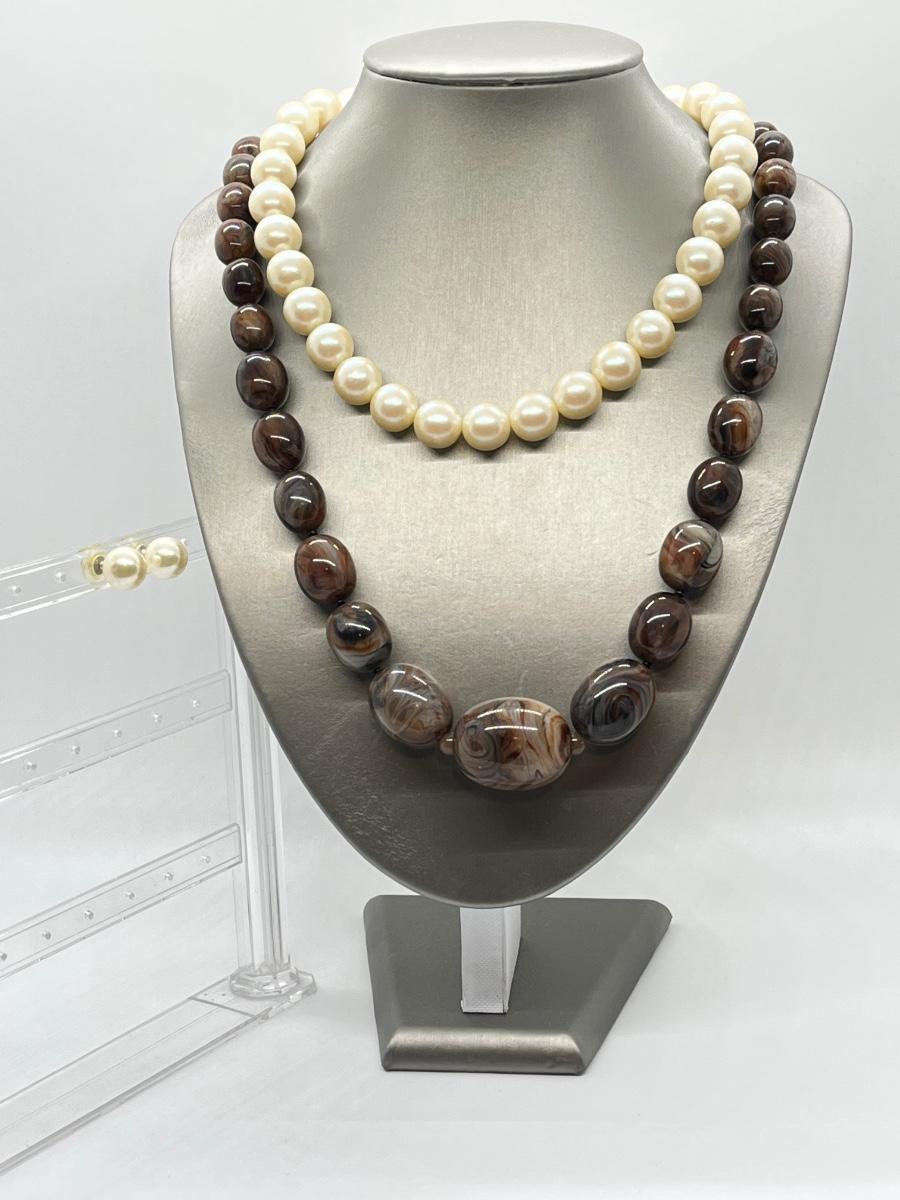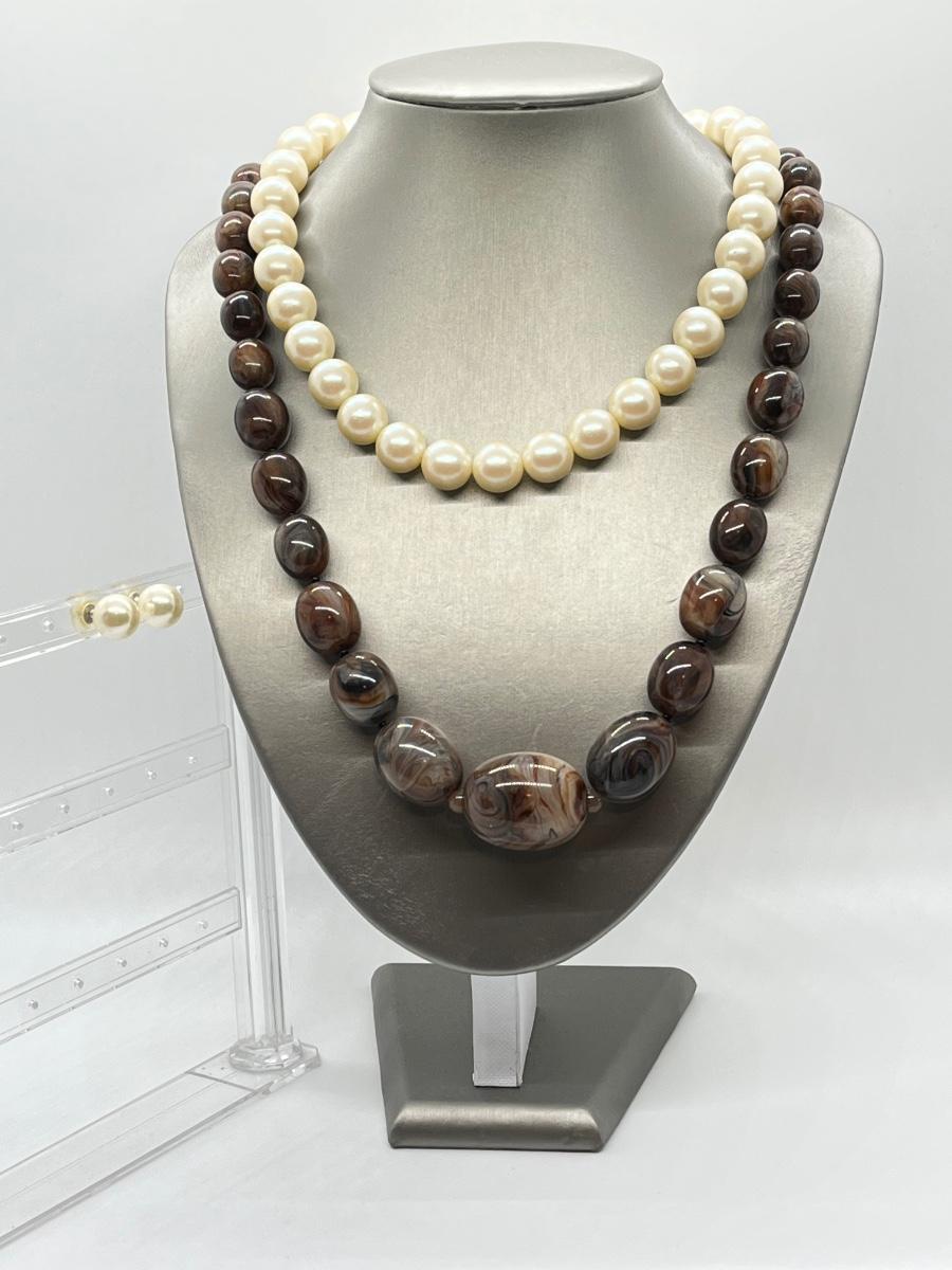 LOT 26: Vintage Beaded Necklaces (18" & 30") and Pierced Earrings