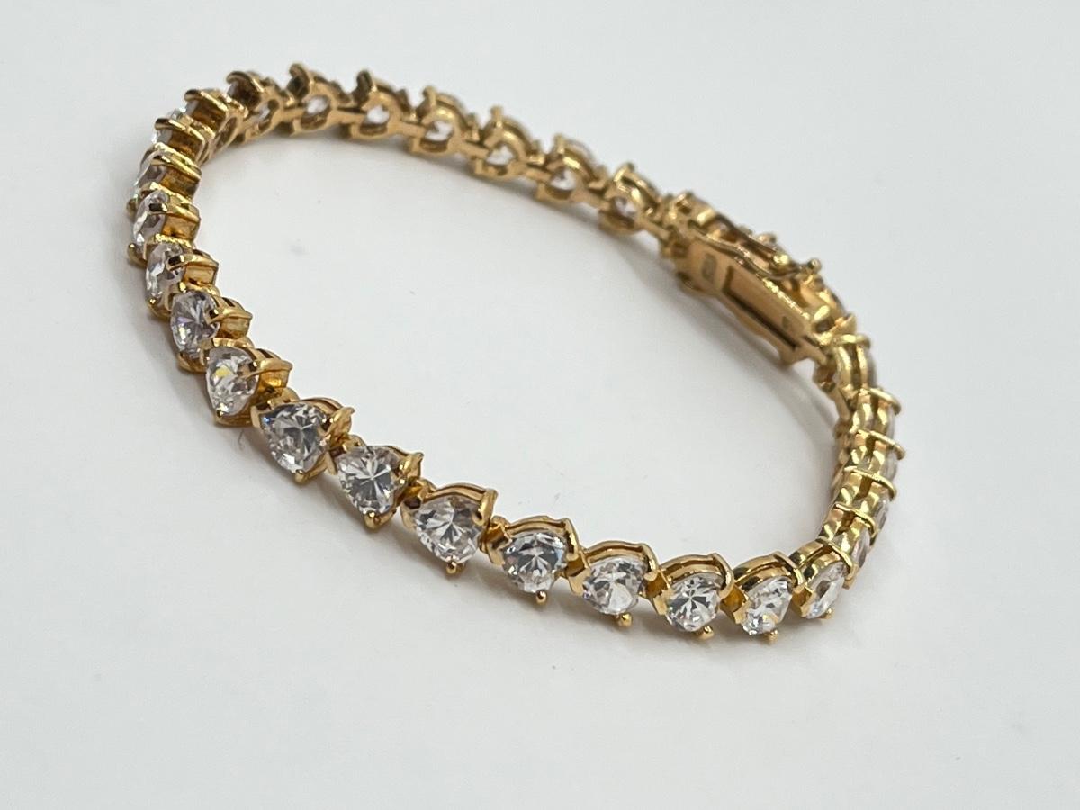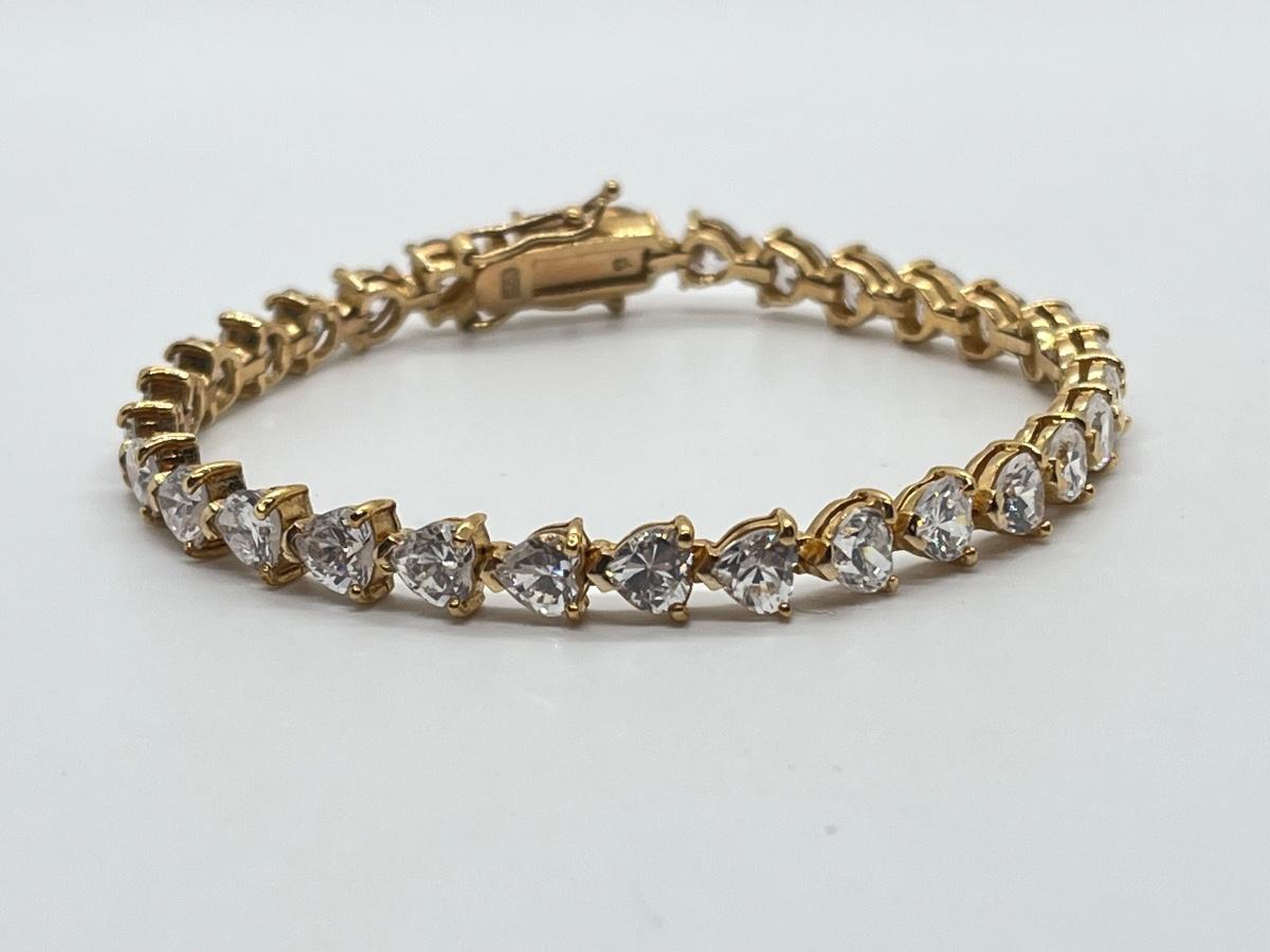 LOT 27: Sterling Silver Gold Vermeil CZ Tennis Bracelet - 7-1/4"