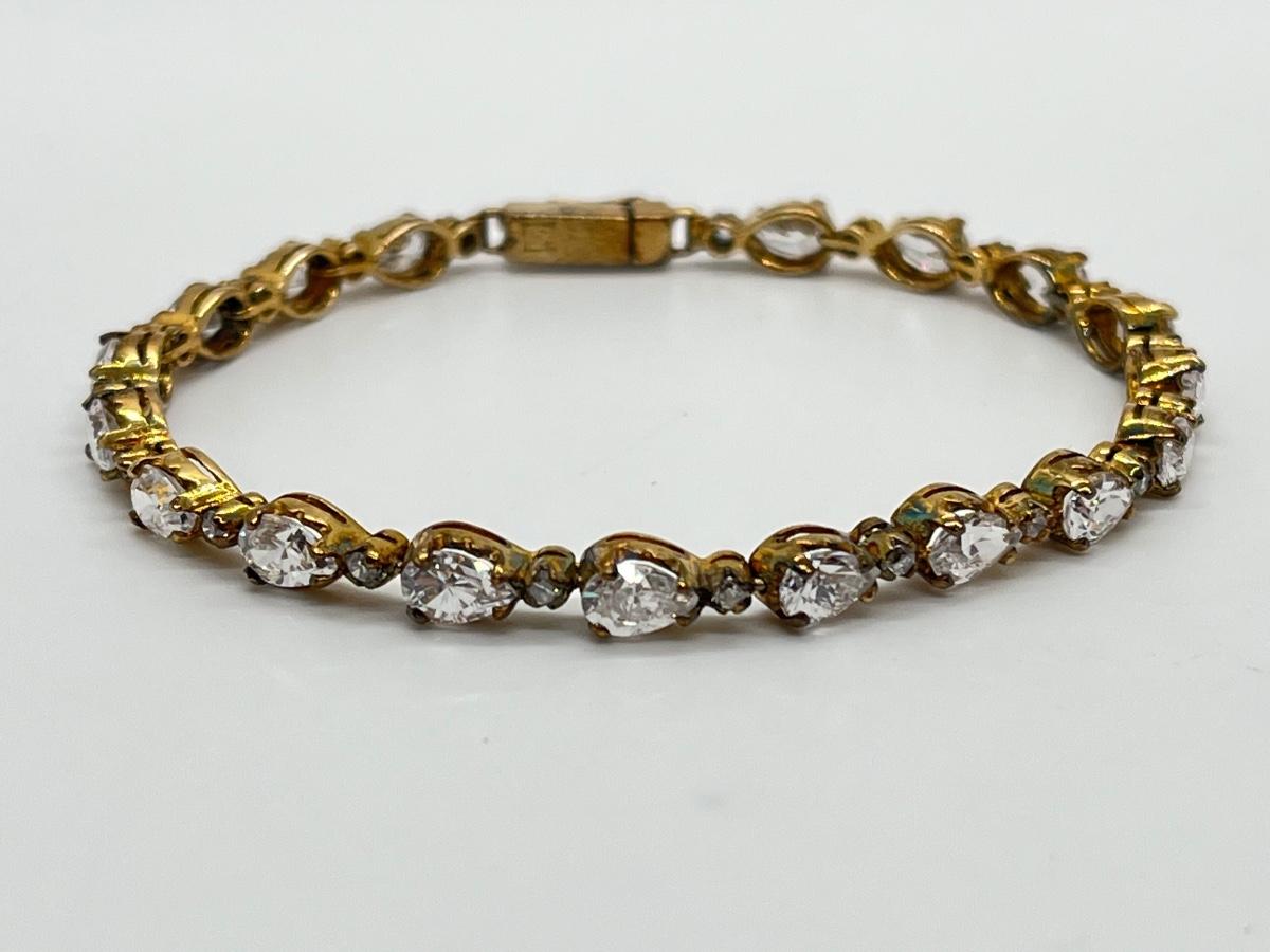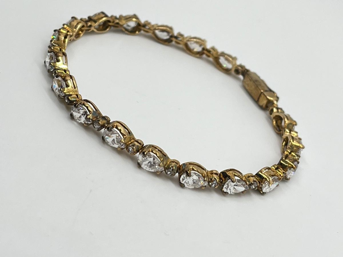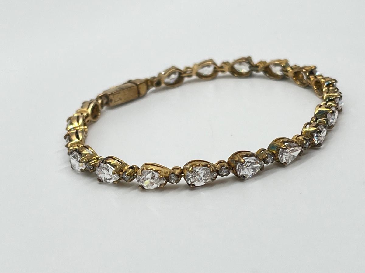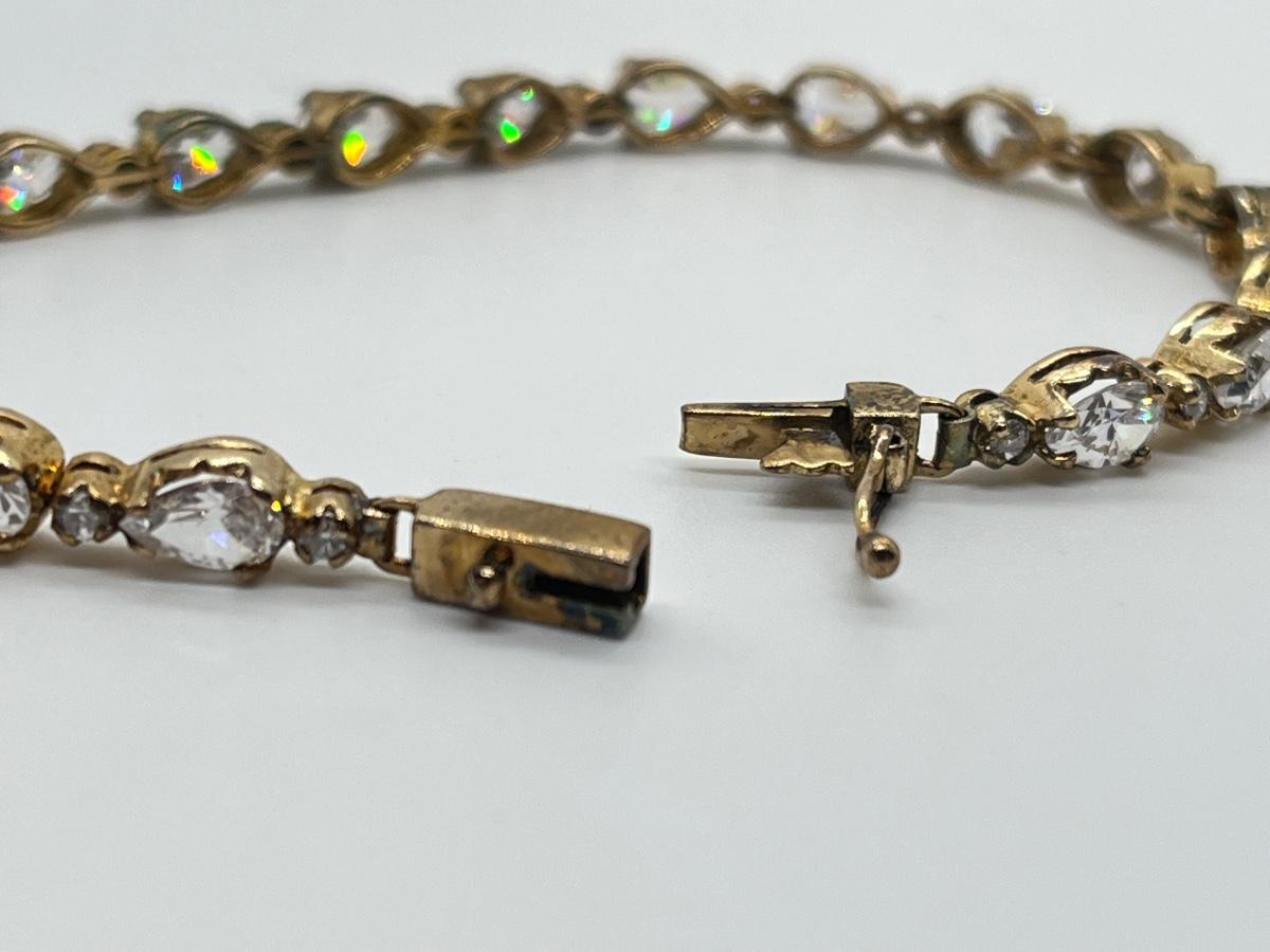 LOT 38: Gold Vermeil Sterling Silver CZ Tennis Bracelet - 7-1/2"