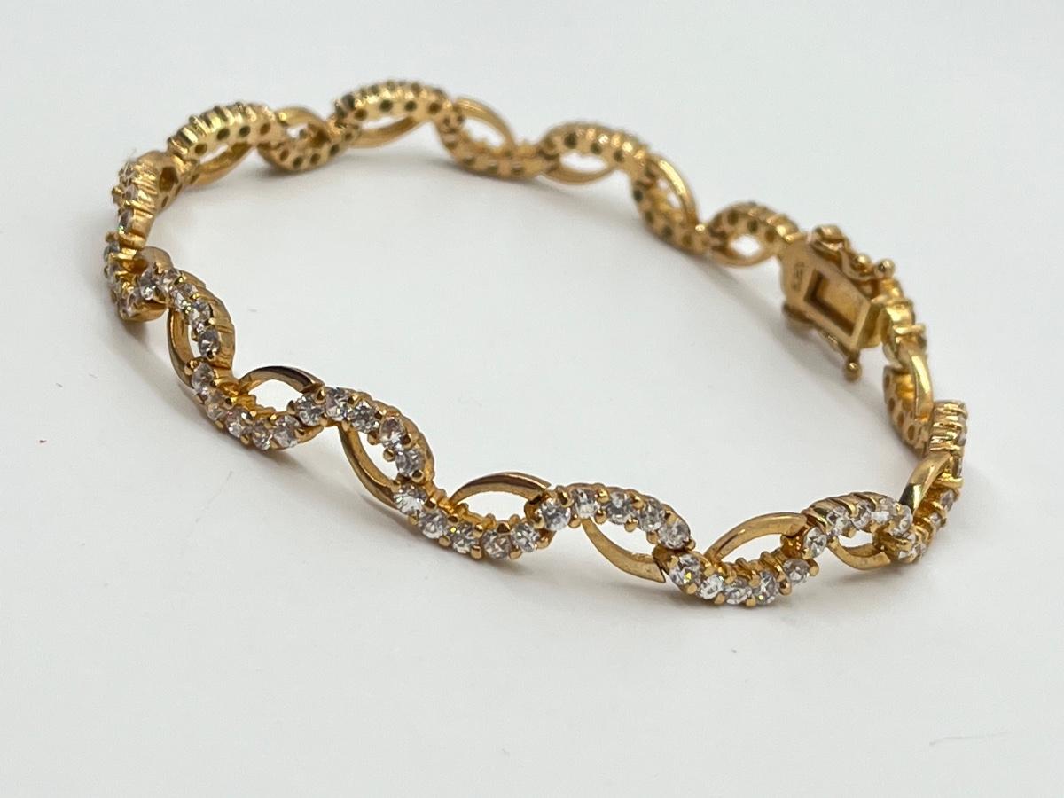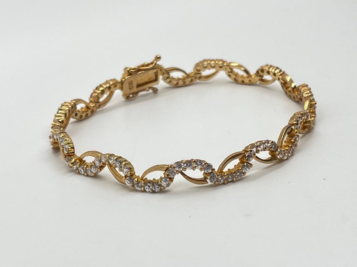 LOT 39: Lovely Gold Vermeil Sterling Silver Cubic Zirconia's 8" Bracelet