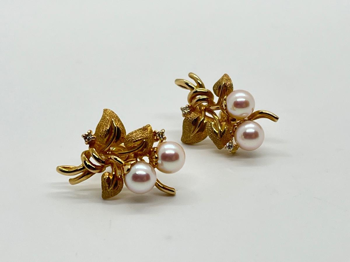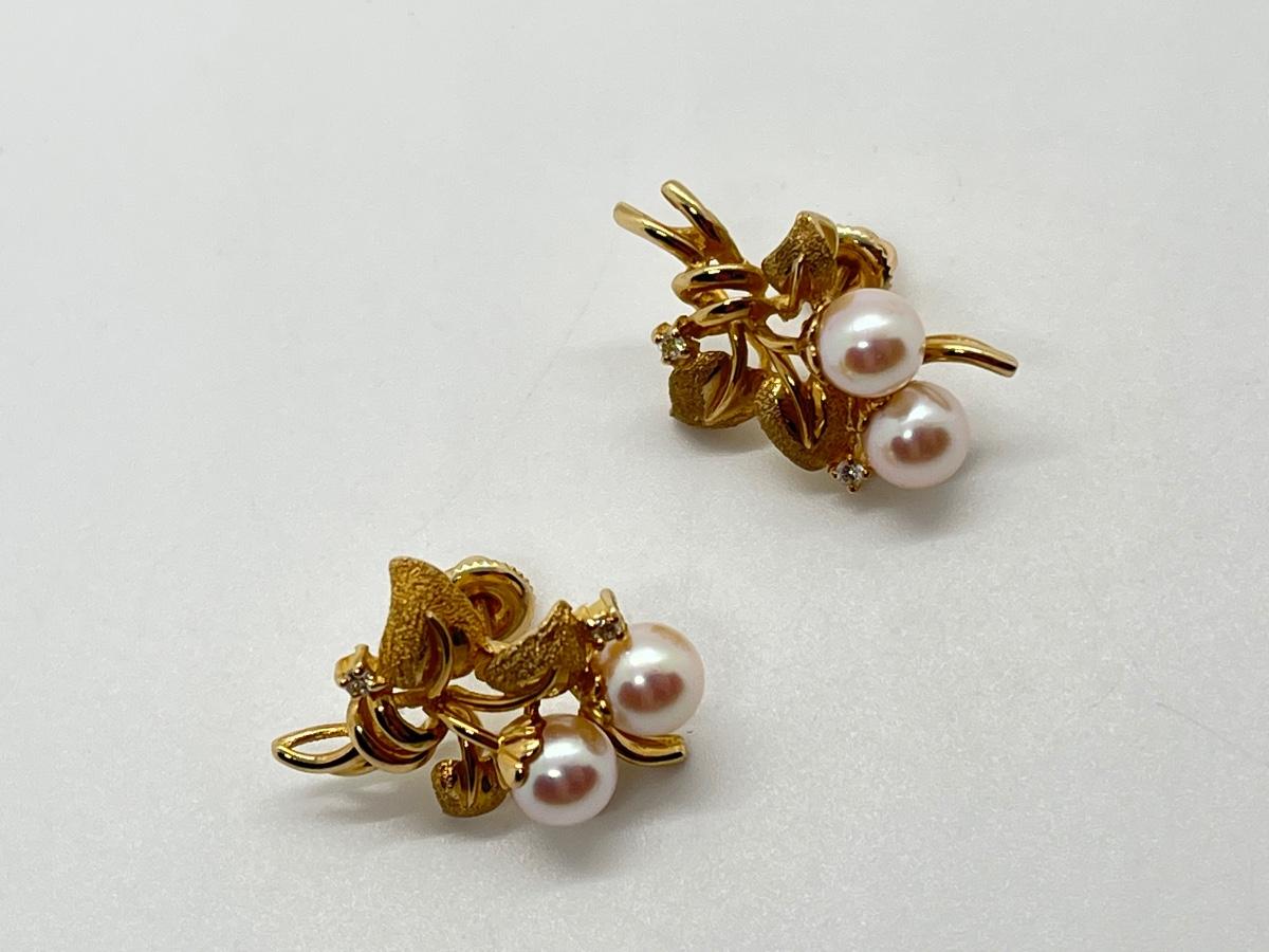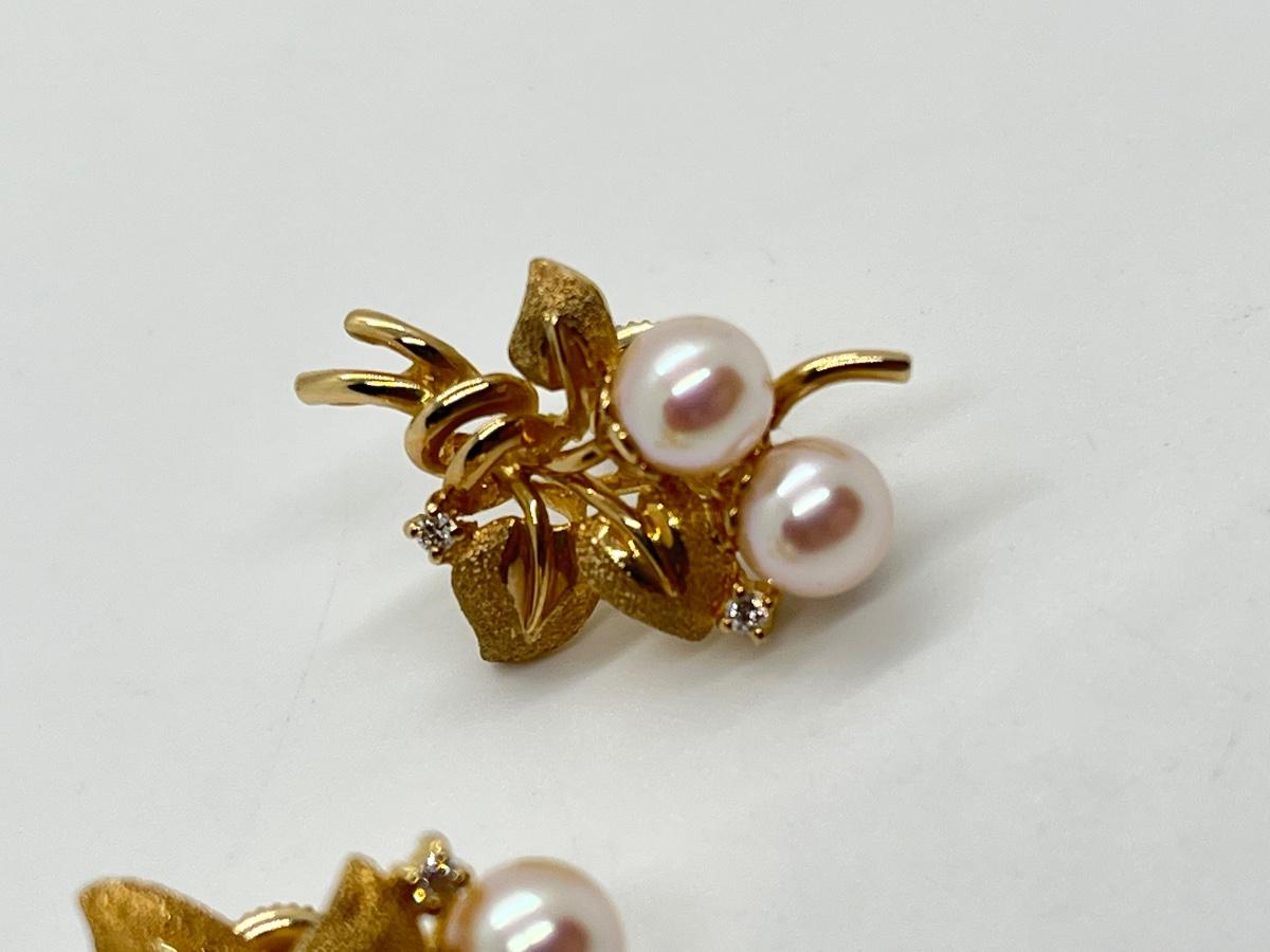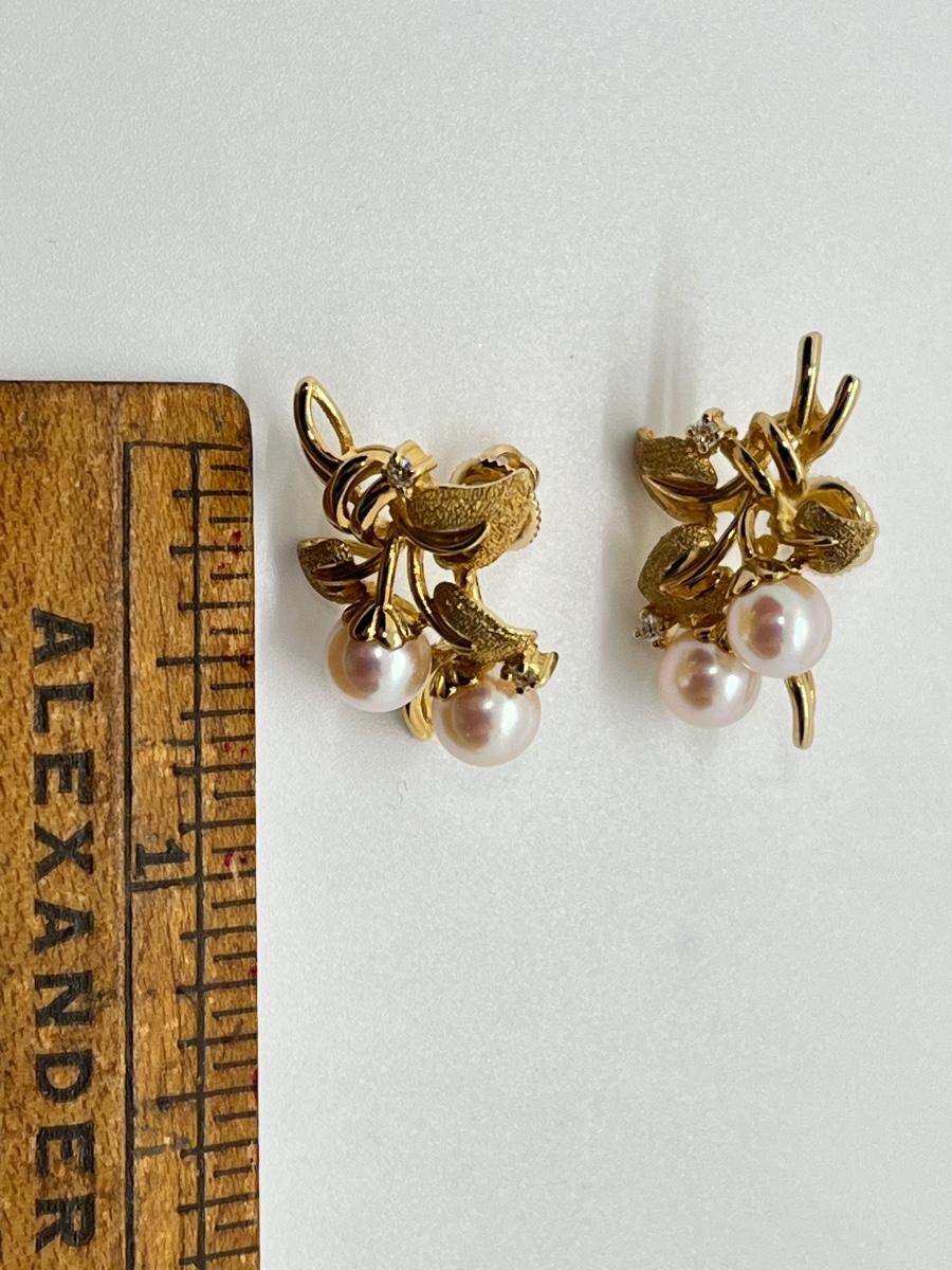LOT 44: 14K Gold Pearl & Diamond Flower Design Pierced Earrings w/ Screw Back Posts - 6.45 gtw