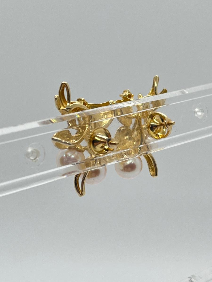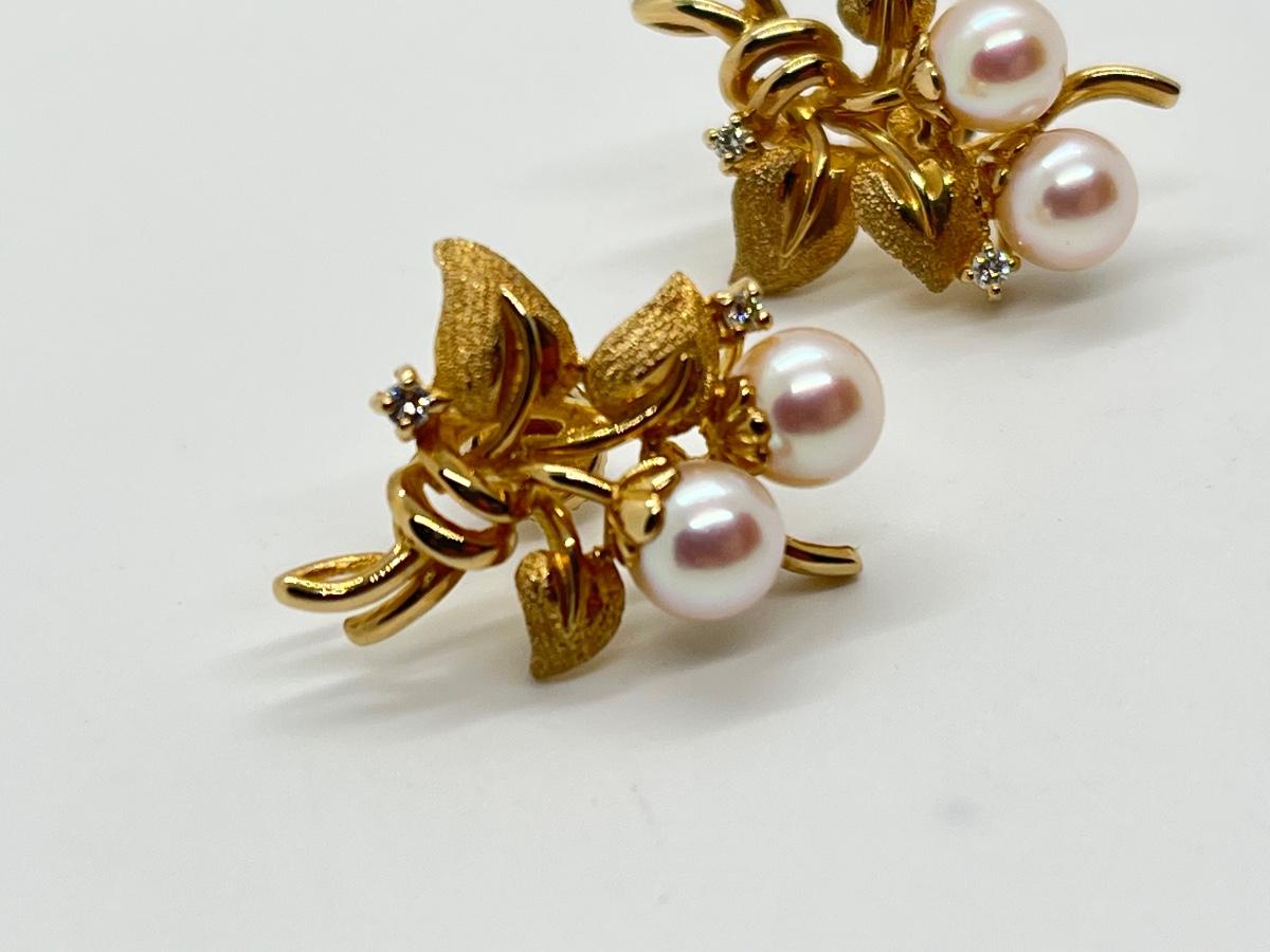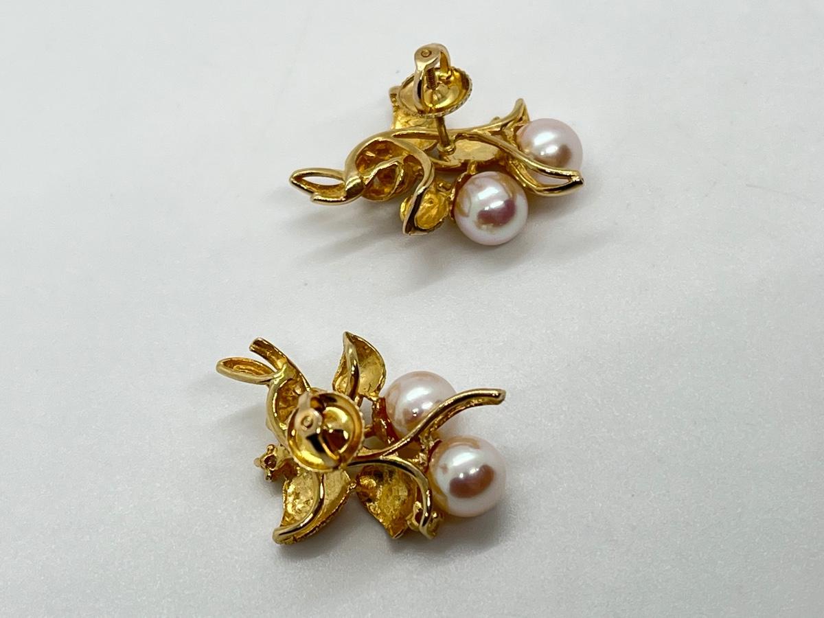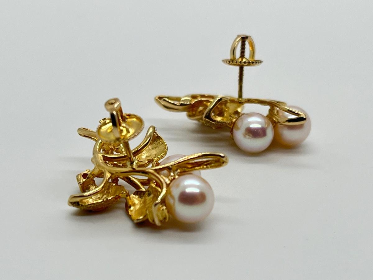 LOT 44: 14K Gold Pearl & Diamond Flower Design Pierced Earrings w/ Screw Back Posts - 6.45 gtw