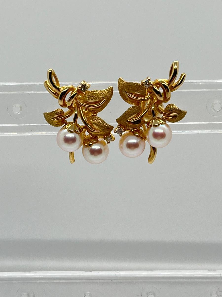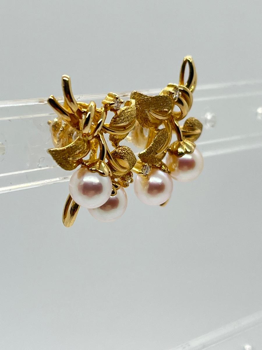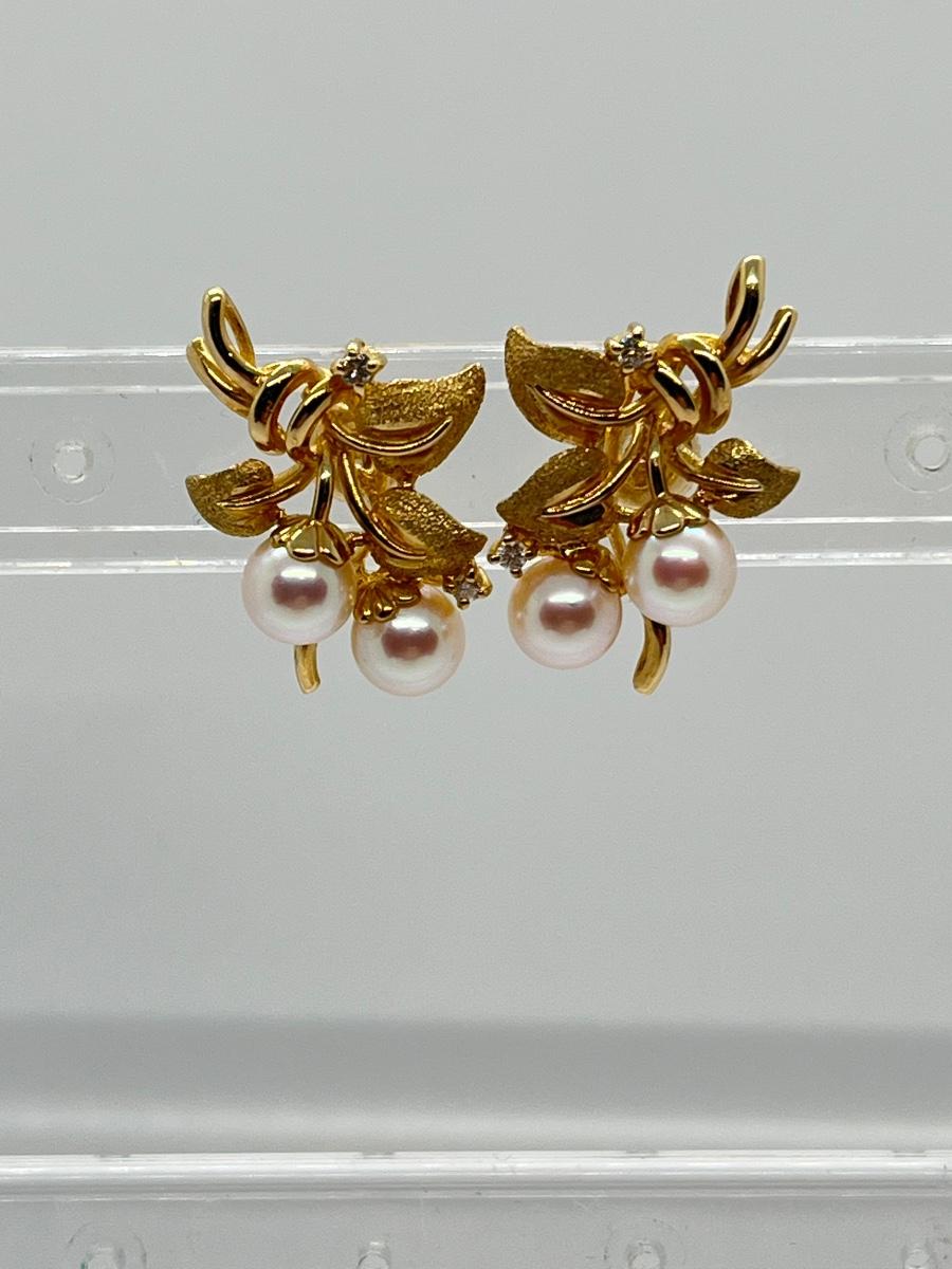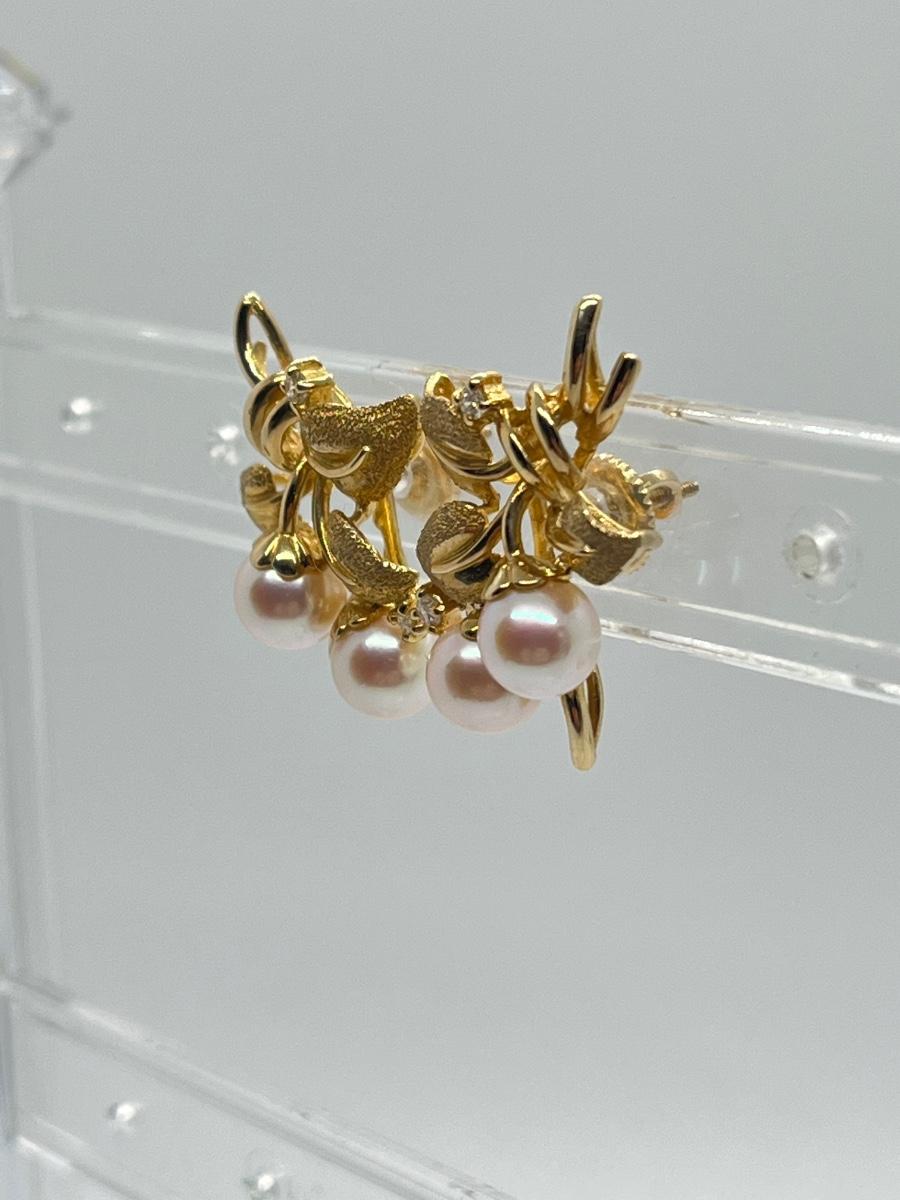 LOT 44: 14K Gold Pearl & Diamond Flower Design Pierced Earrings w/ Screw Back Posts - 6.45 gtw
