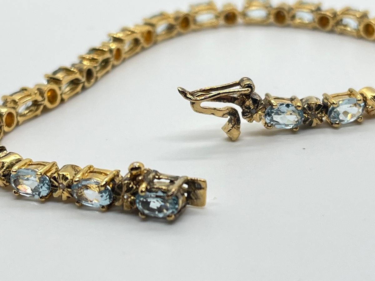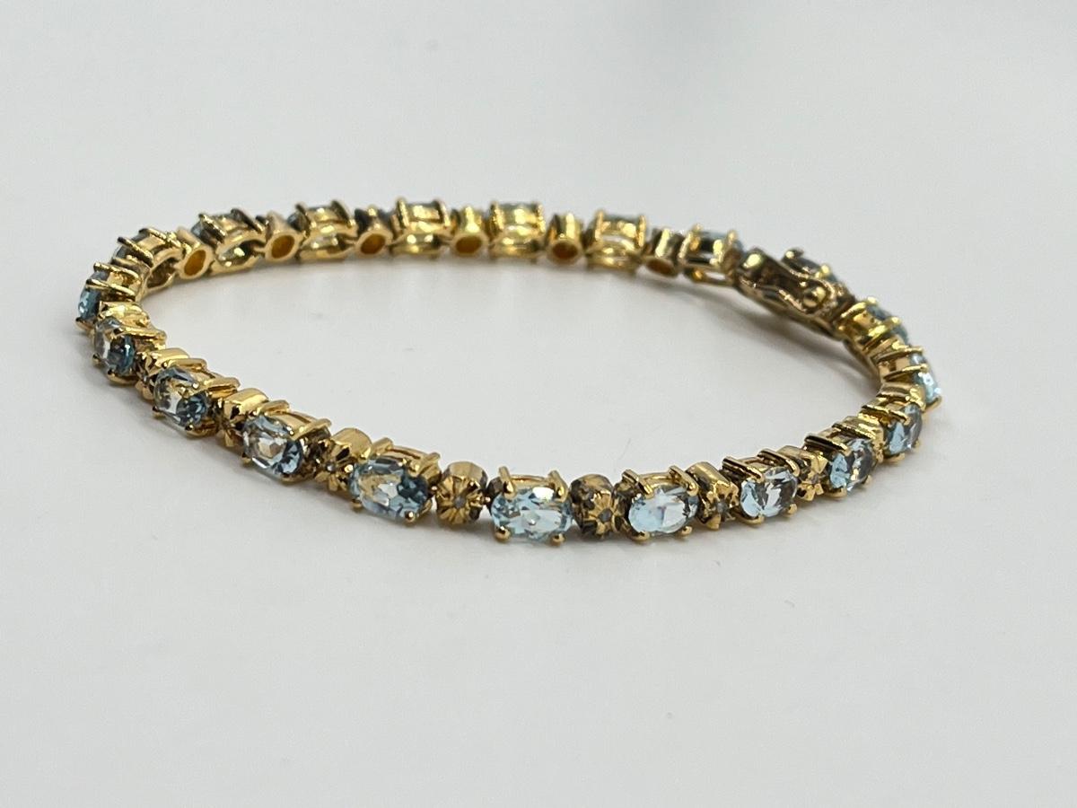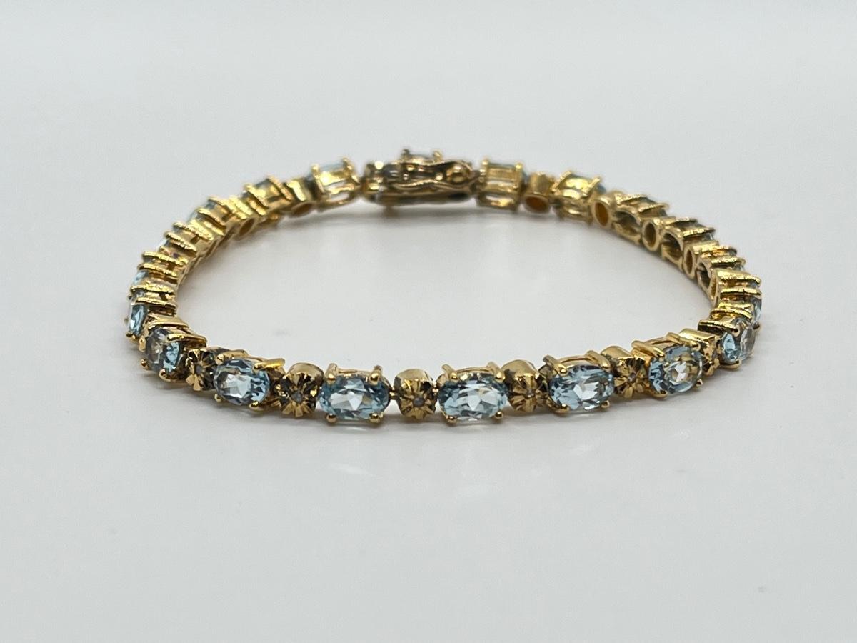 LOT 51: 10K Gold and Blue Topaz 7-1/2" Tennis Bracelet - 13.9 gtw