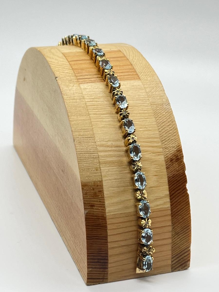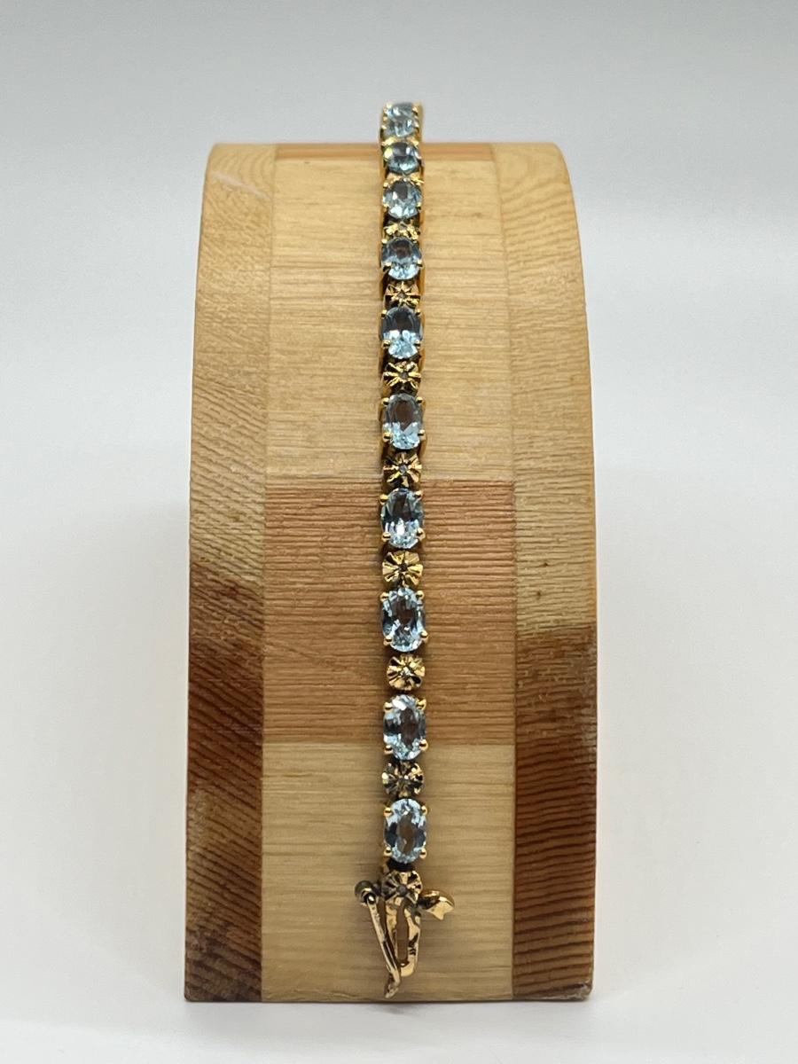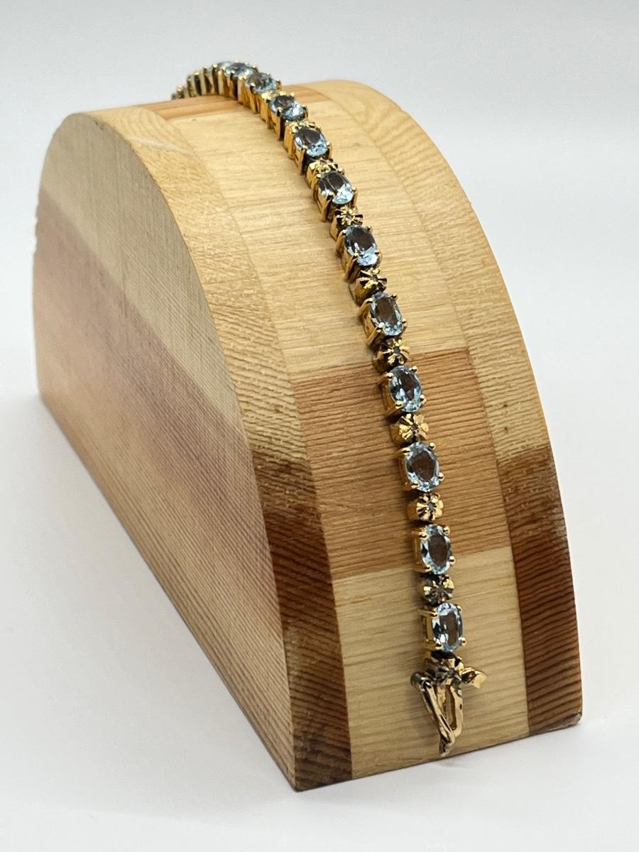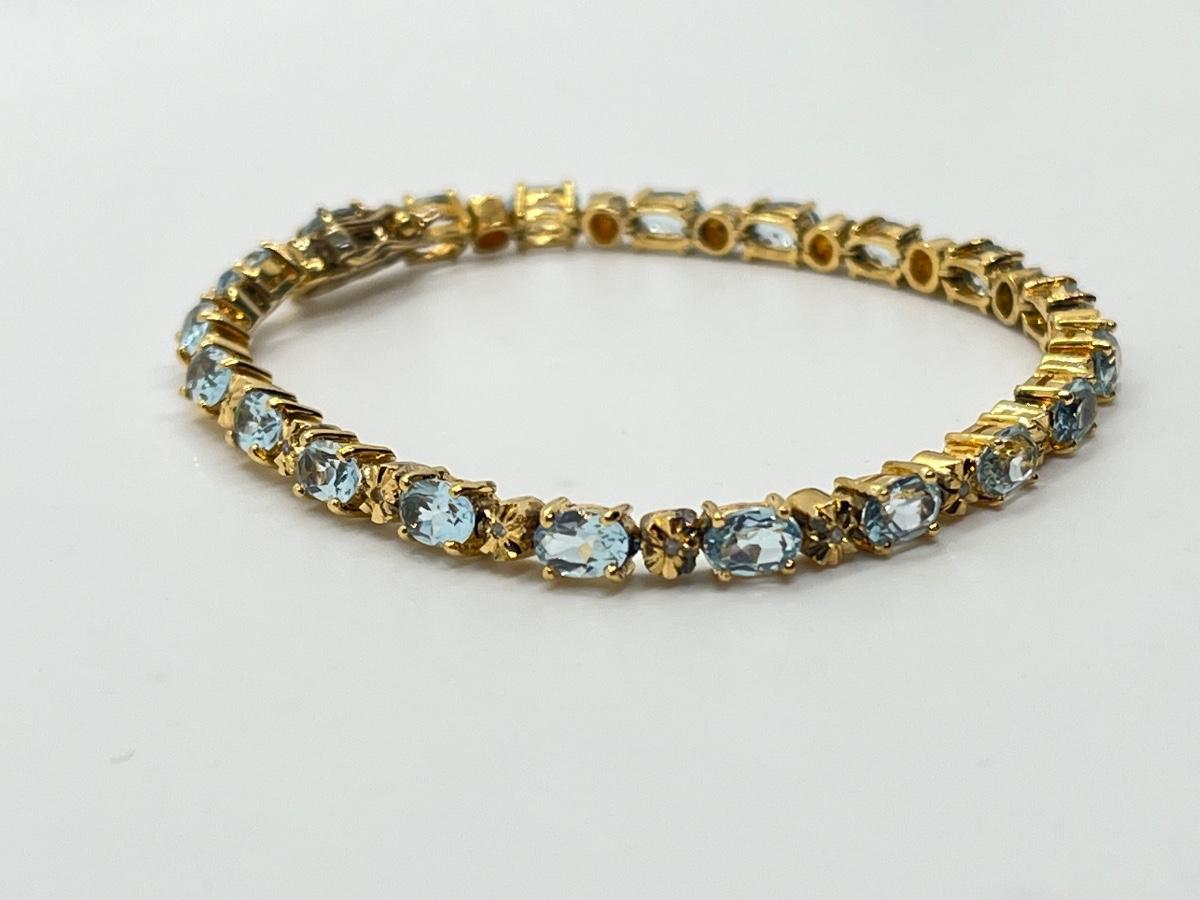 LOT 51: 10K Gold and Blue Topaz 7-1/2" Tennis Bracelet - 13.9 gtw