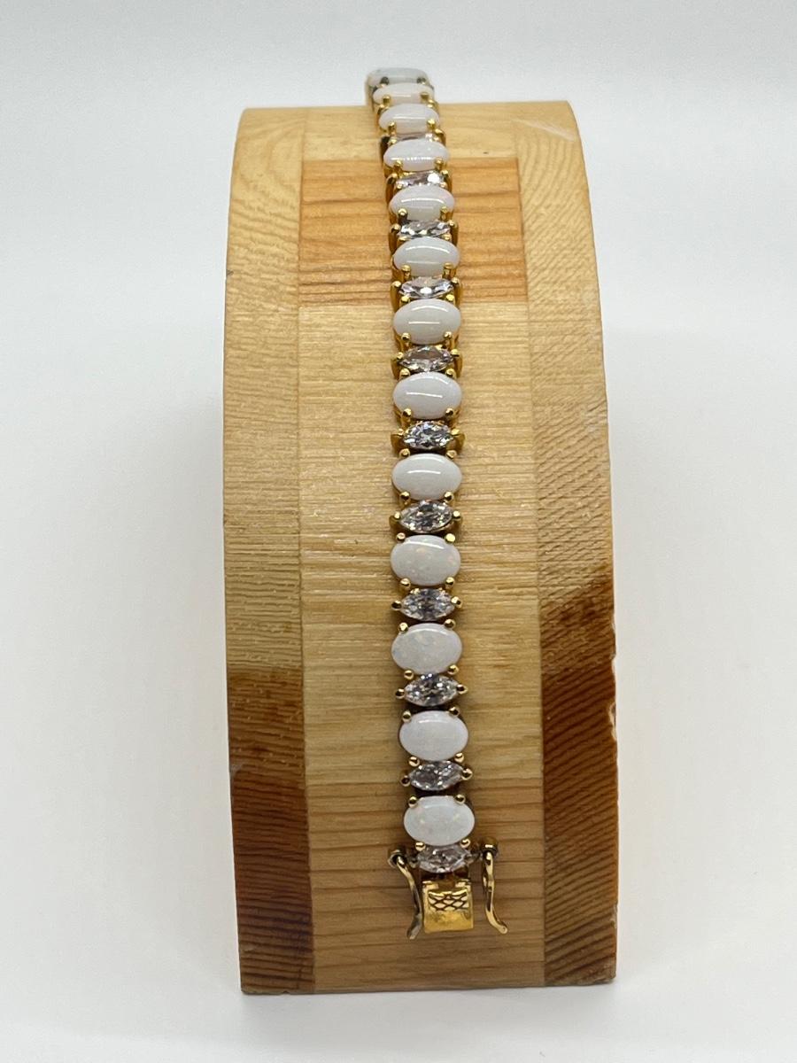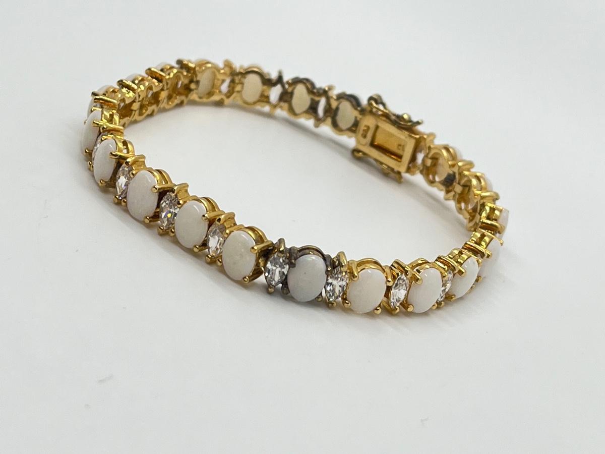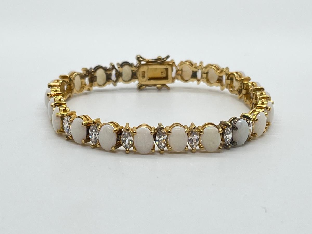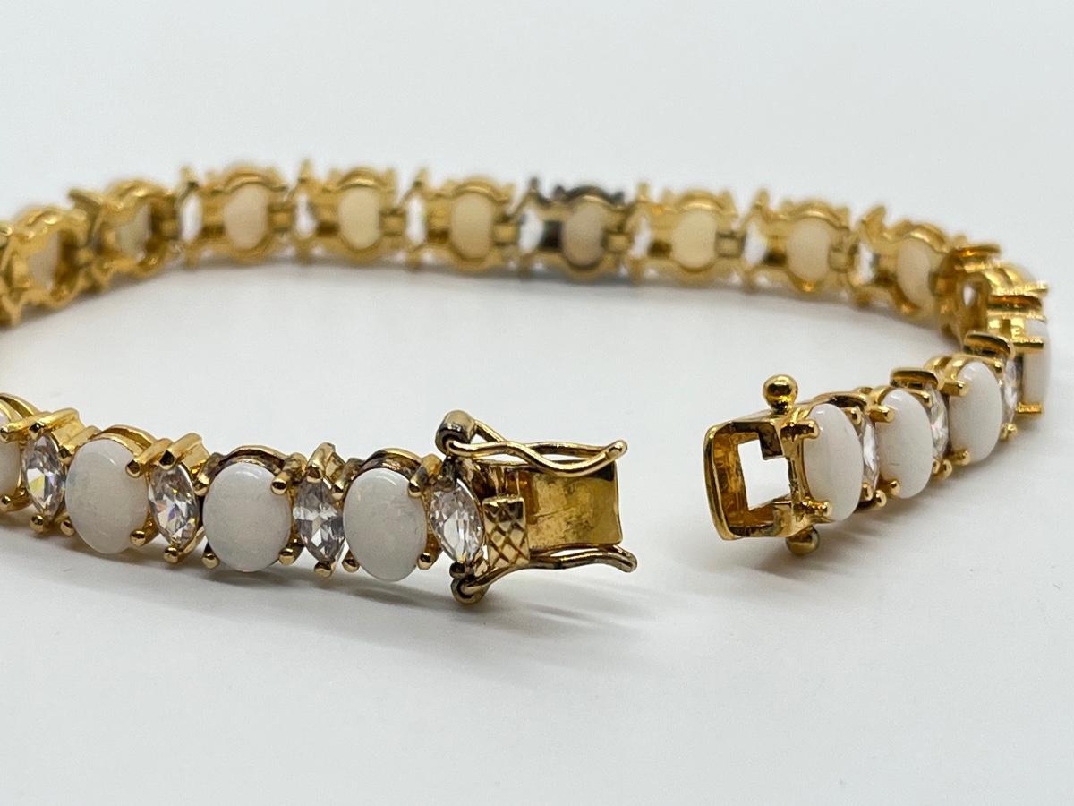 LOT 57: Opals & CZ's Gold Vermeil Sterling Silver Bracelet - 7-1/4"