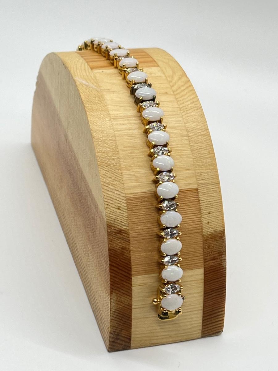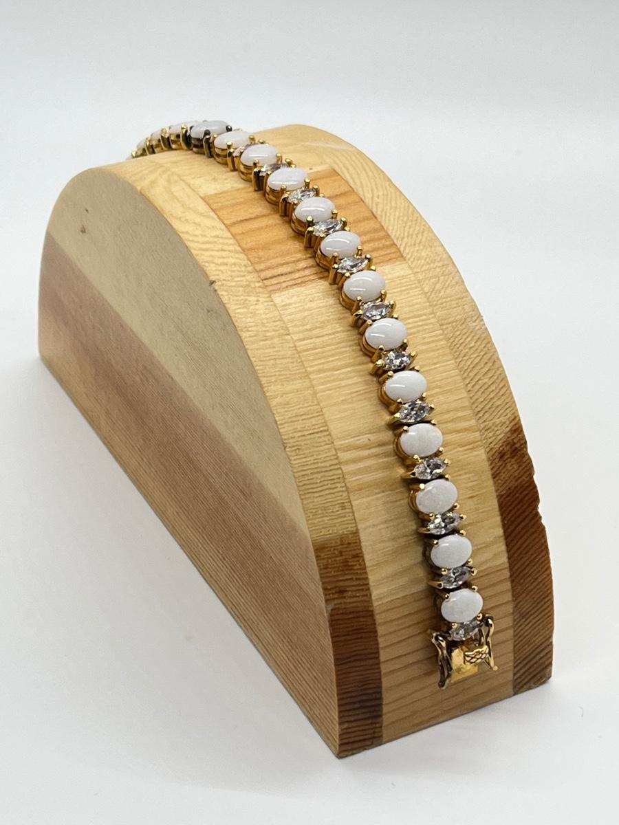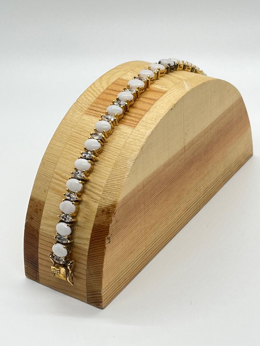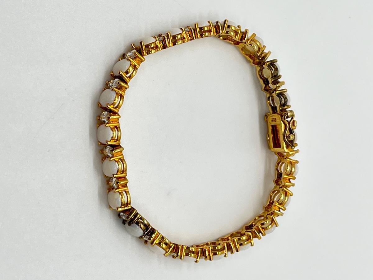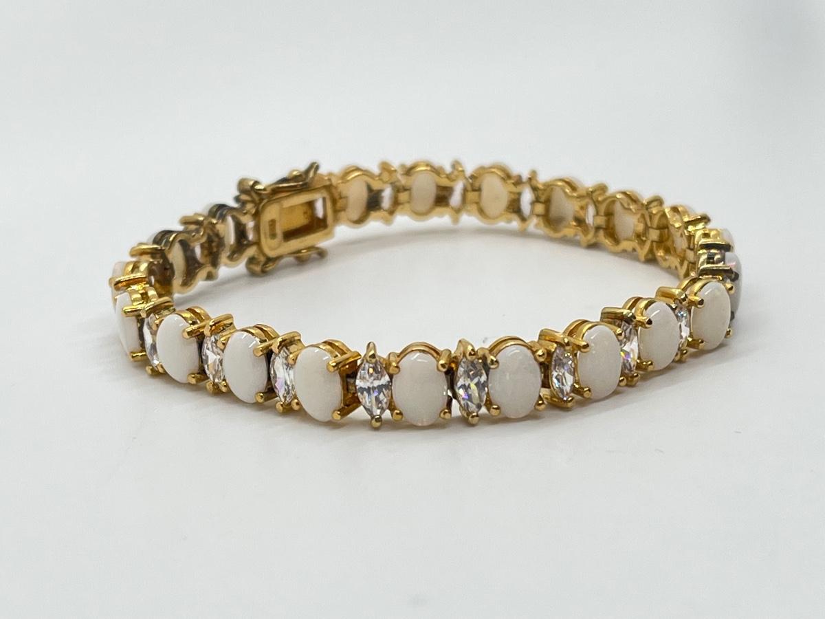 LOT 57: Opals & CZ's Gold Vermeil Sterling Silver Bracelet - 7-1/4"