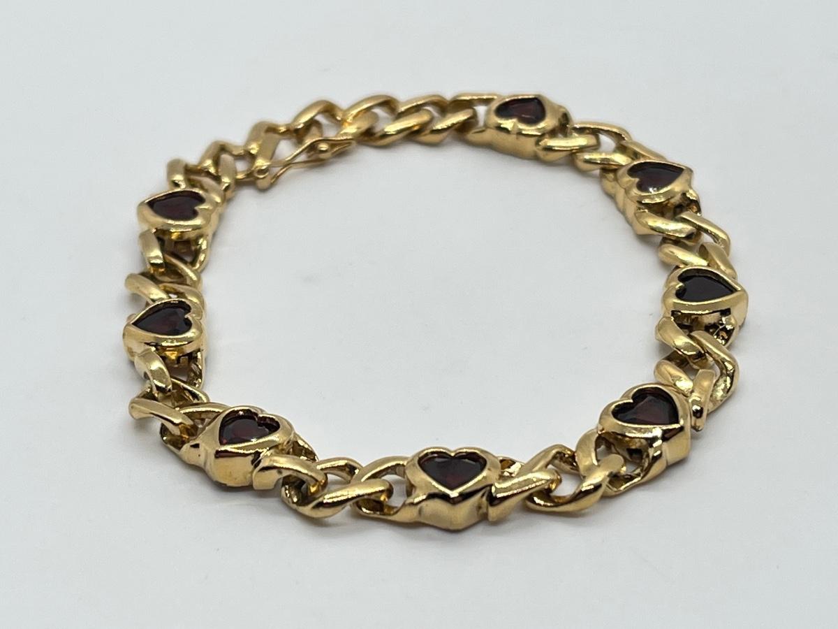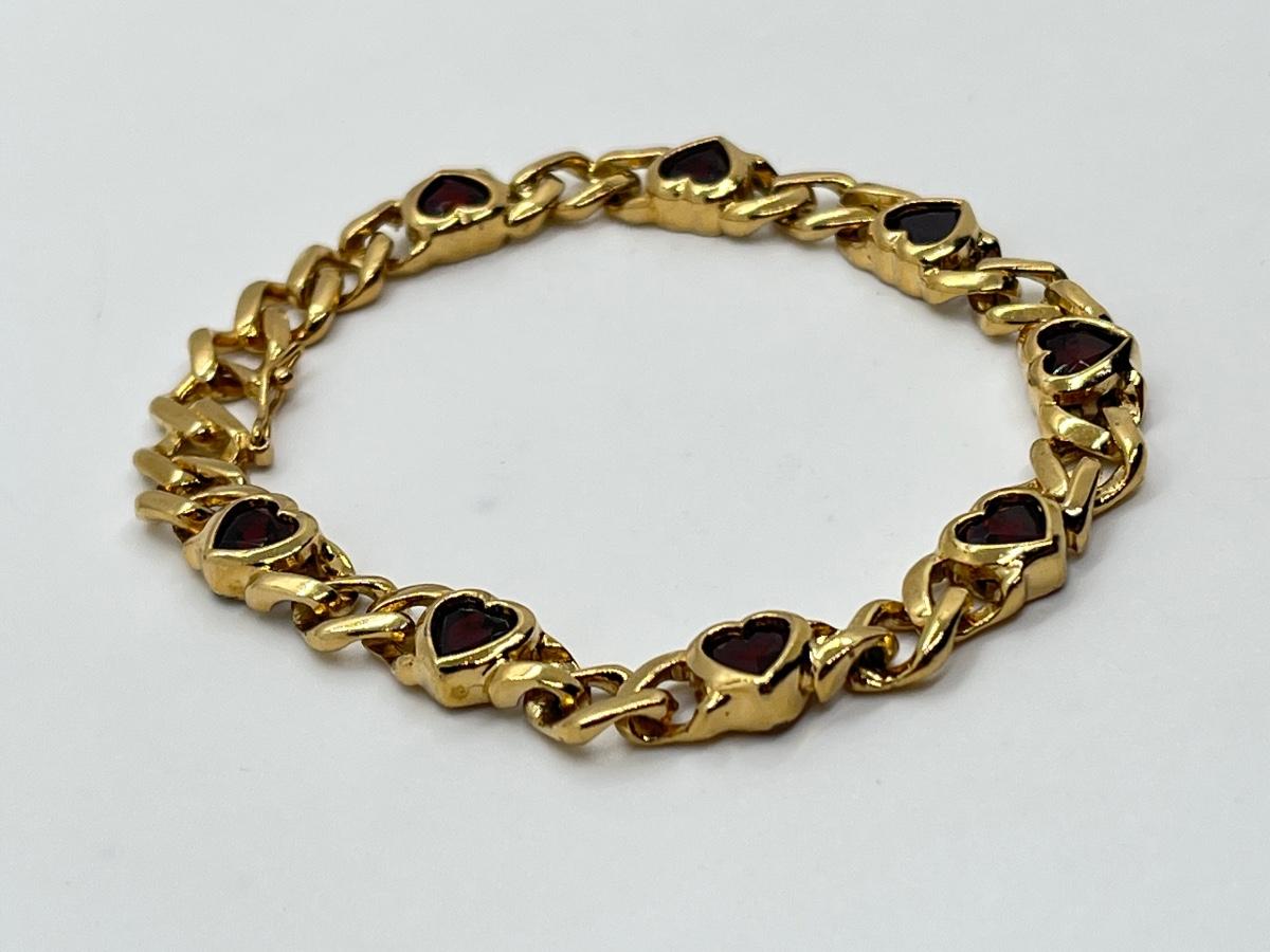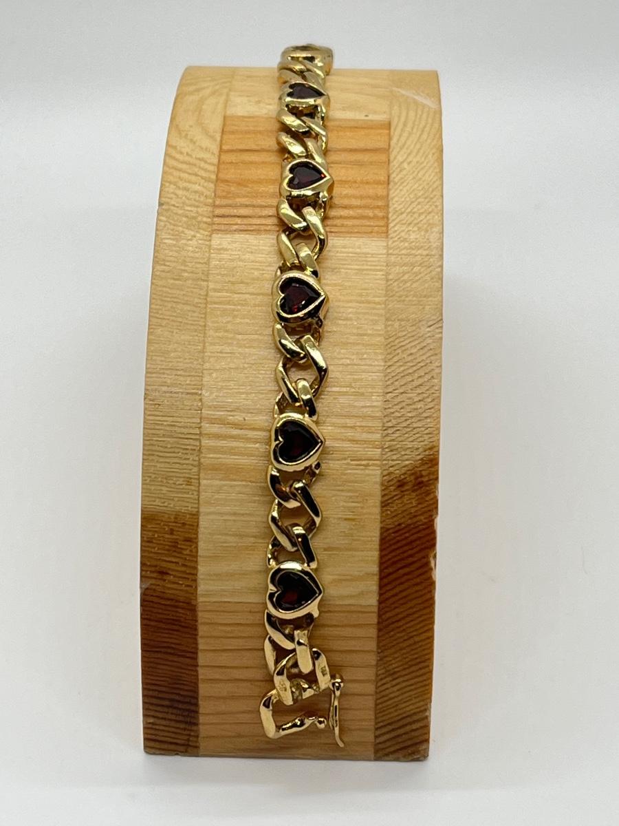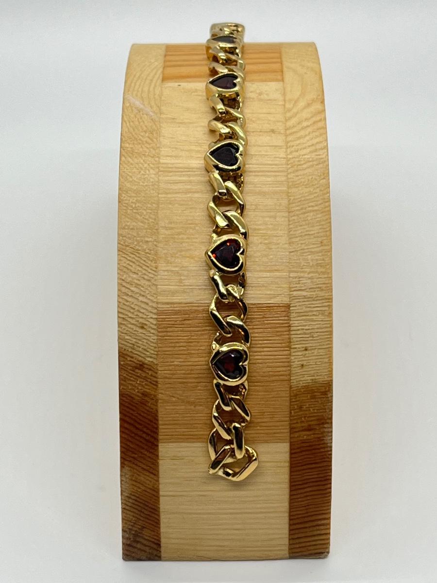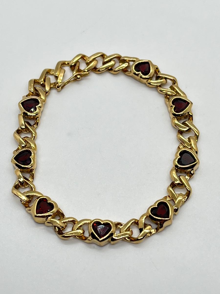LOT 58: Gold Vermeil Sterling Silver 7" Garnet Hearts Bracelet