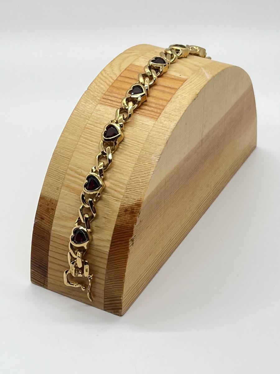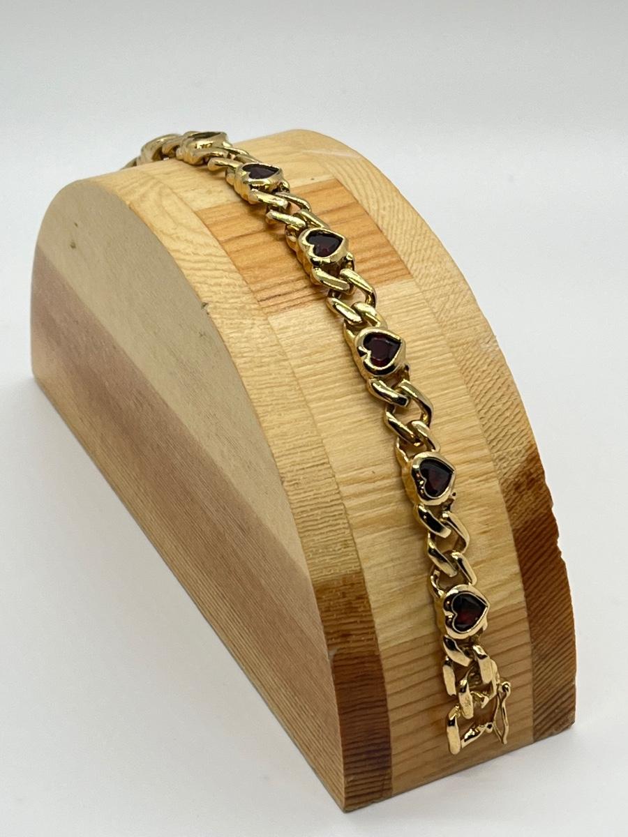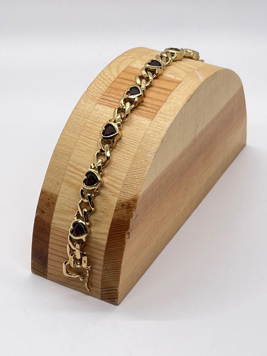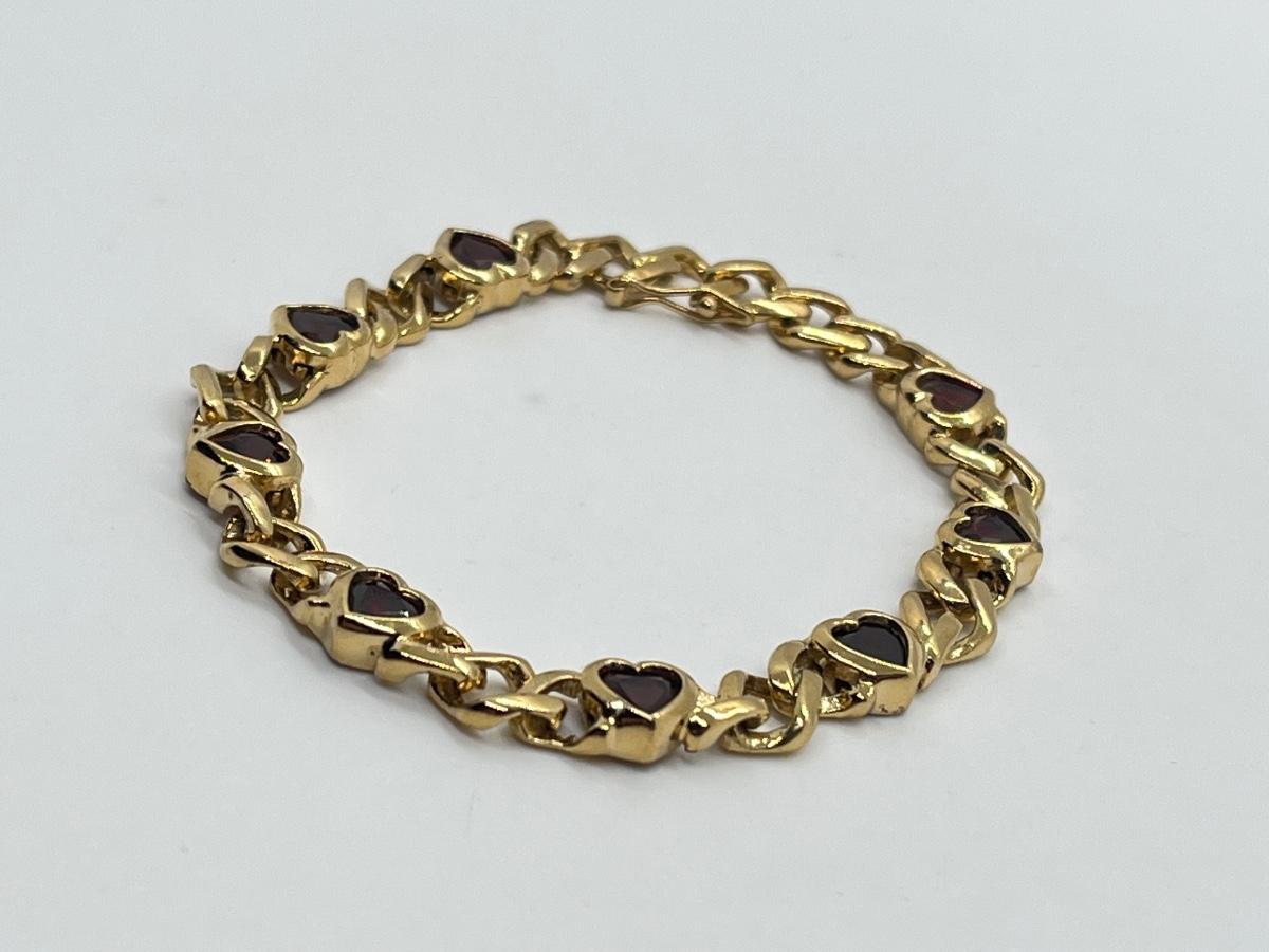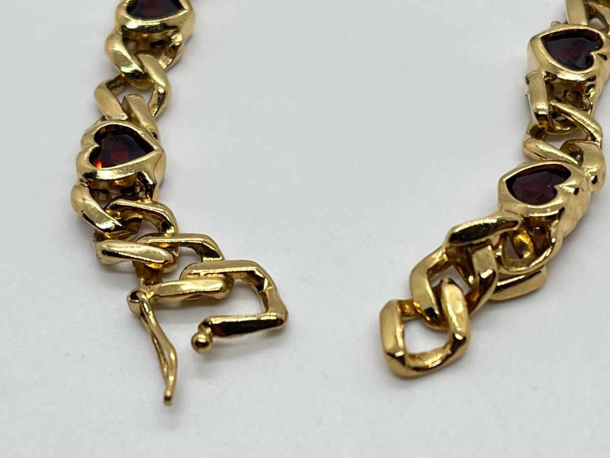 LOT 58: Gold Vermeil Sterling Silver 7" Garnet Hearts Bracelet