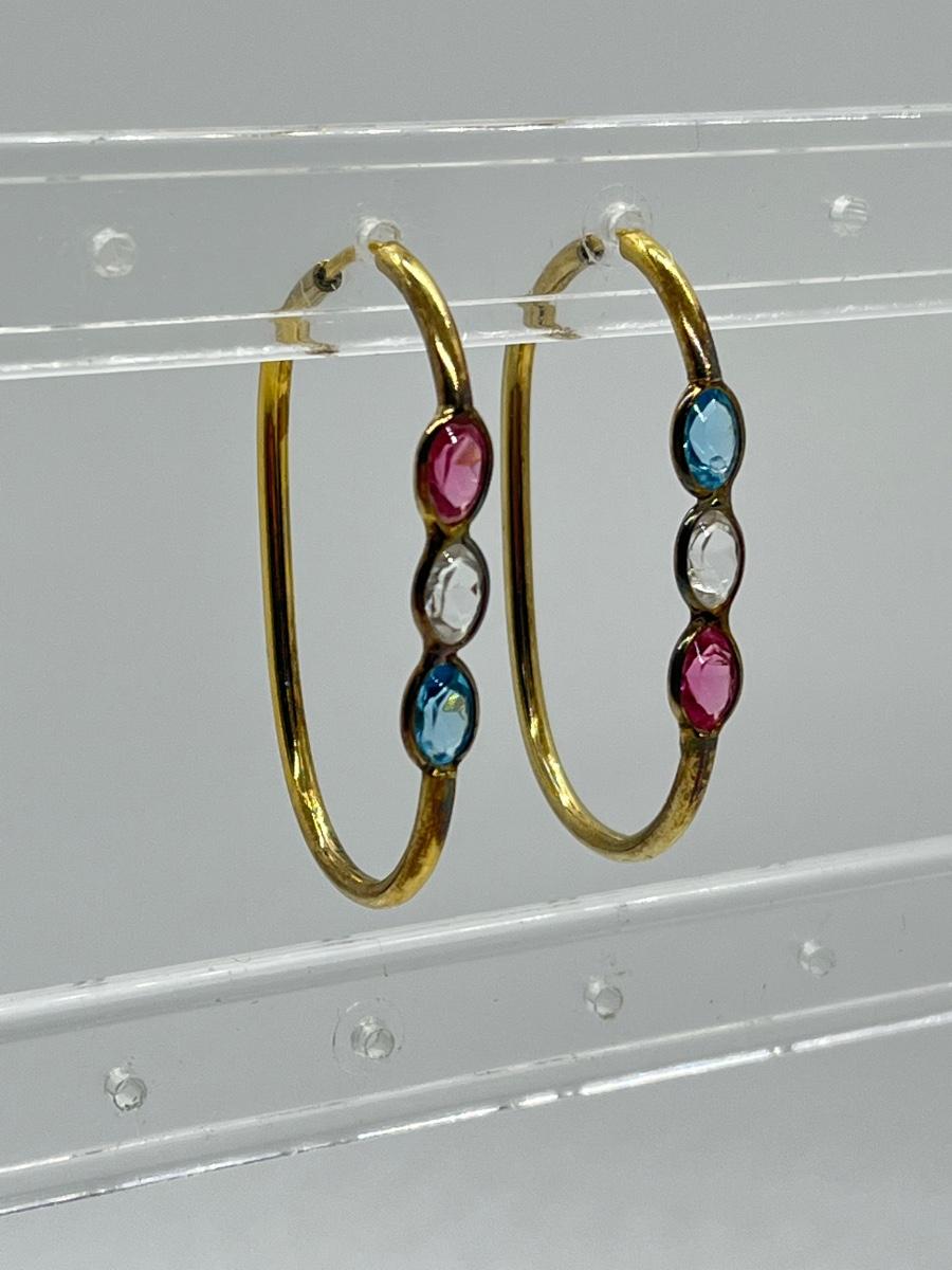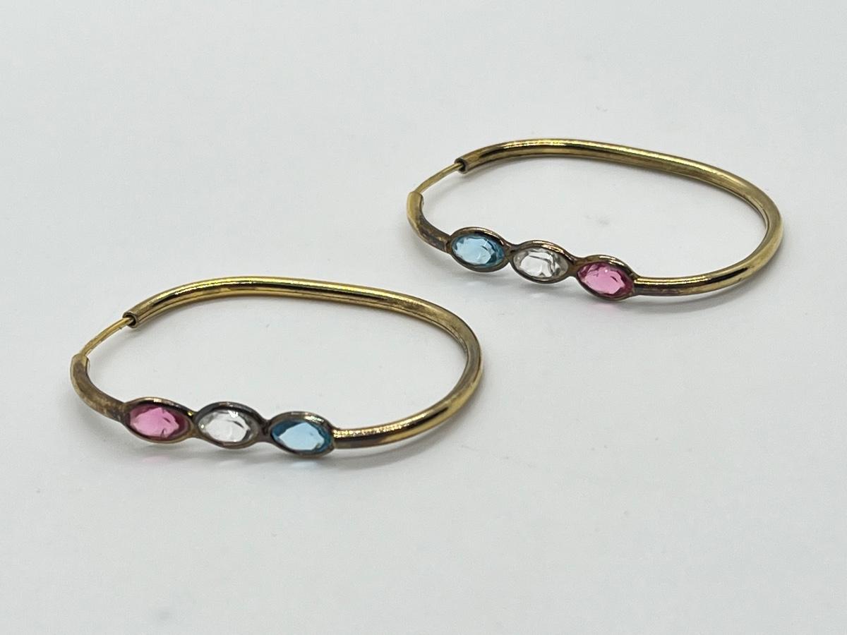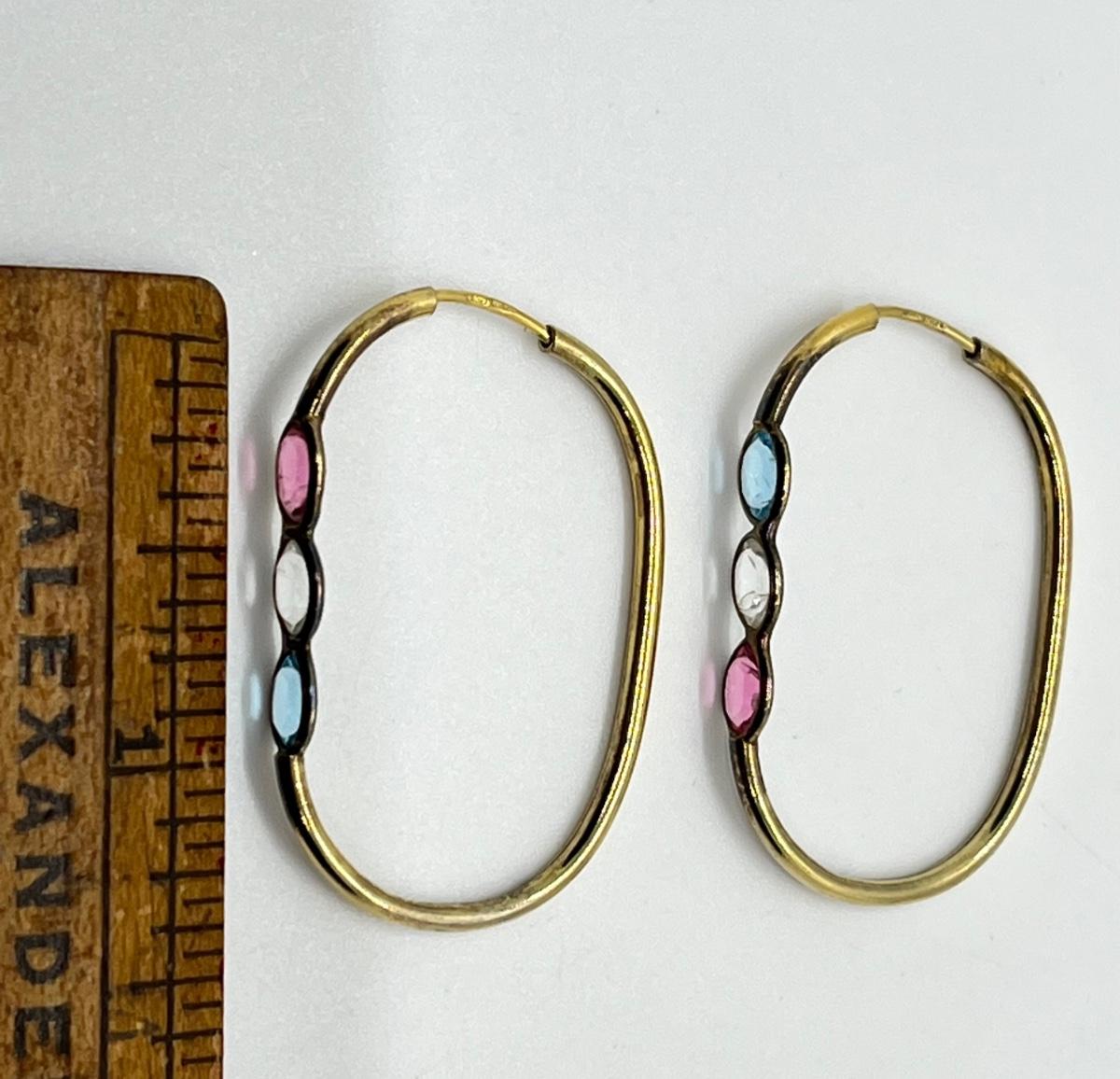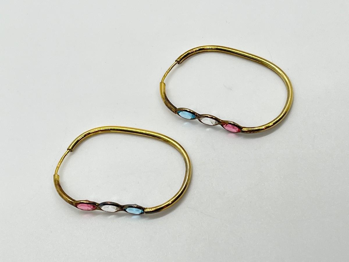 LOT 60: Gold Vermeil 800 Silver Gemstone Pierced Hoop Earrings