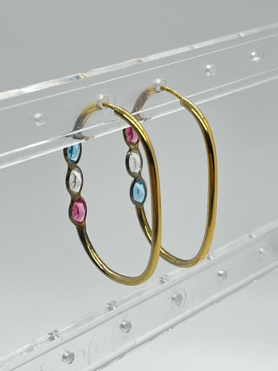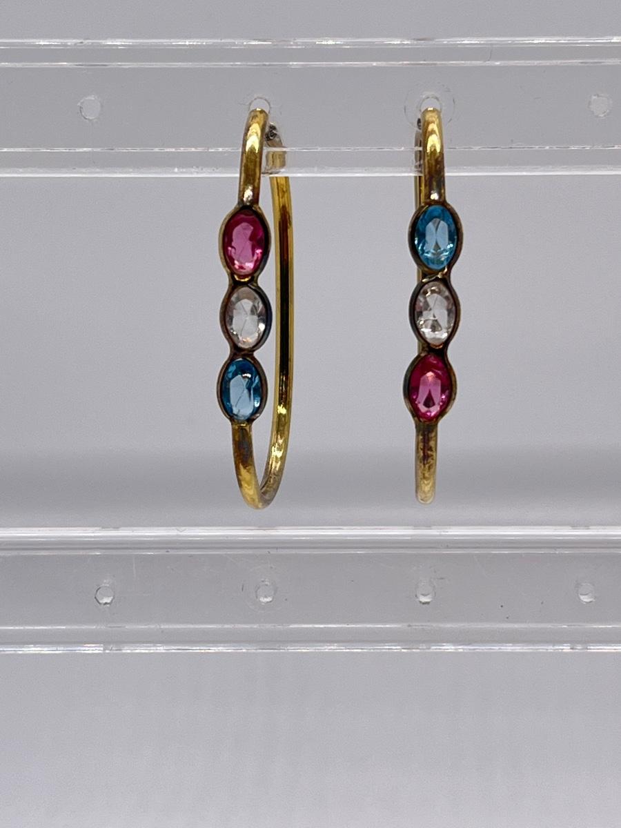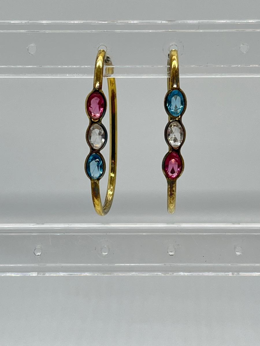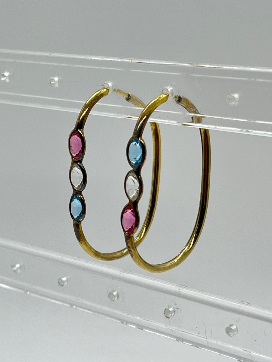 LOT 60: Gold Vermeil 800 Silver Gemstone Pierced Hoop Earrings
