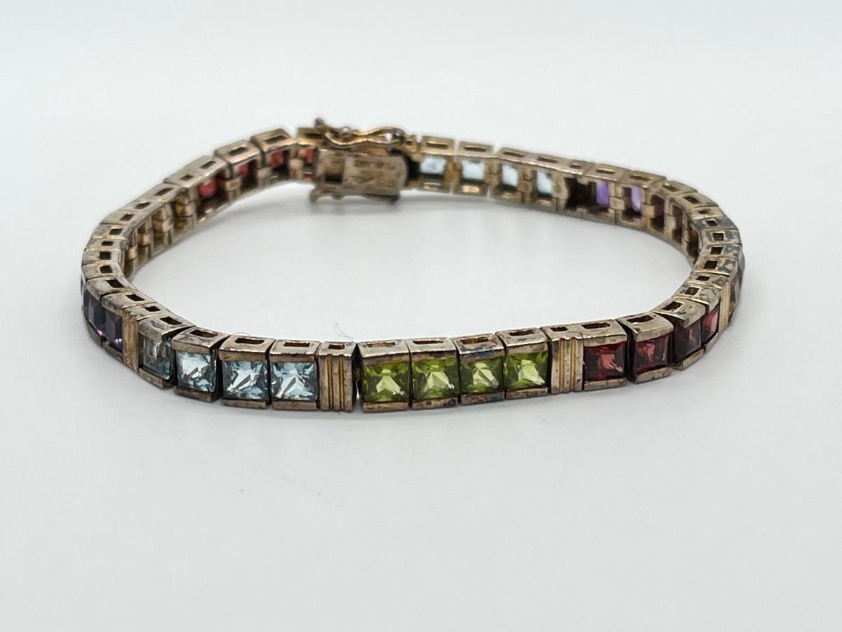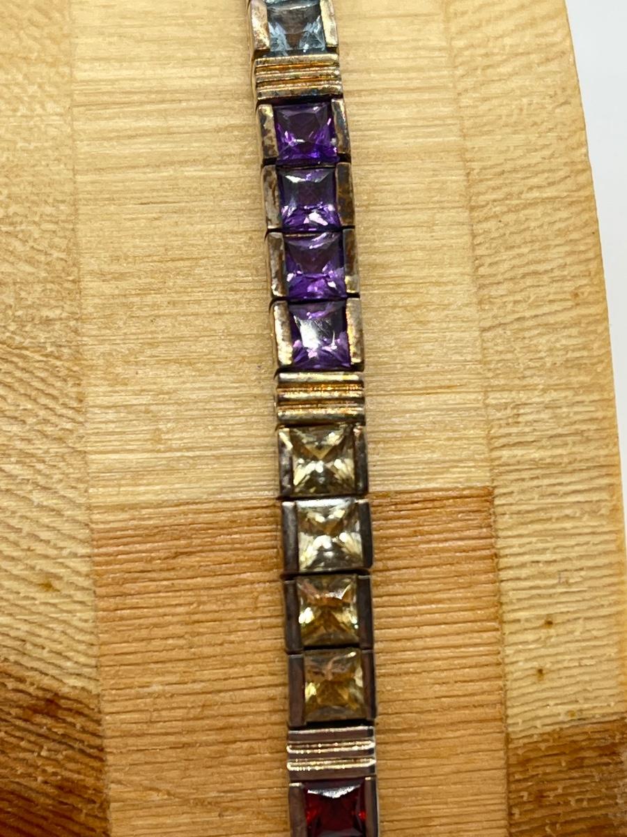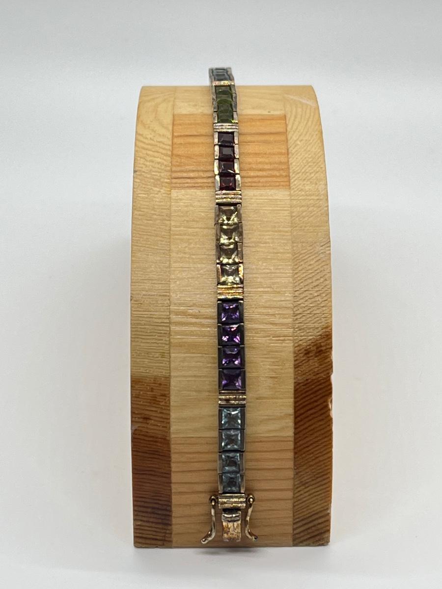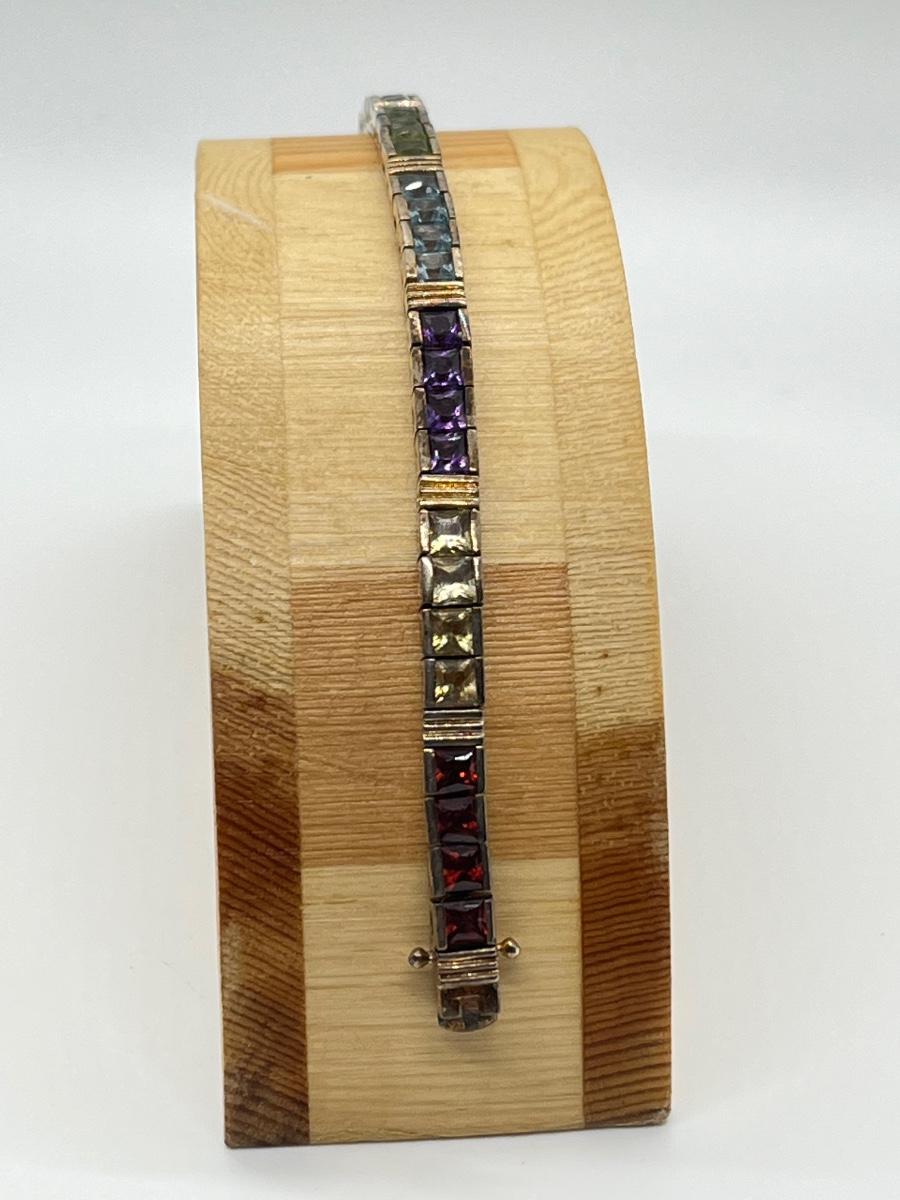 LOT 62: Gold Vermeil Sterling Silver Multiple Gemstones Tennis Bracelet - 7-1/2"