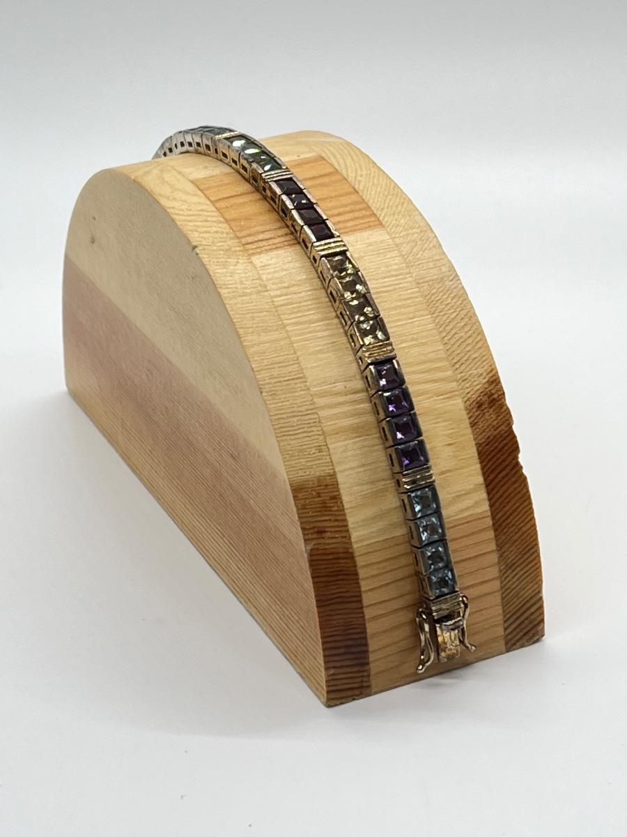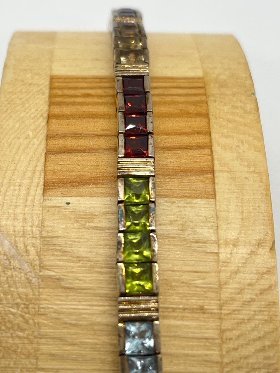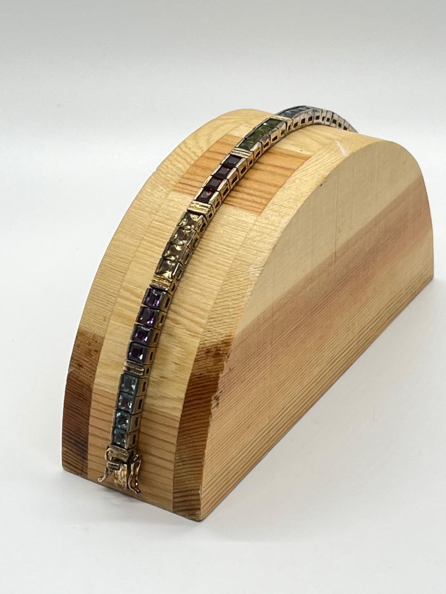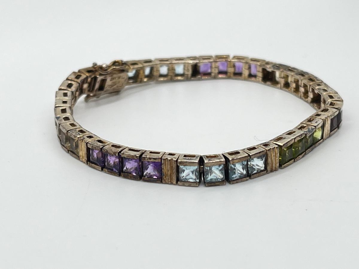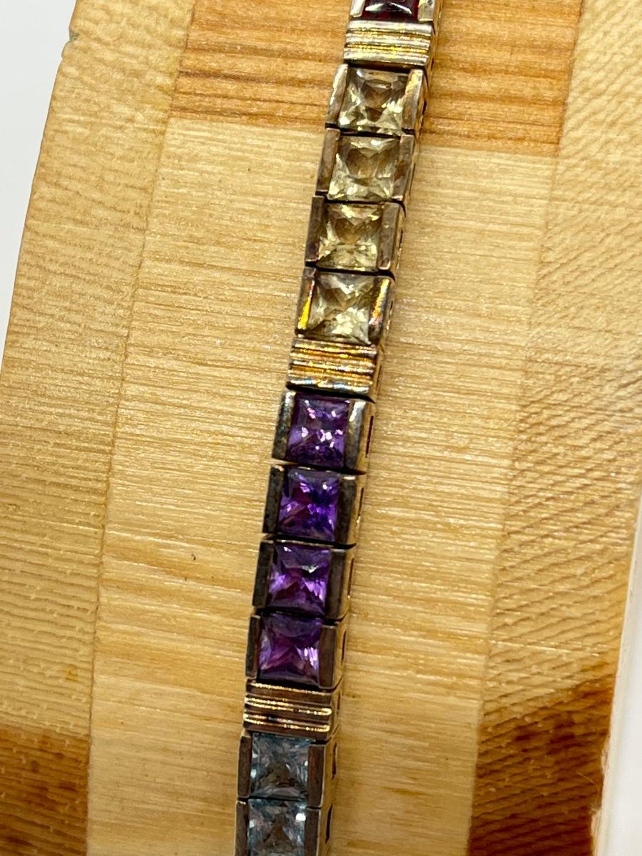LOT 62: Gold Vermeil Sterling Silver Multiple Gemstones Tennis Bracelet - 7-1/2"