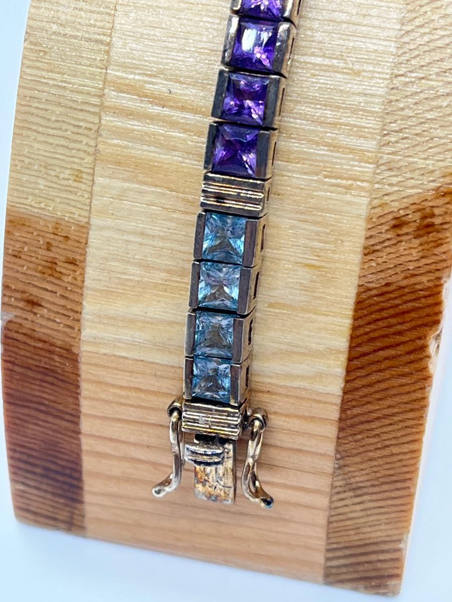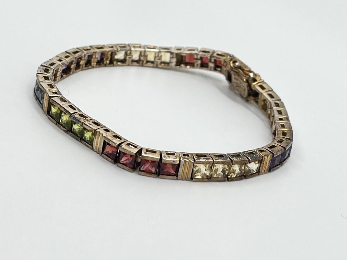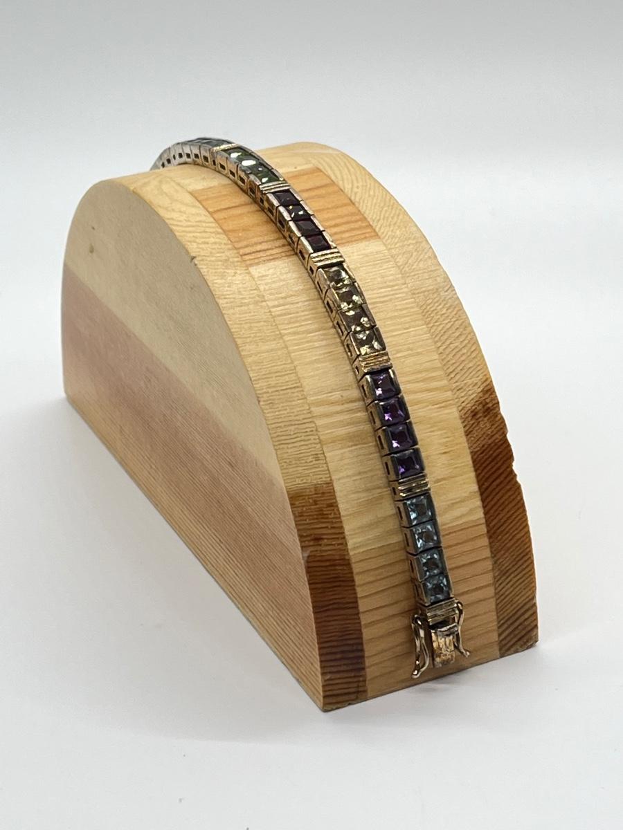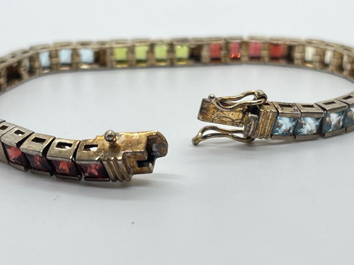 LOT 62: Gold Vermeil Sterling Silver Multiple Gemstones Tennis Bracelet - 7-1/2"
