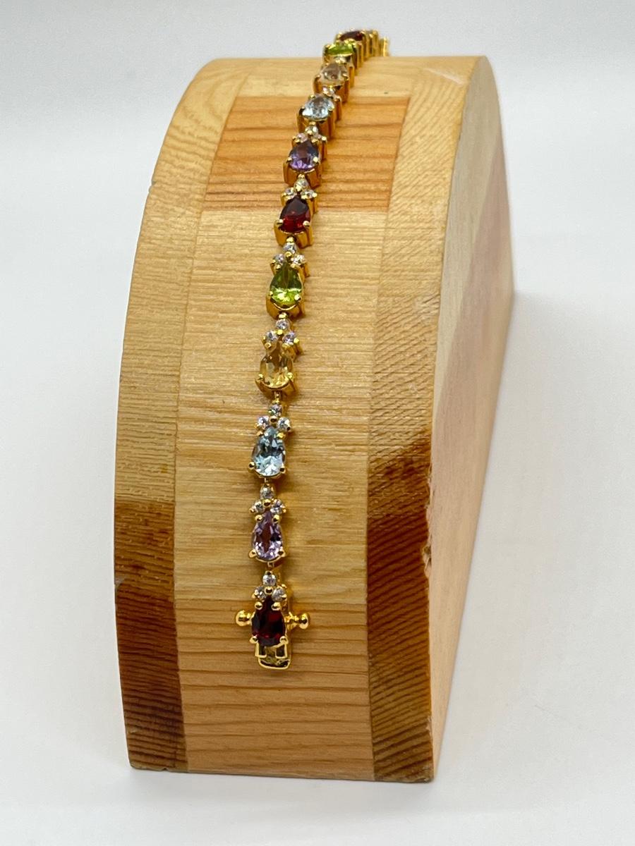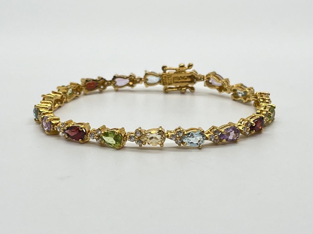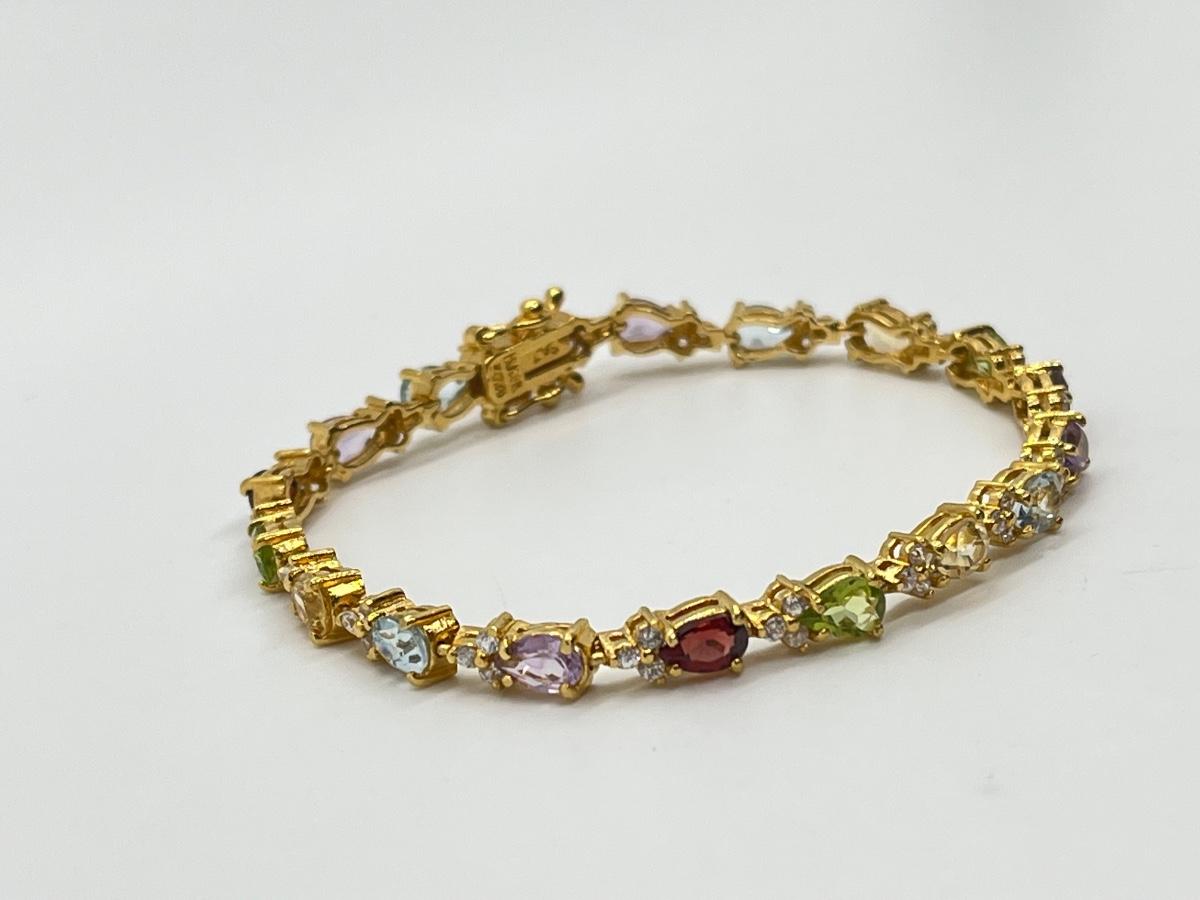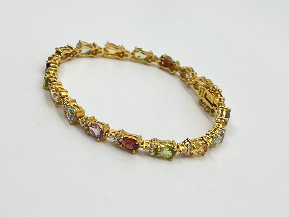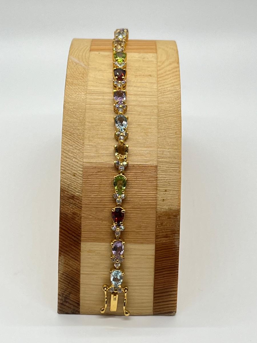 LOT 69: Garnet, Amethyst, Blue Topaz & Peridot Gold Vermeil Sterling Silver 7-1/4" Bracelet