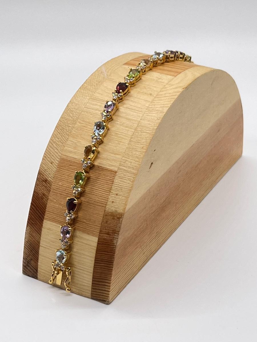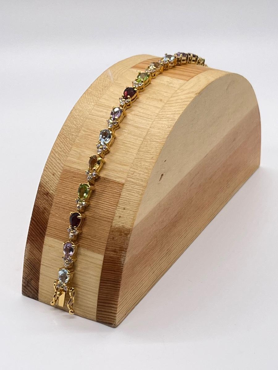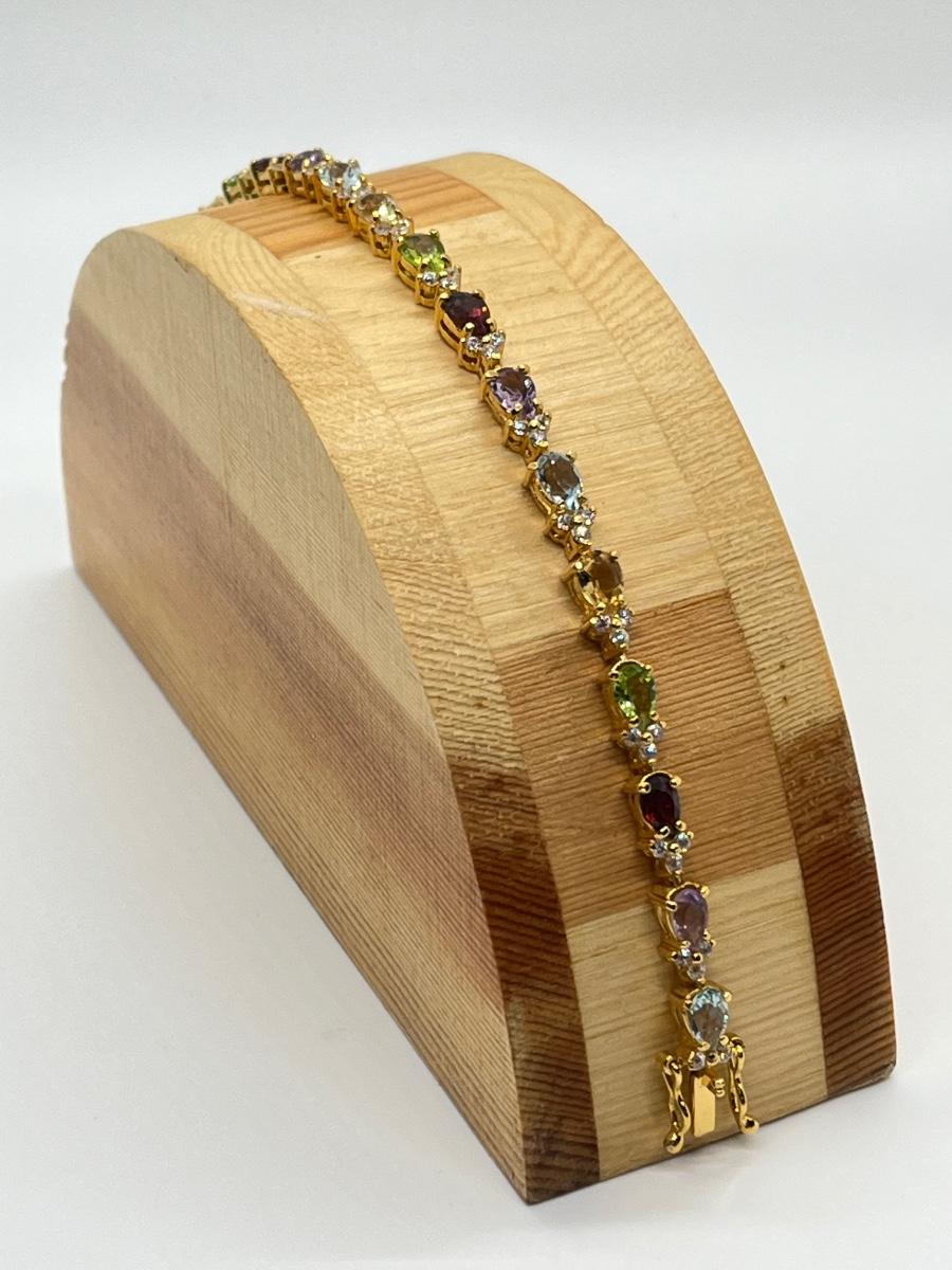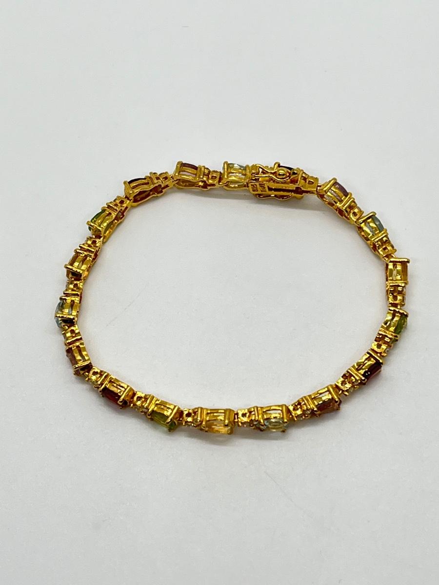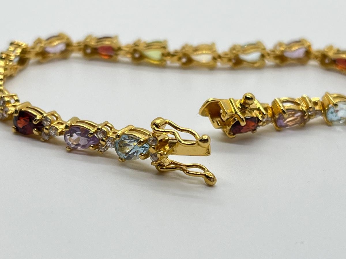 LOT 69: Garnet, Amethyst, Blue Topaz & Peridot Gold Vermeil Sterling Silver 7-1/4" Bracelet