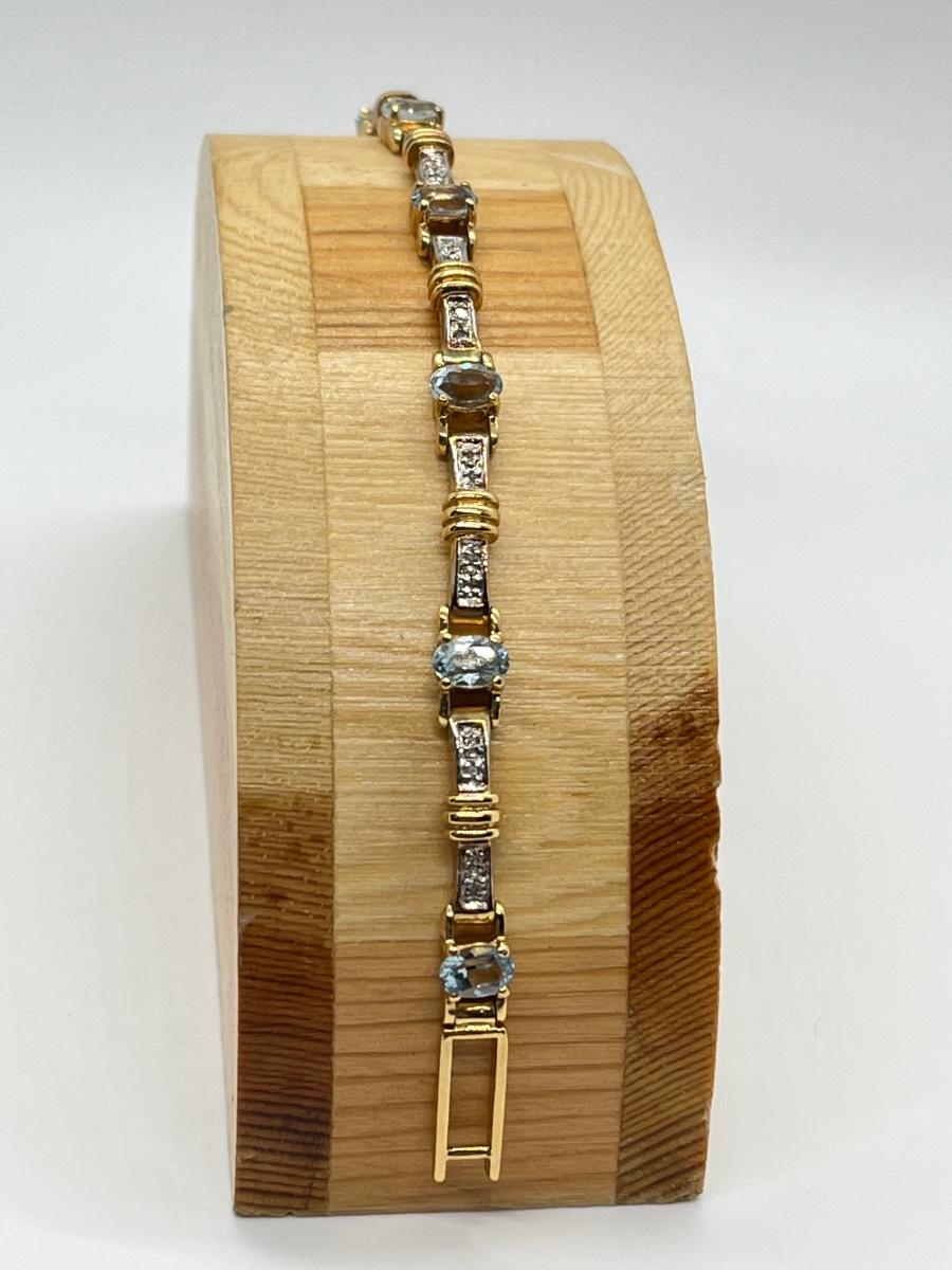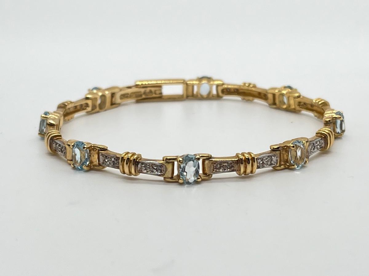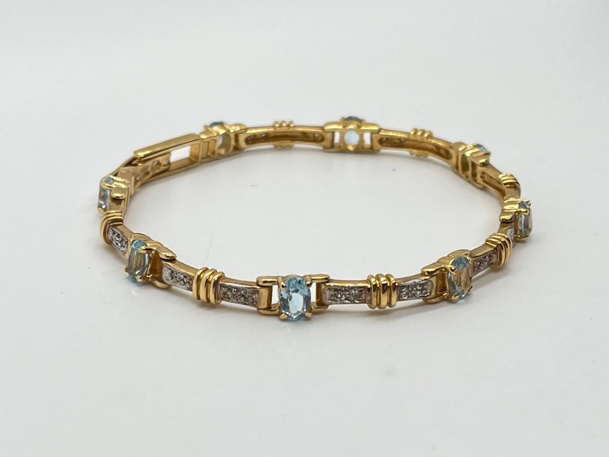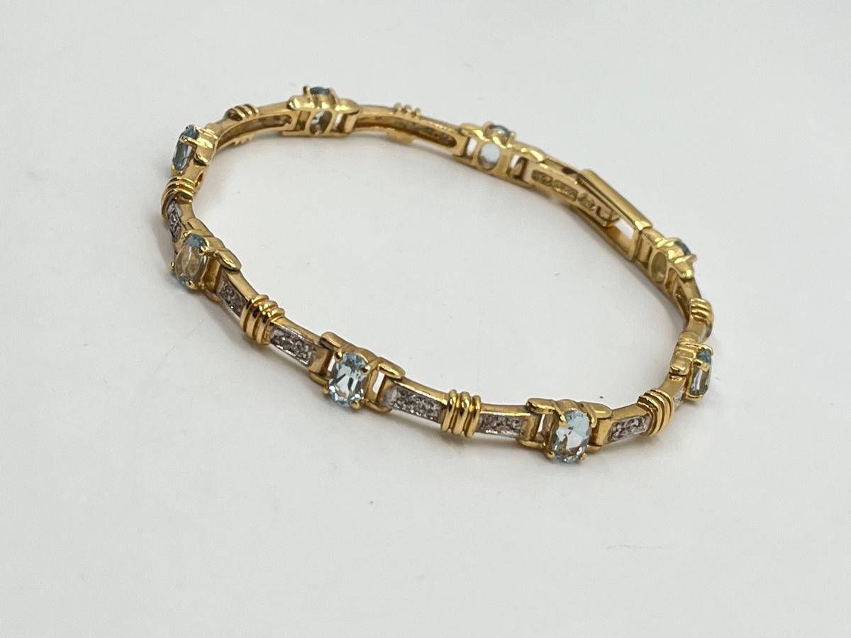 LOT 86: Diamond & Blue Topaz Gold Vermeil Sterling Silver Bracelet - 7-1/2"