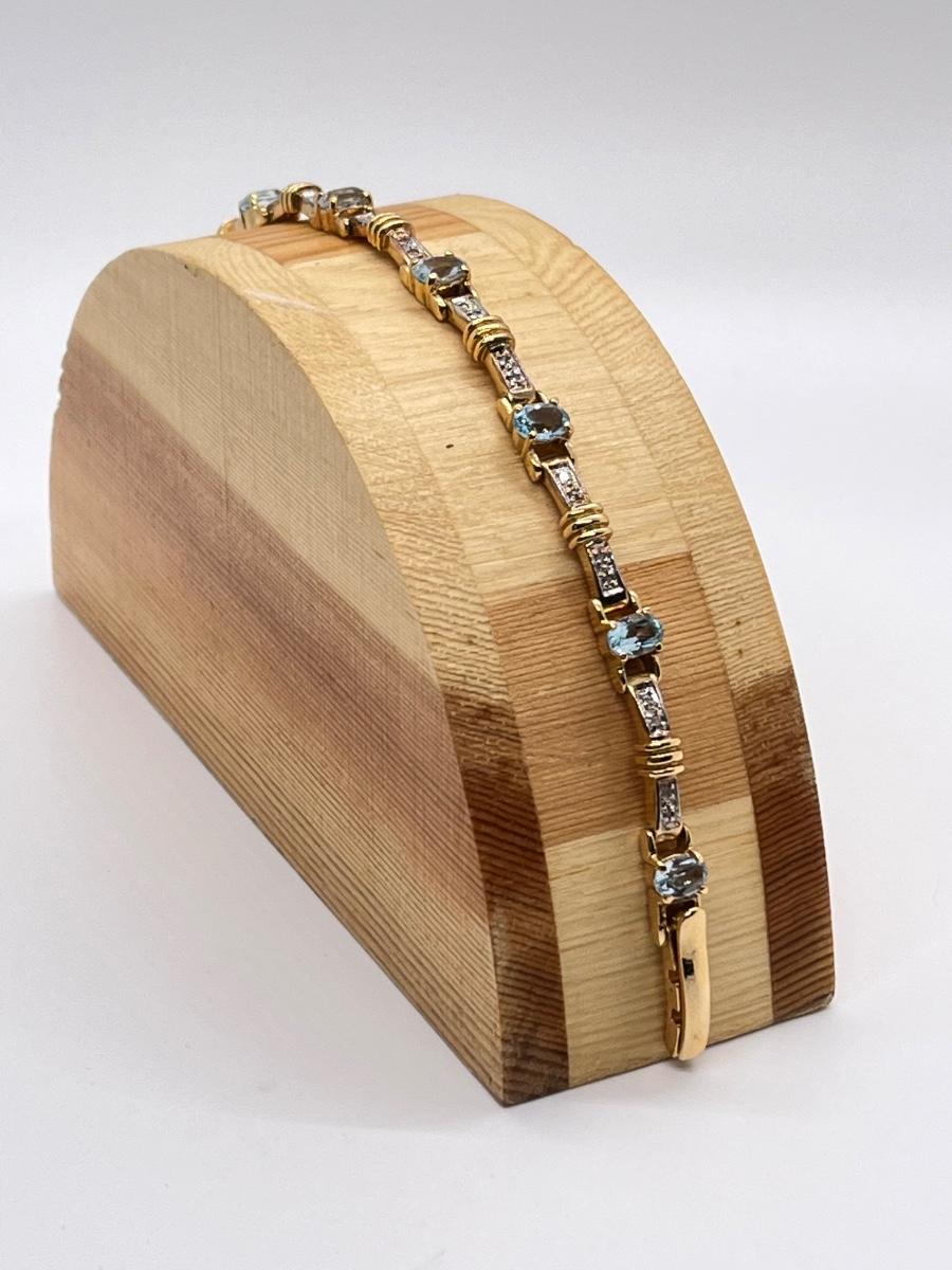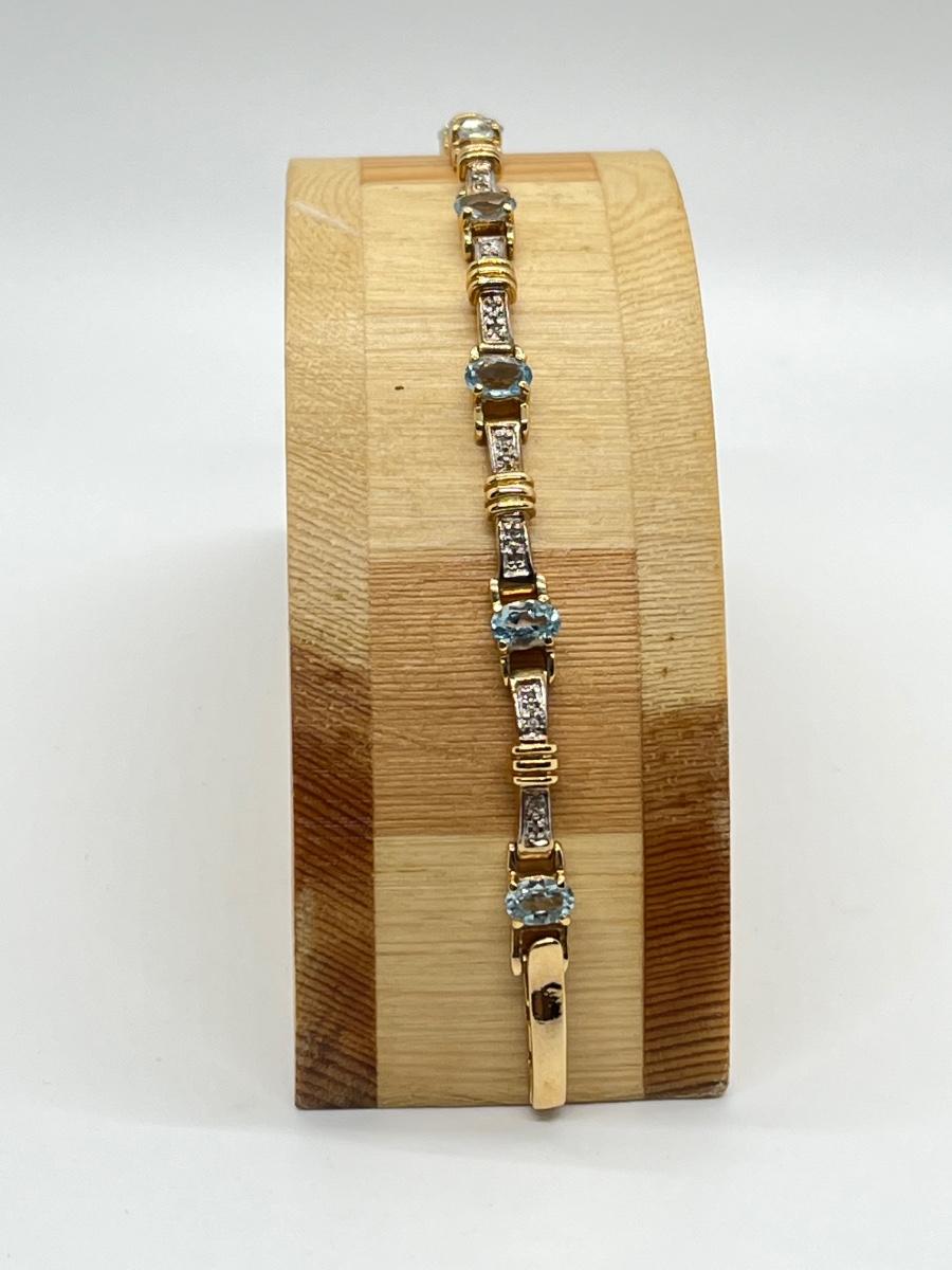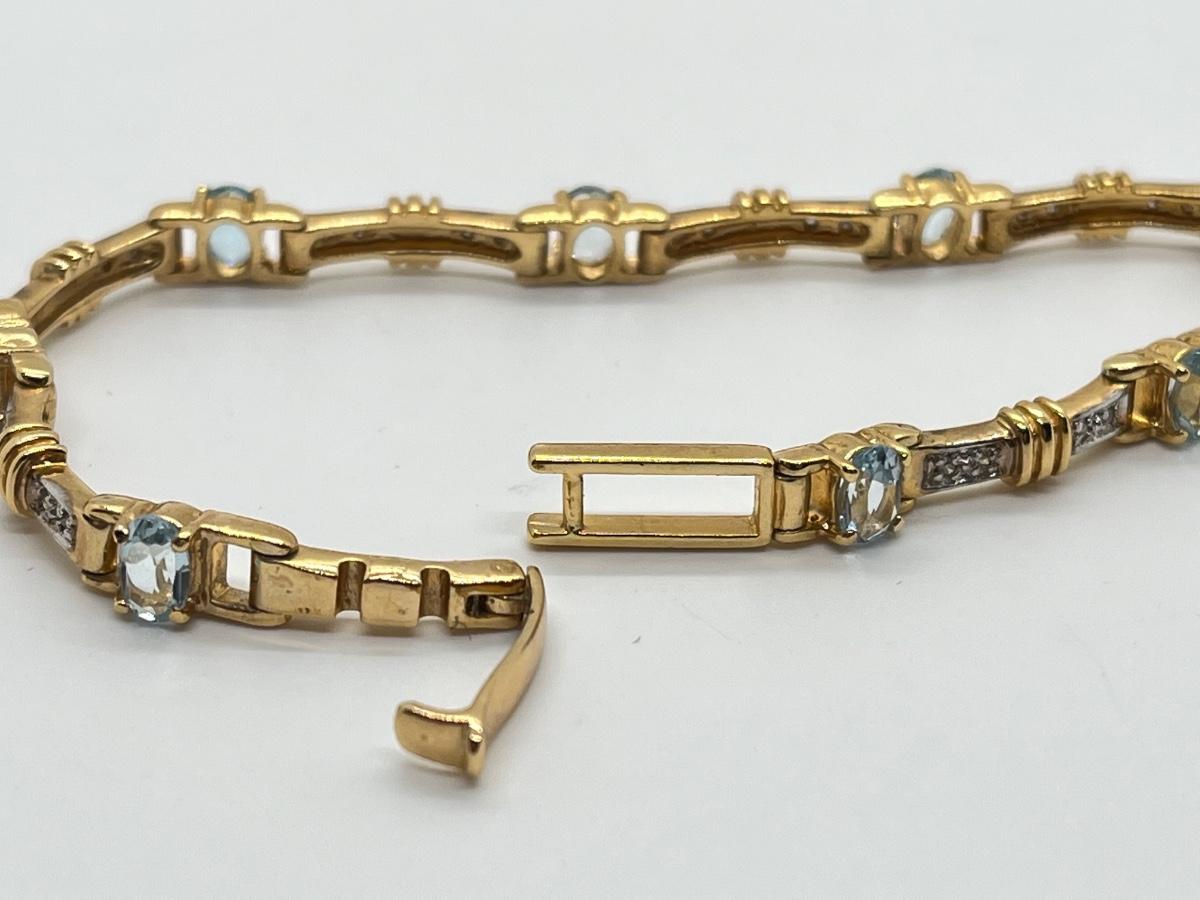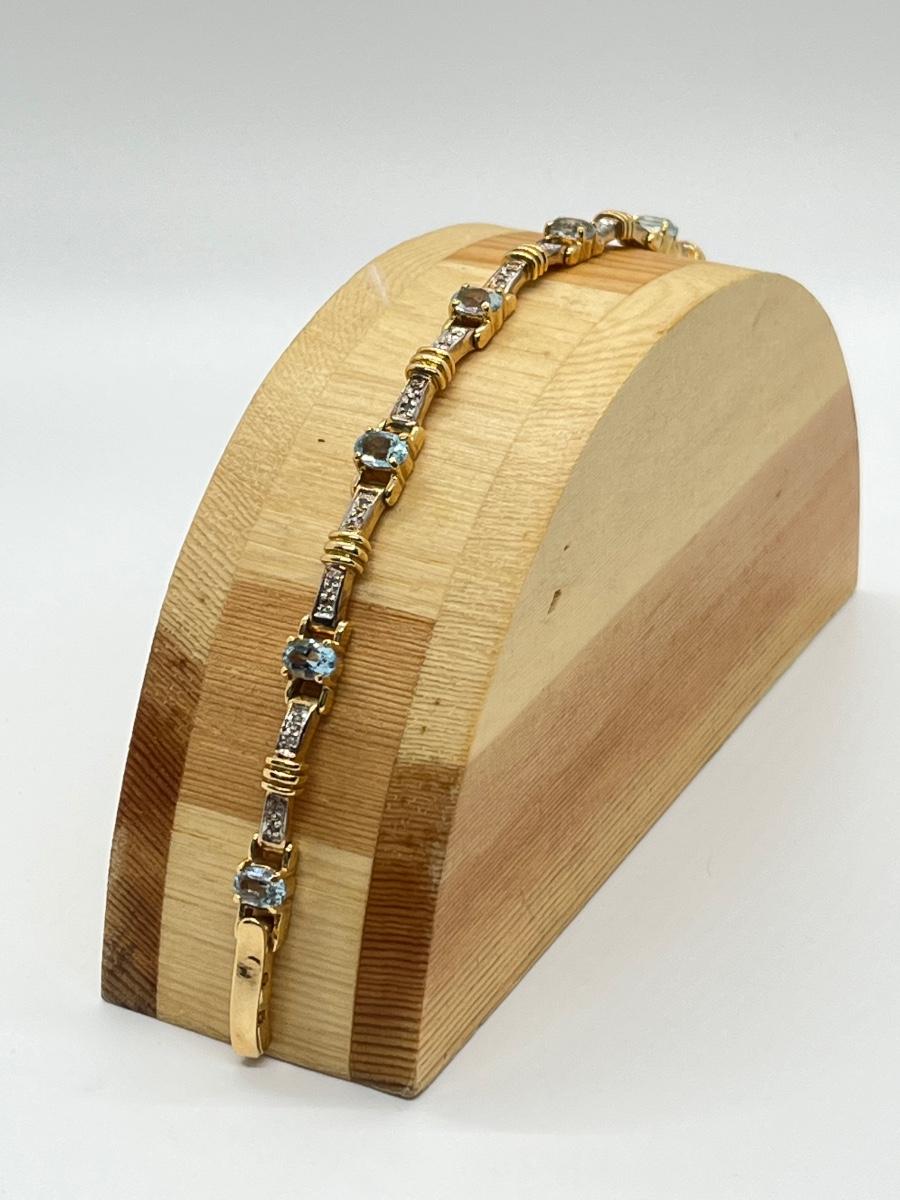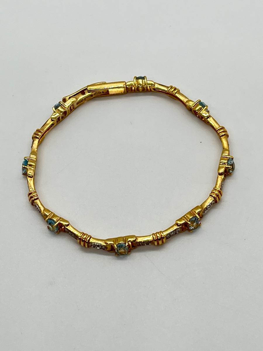 LOT 86: Diamond & Blue Topaz Gold Vermeil Sterling Silver Bracelet - 7-1/2"