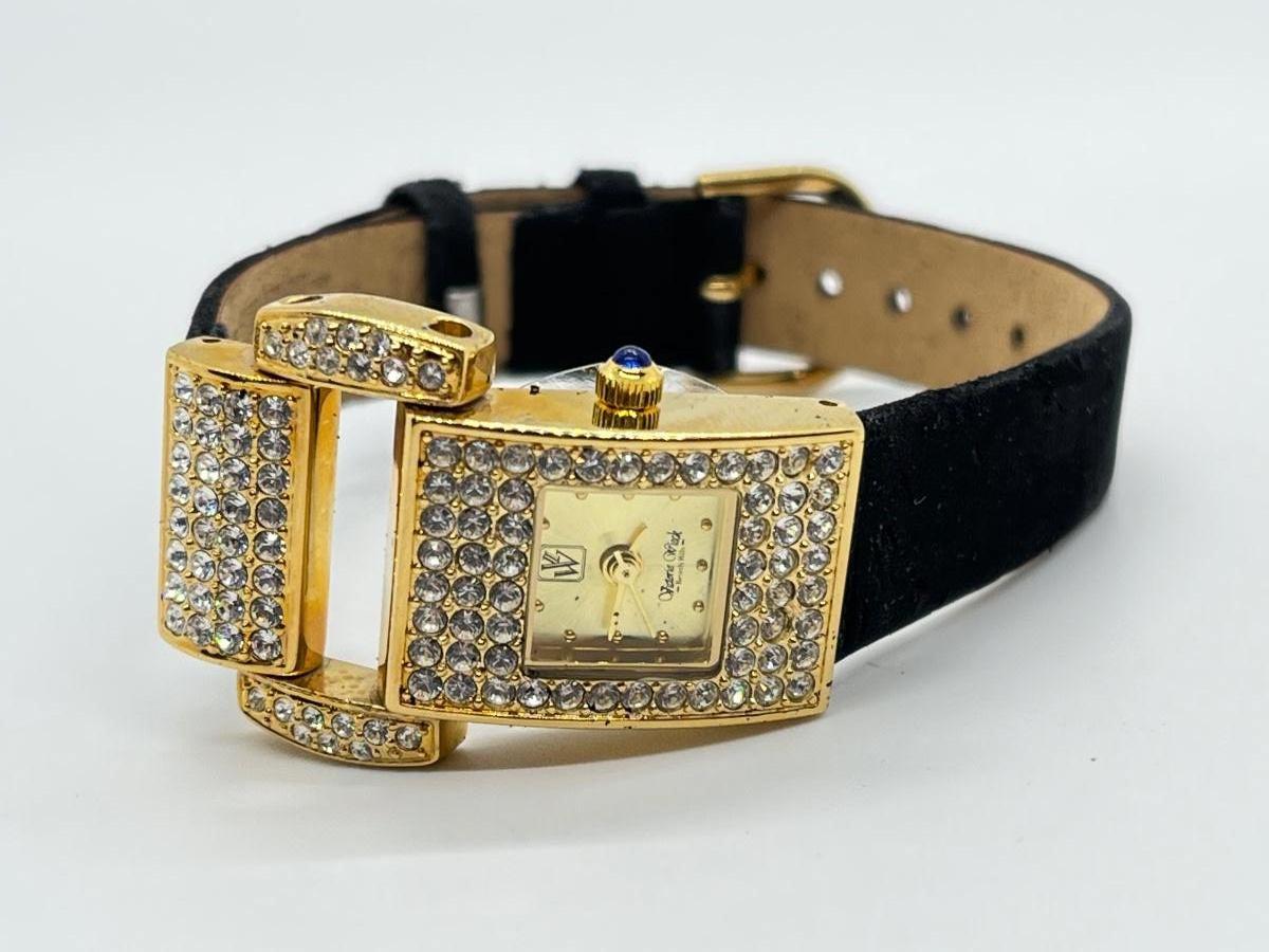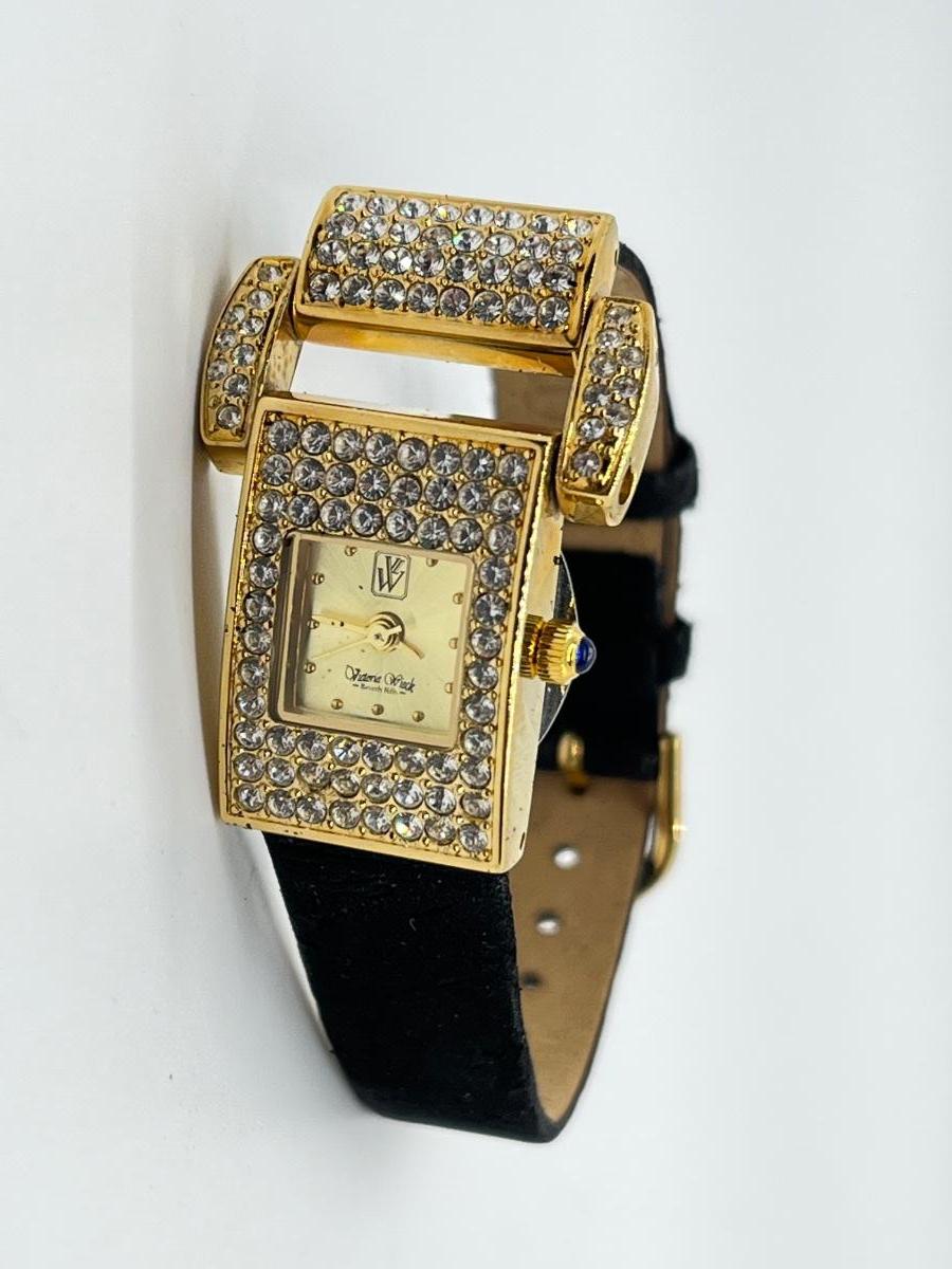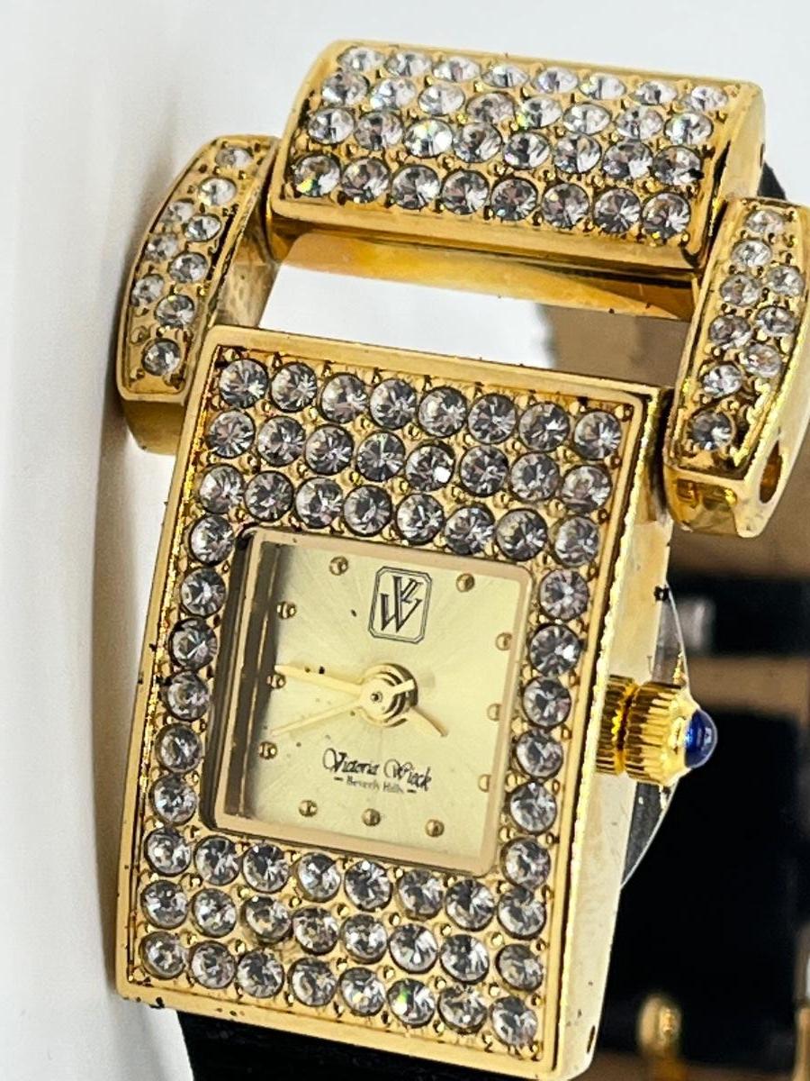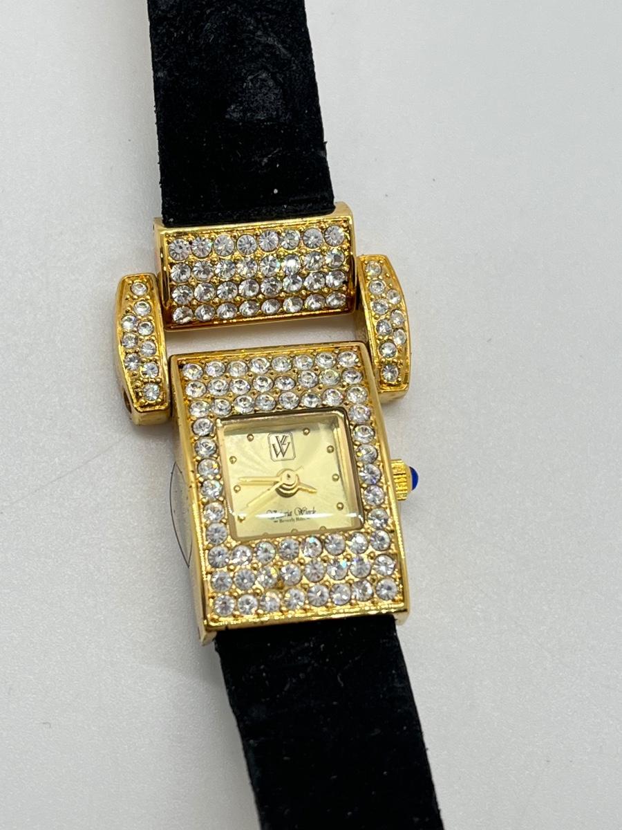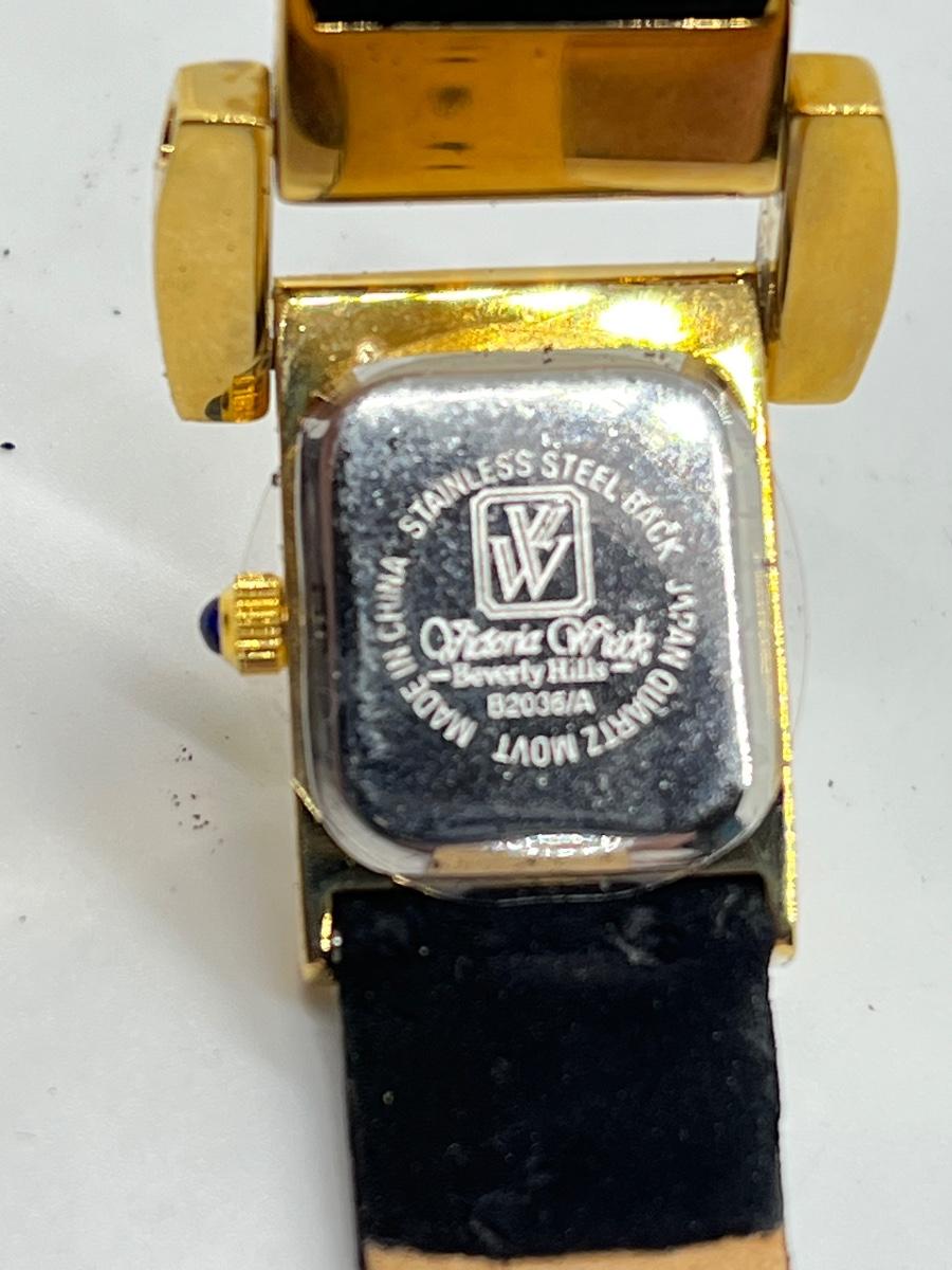LOT 91: Victoria Weick Beverly Hills Fashion Watch with Velvetized Leather Band (band shedding - needs battery)