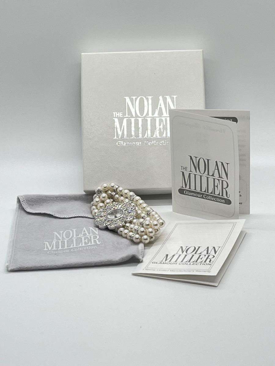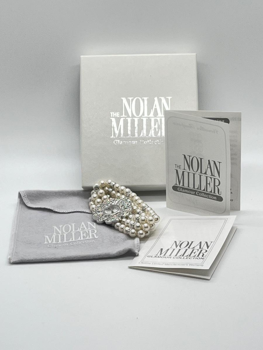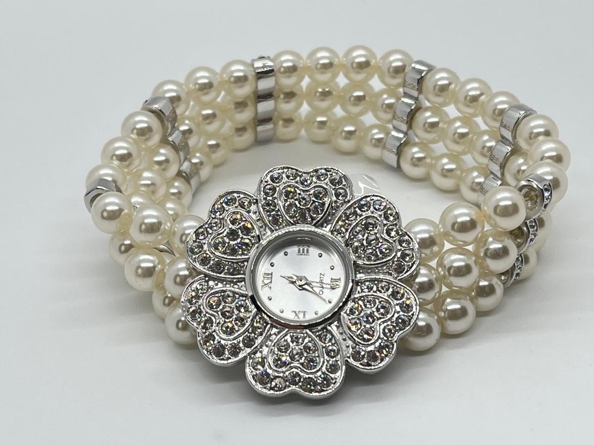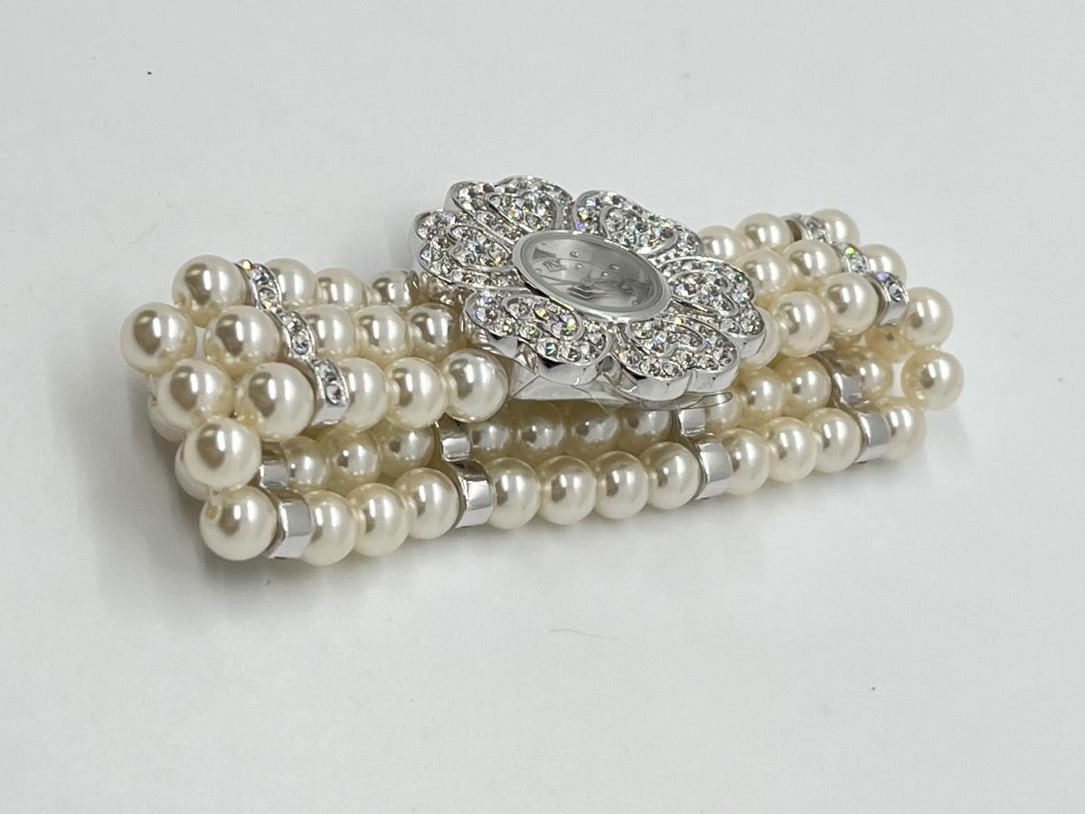 LOT 95: Nolan Miller Faux Pearl Stretch Bracelet Watch in Original Box (needs battery)