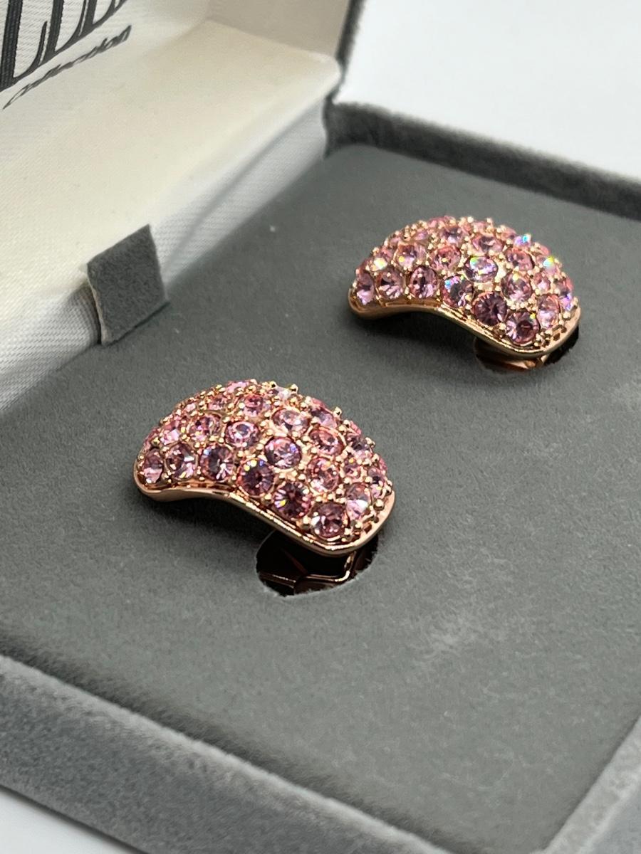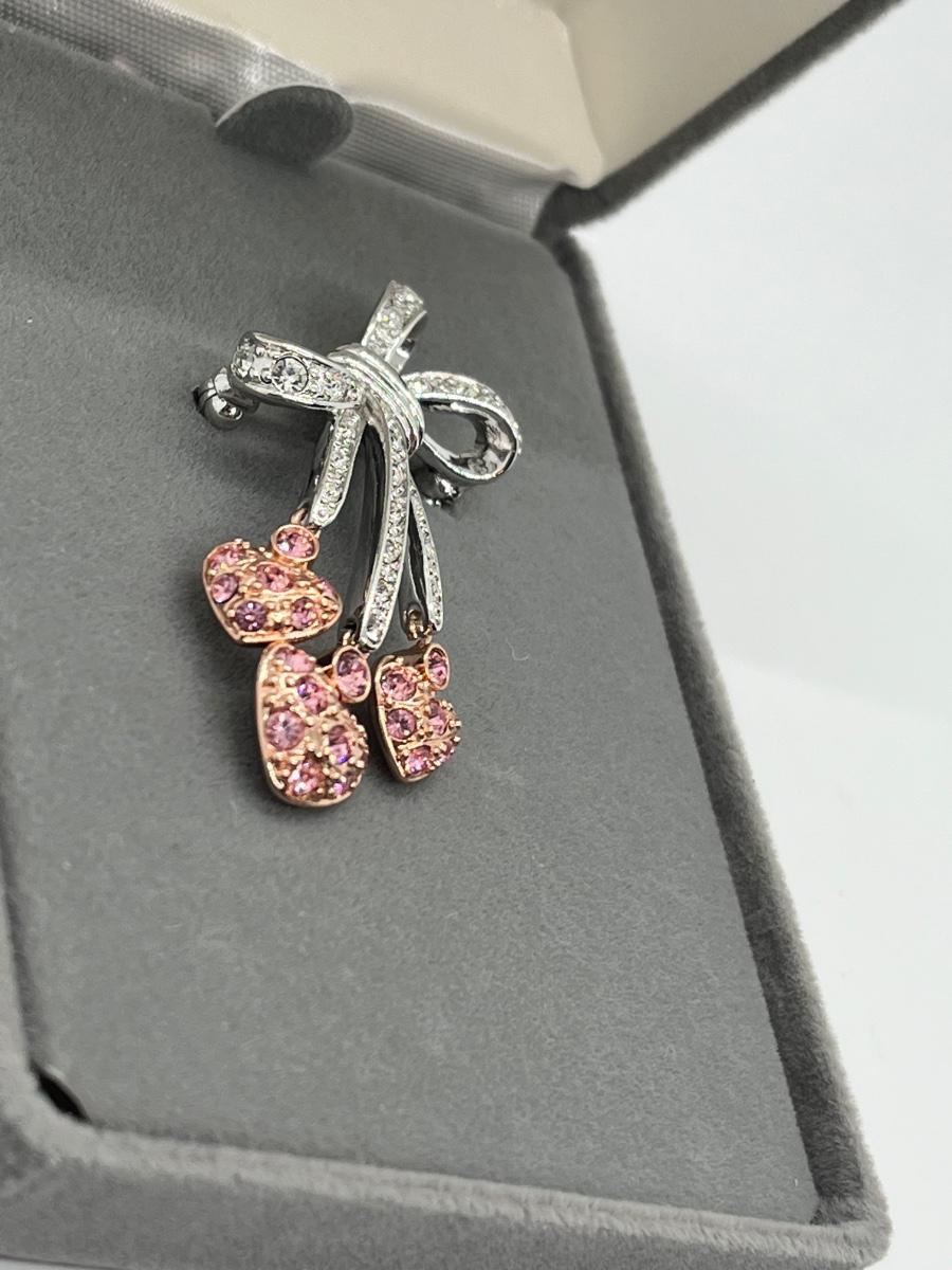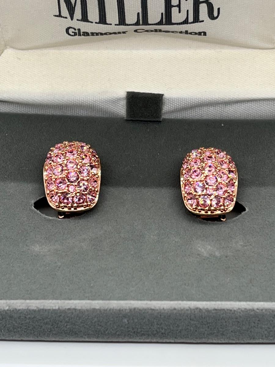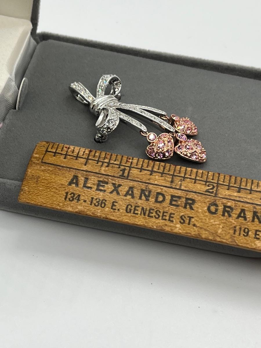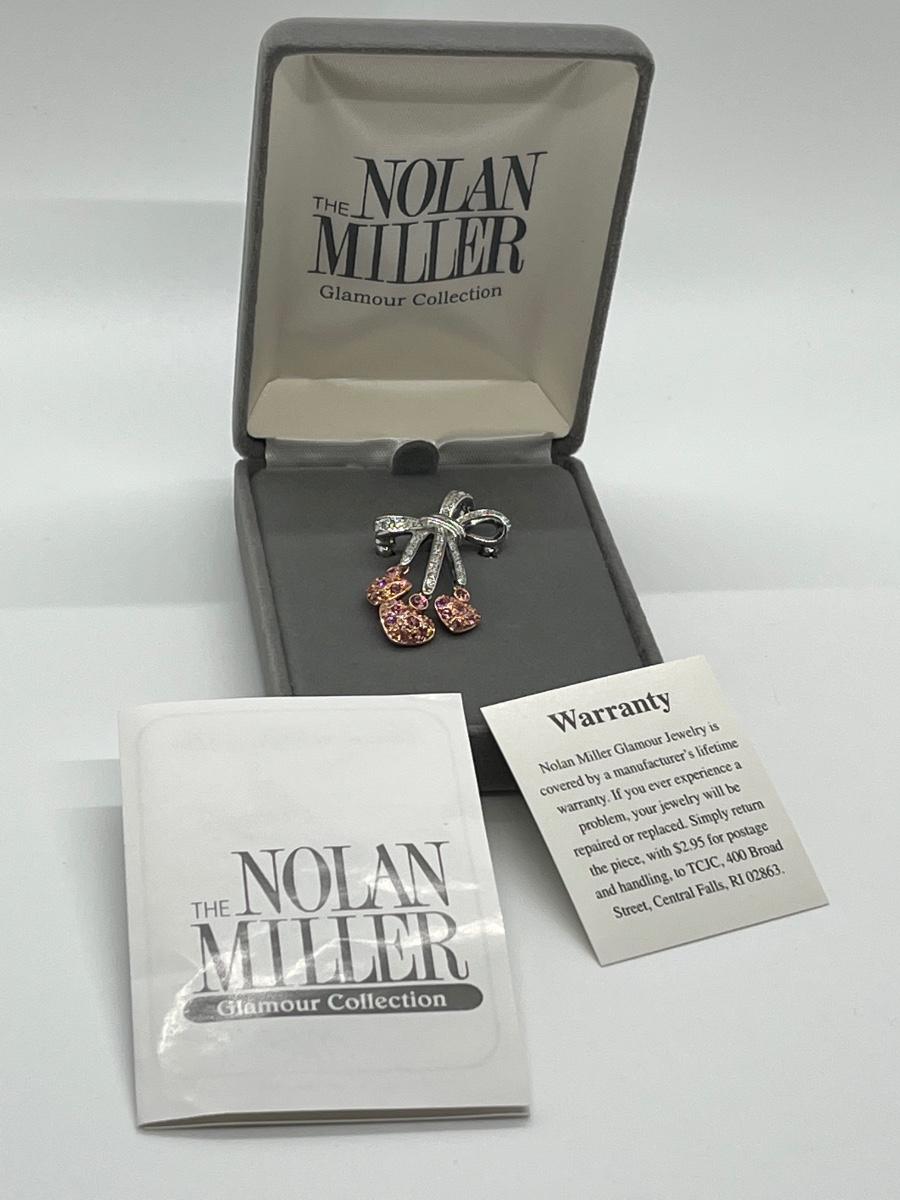 LOT 98: Nolan Miller Pink Pave Clip-On Demi-Hoop Earrings & Charming Bow Pin in Original Boxes
