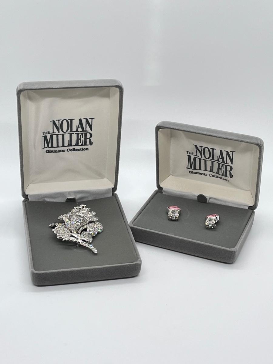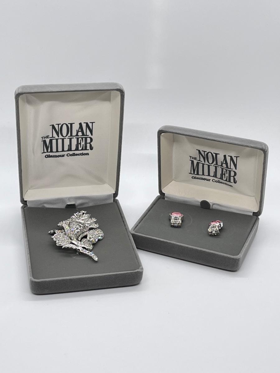 LOT 99: Nolan Miller Ava Rose Pin & Firenze Pierced Earrings in Boxes