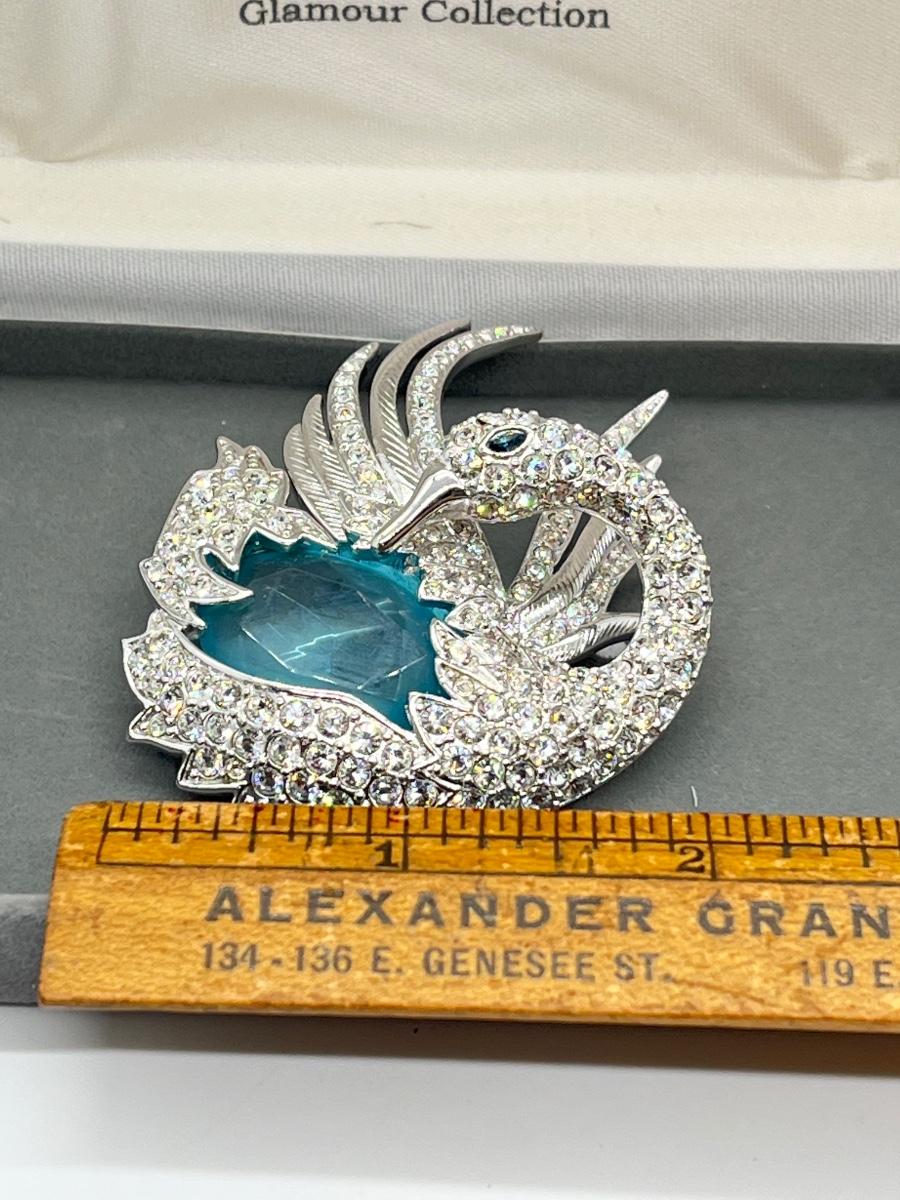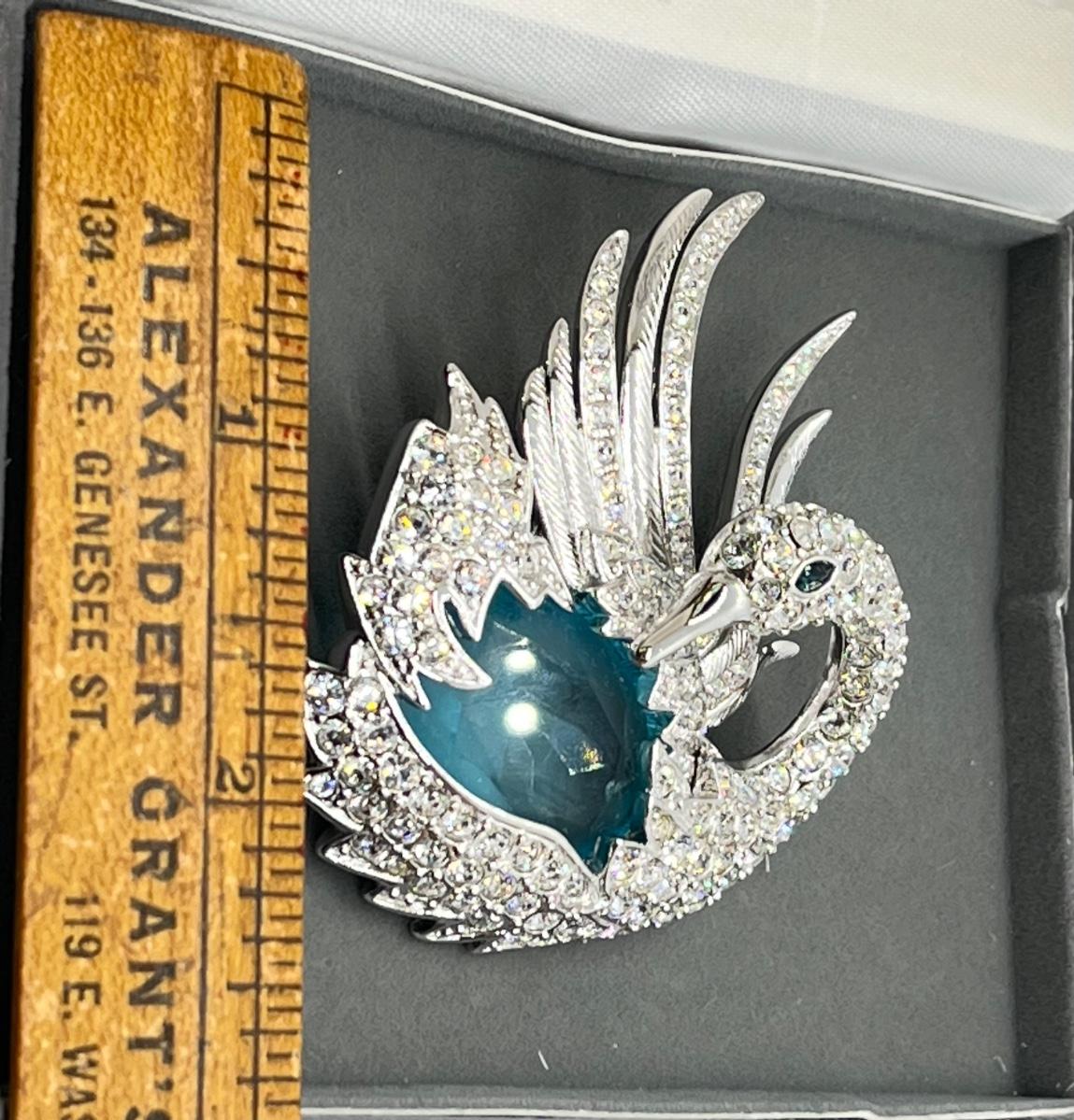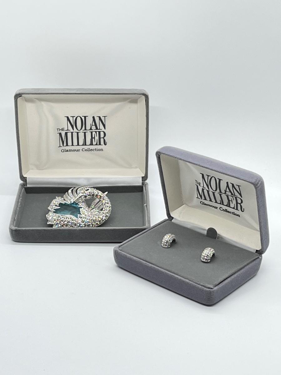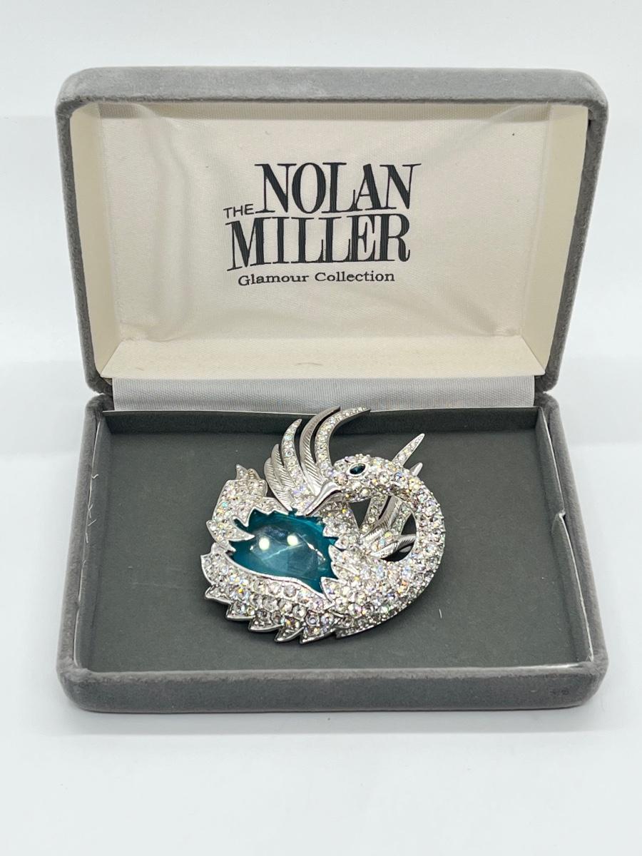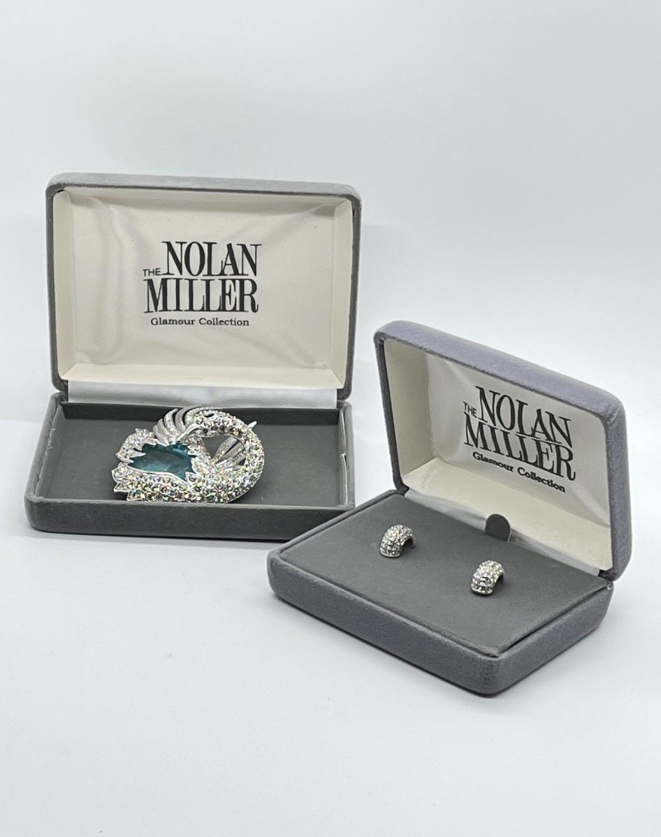 LOT 101: Nolan Miller Superb Swan Pin & Pave Hoop Pierced Earrings in Boxes
