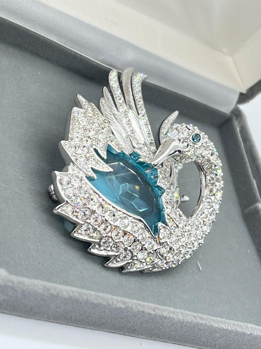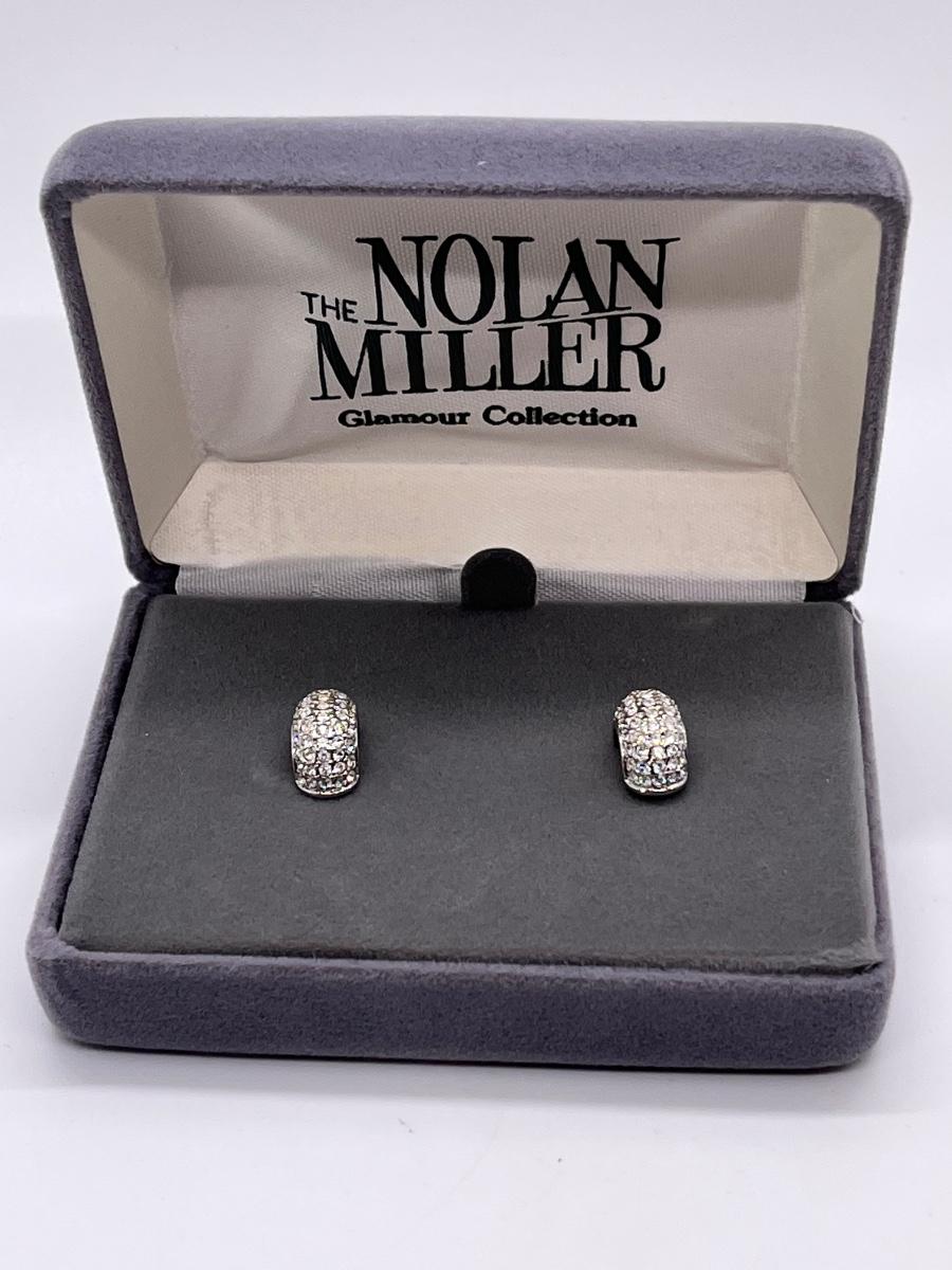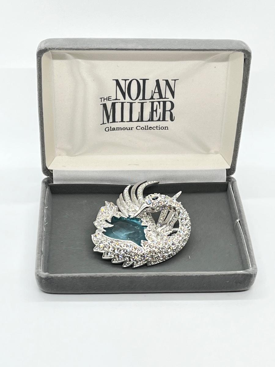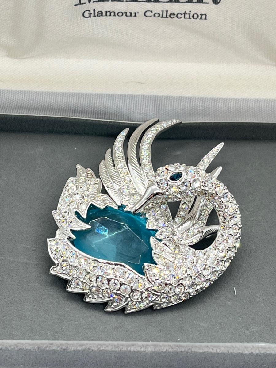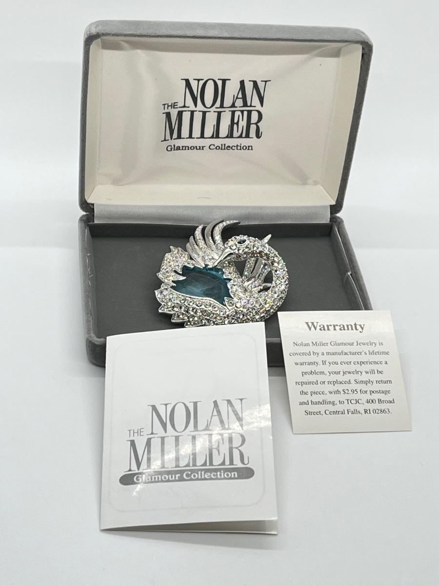 LOT 101: Nolan Miller Superb Swan Pin & Pave Hoop Pierced Earrings in Boxes