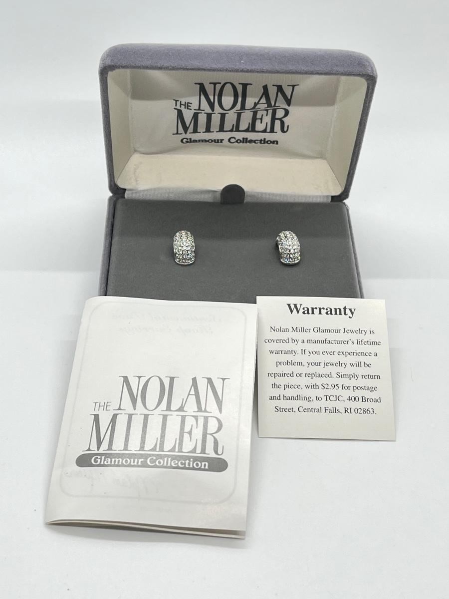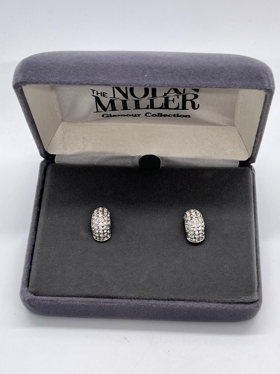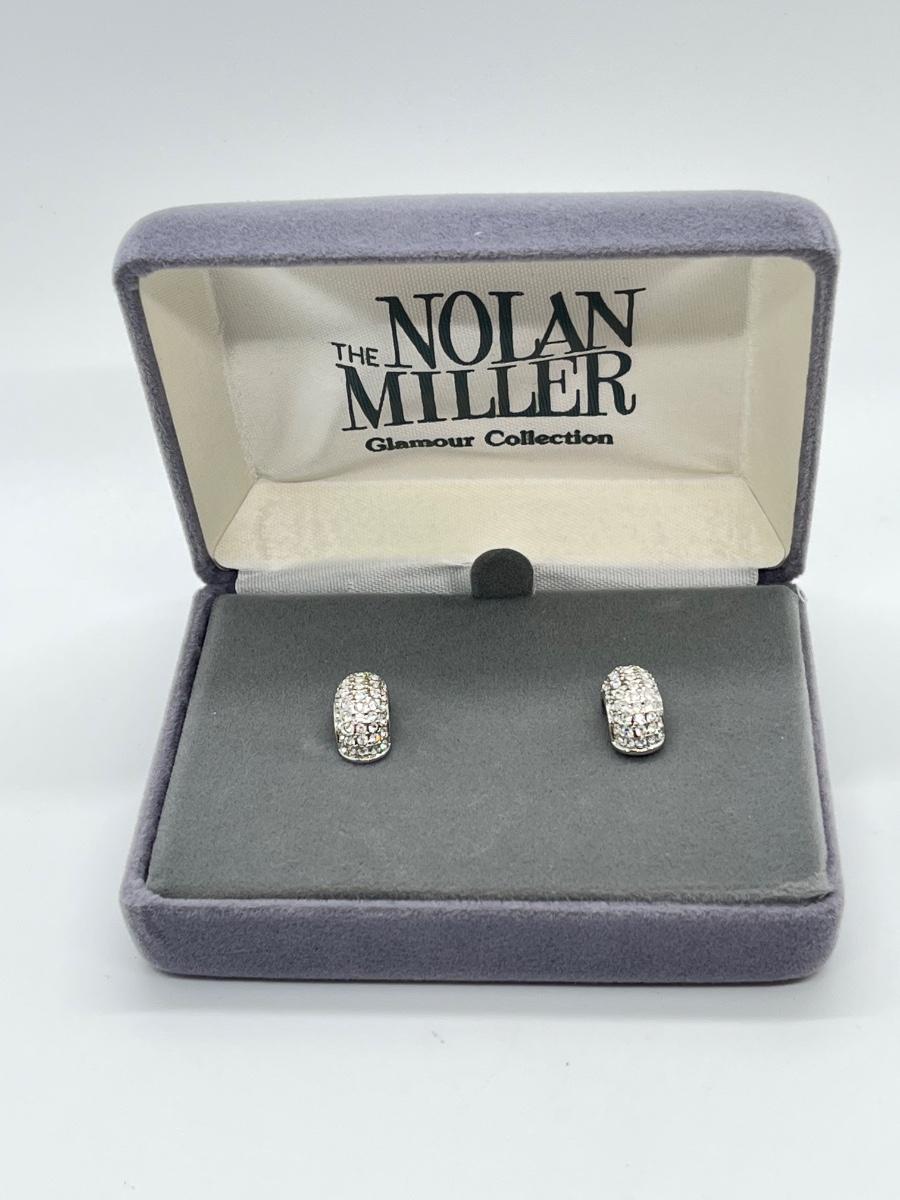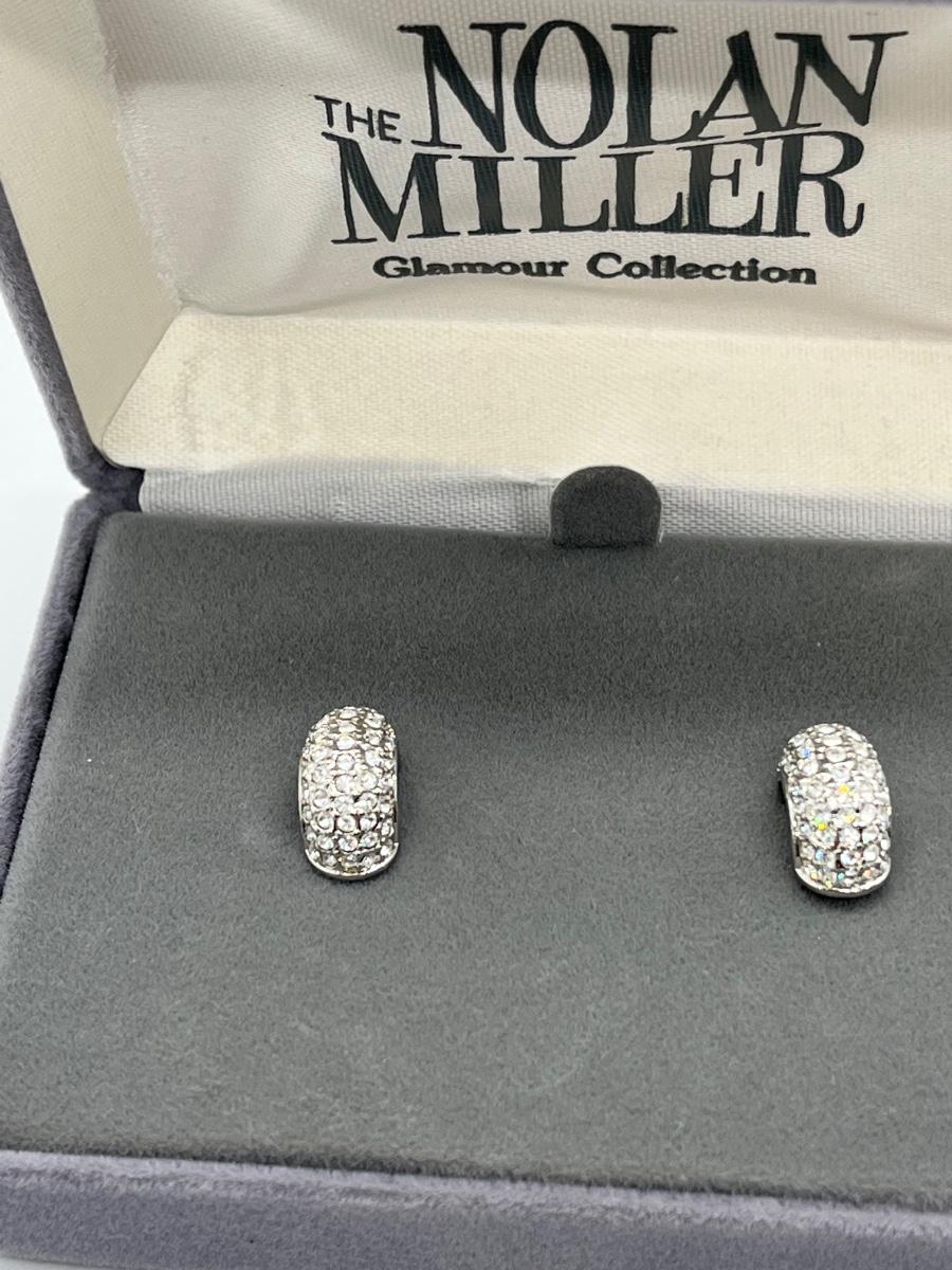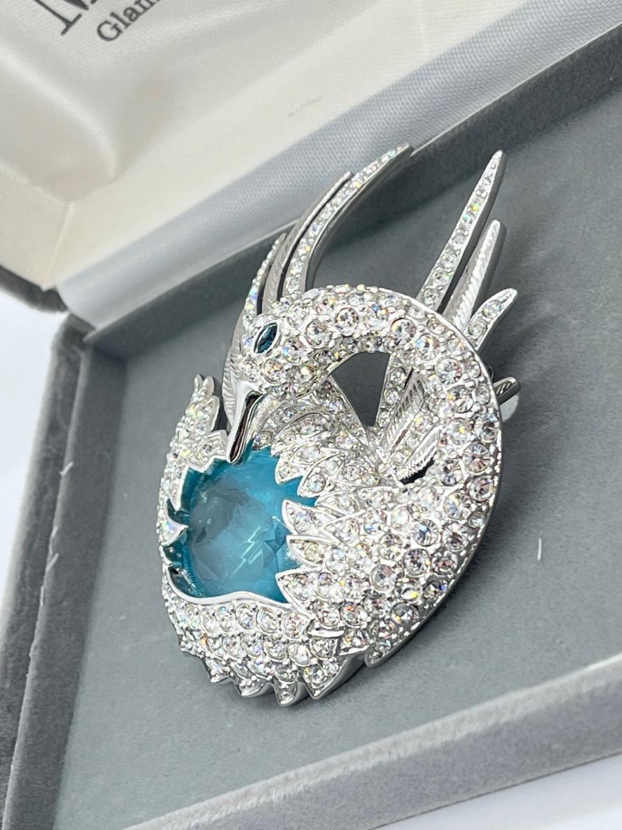 LOT 101: Nolan Miller Superb Swan Pin & Pave Hoop Pierced Earrings in Boxes