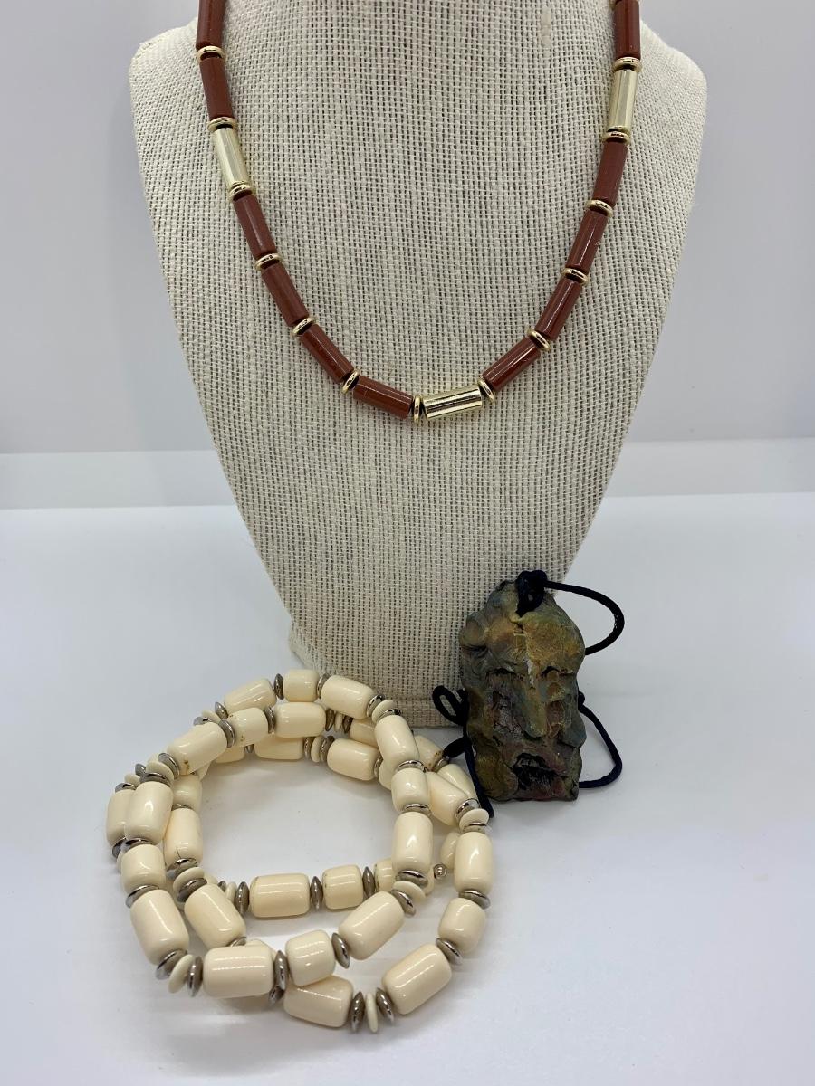 LOTJ2R: Vintage Beaded Necklaces & Handcrafted Pendant on Satin Cord