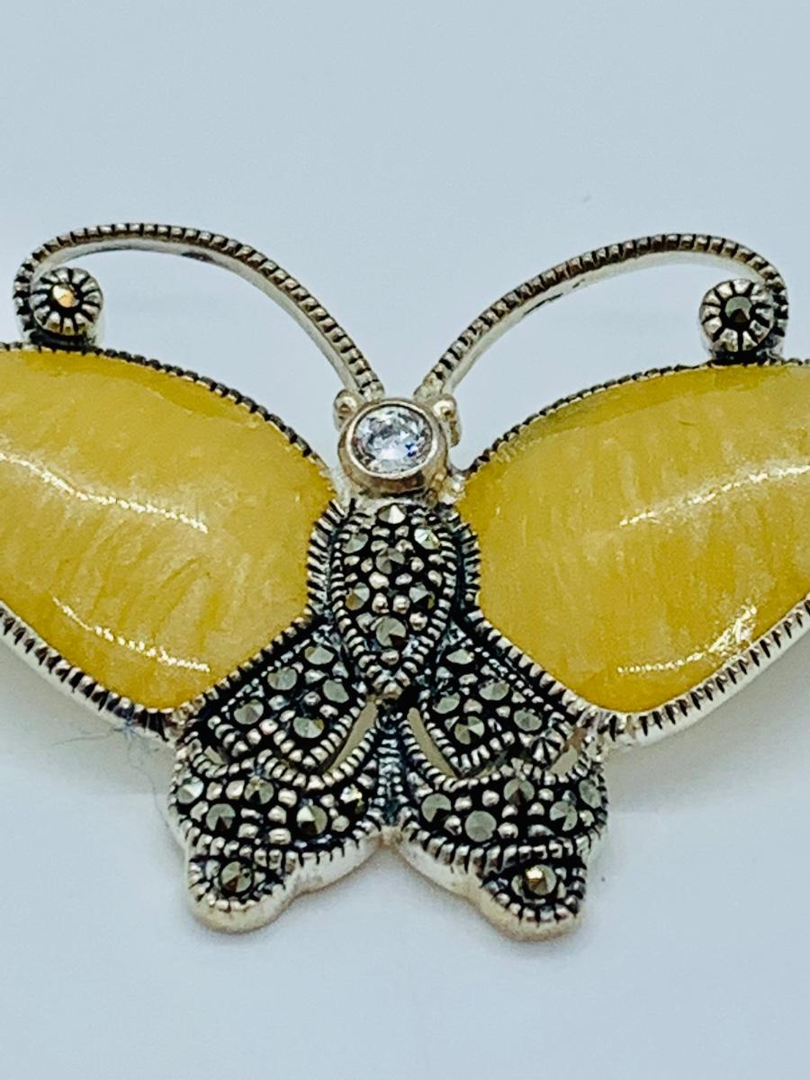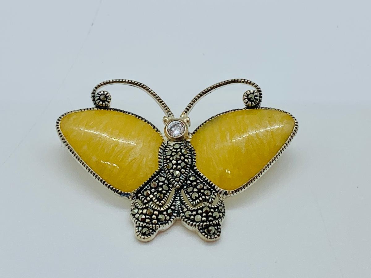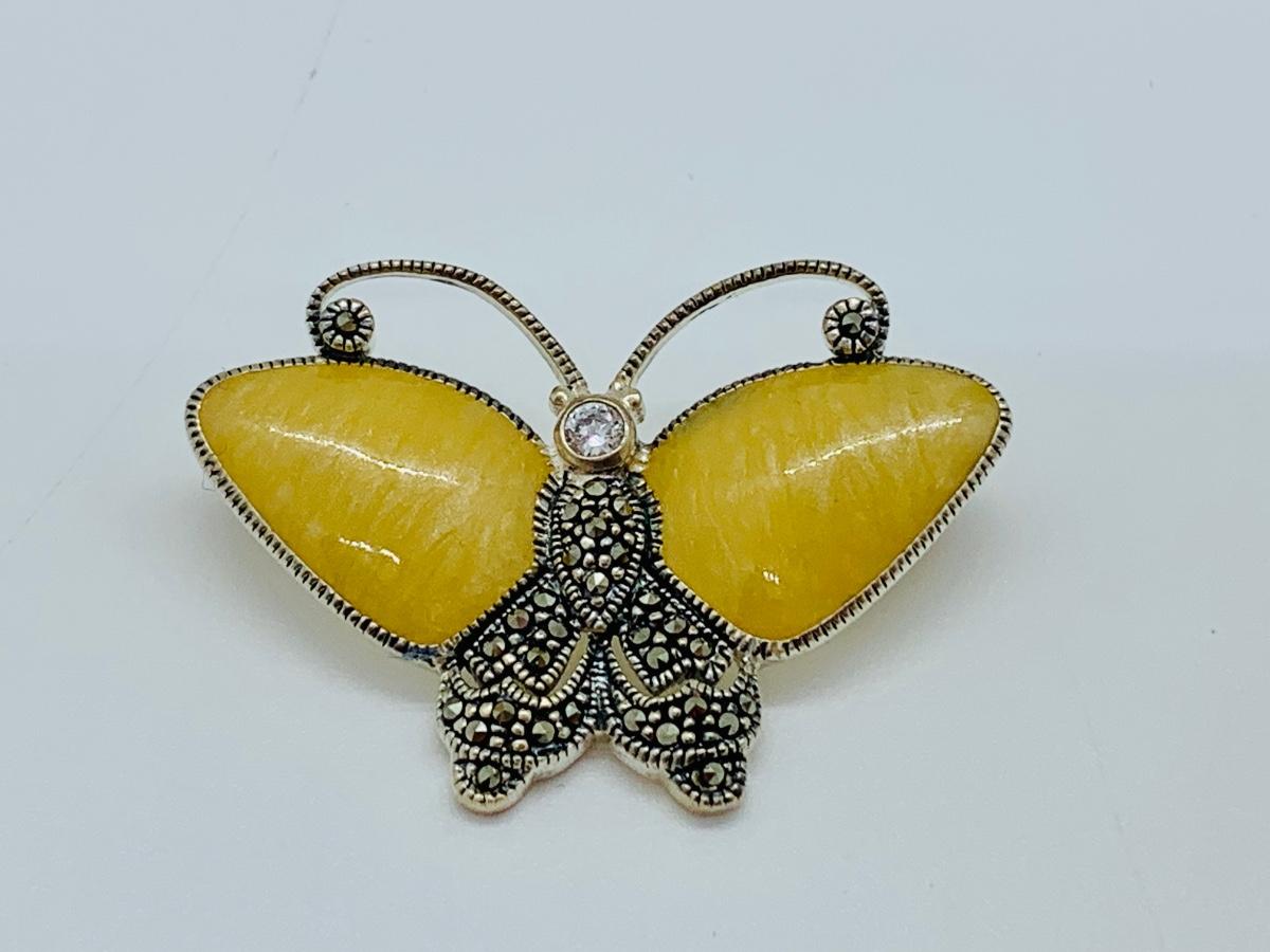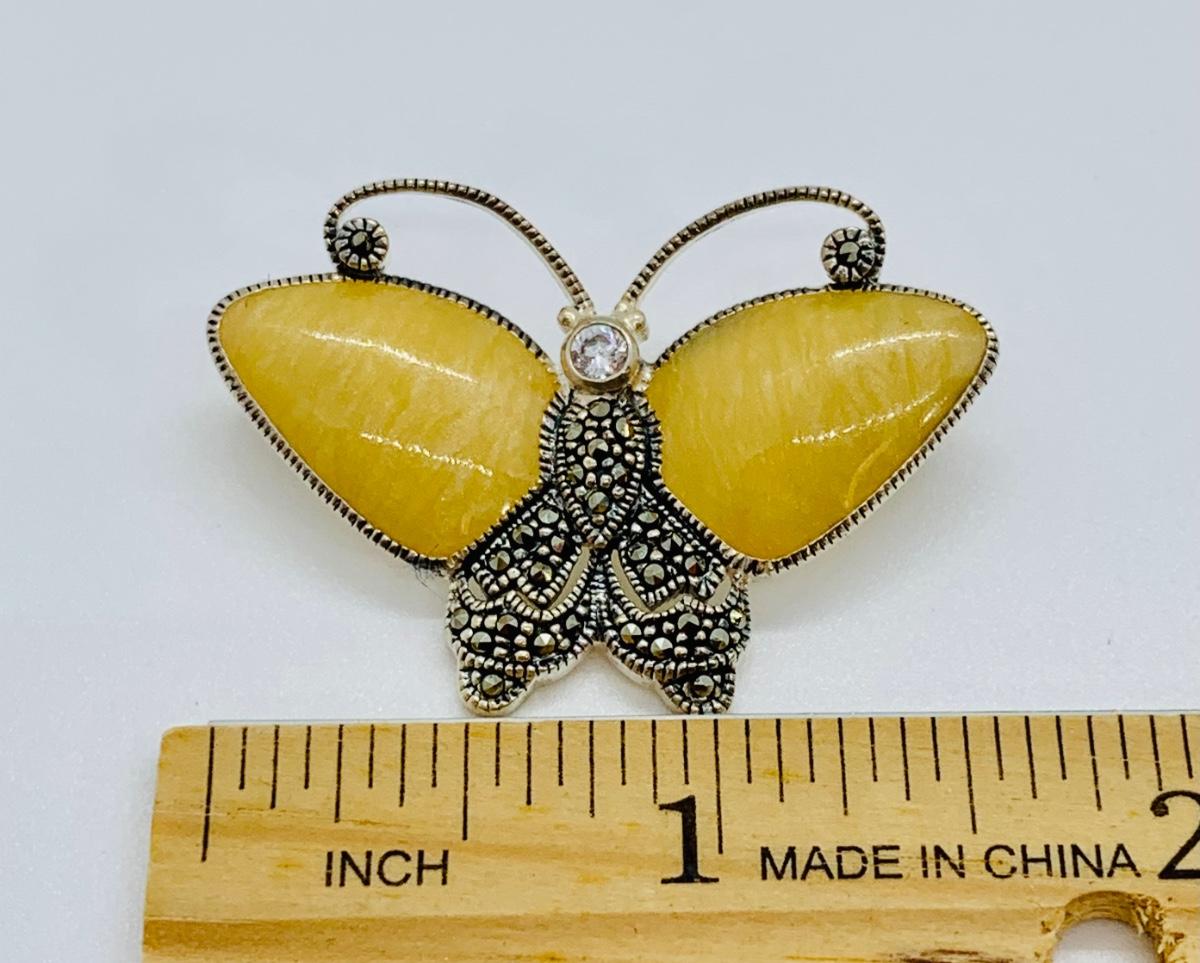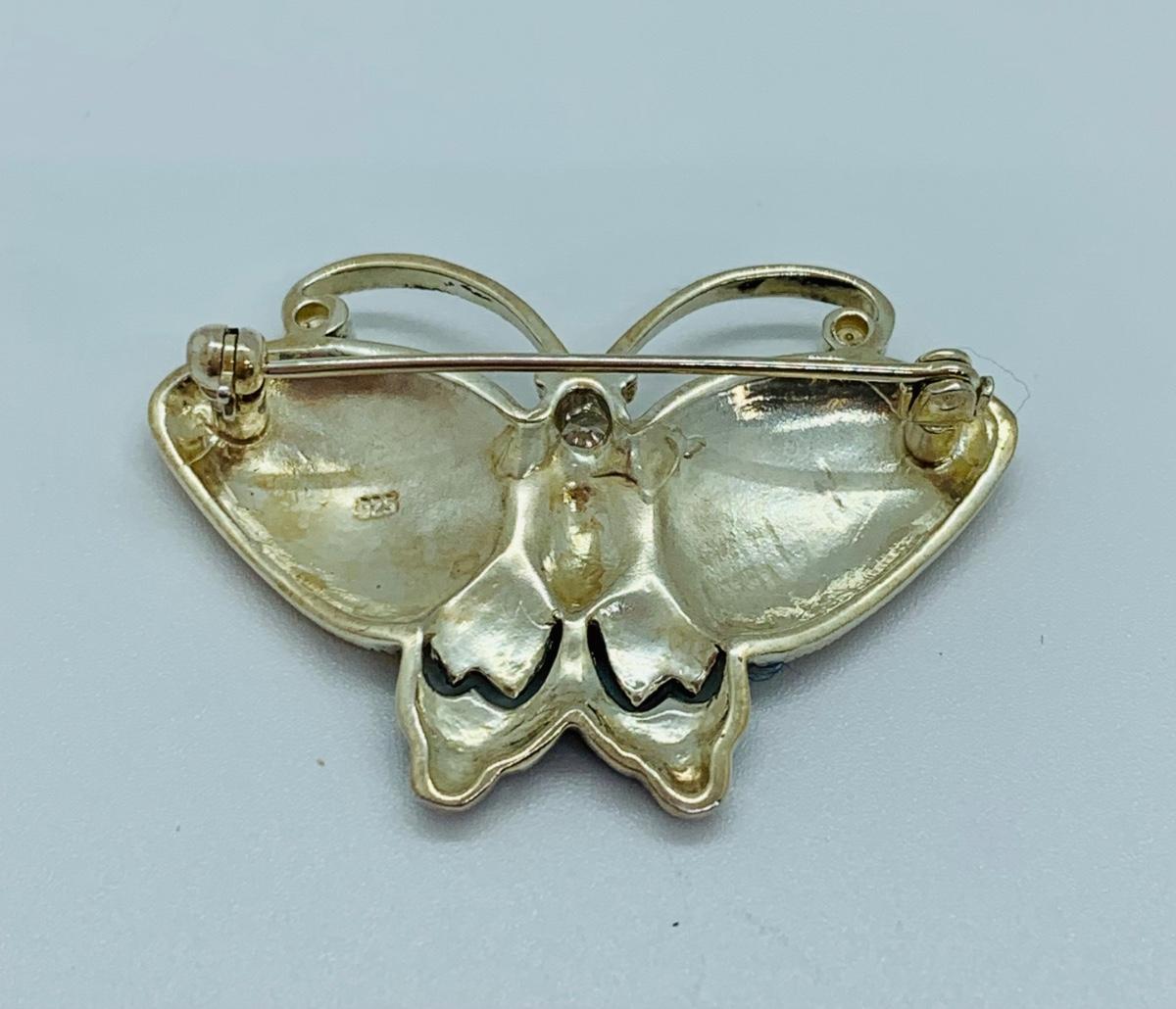 LOT 9R: Vintage Enamel & Marquisate Sterling Silver Butterfly Pin