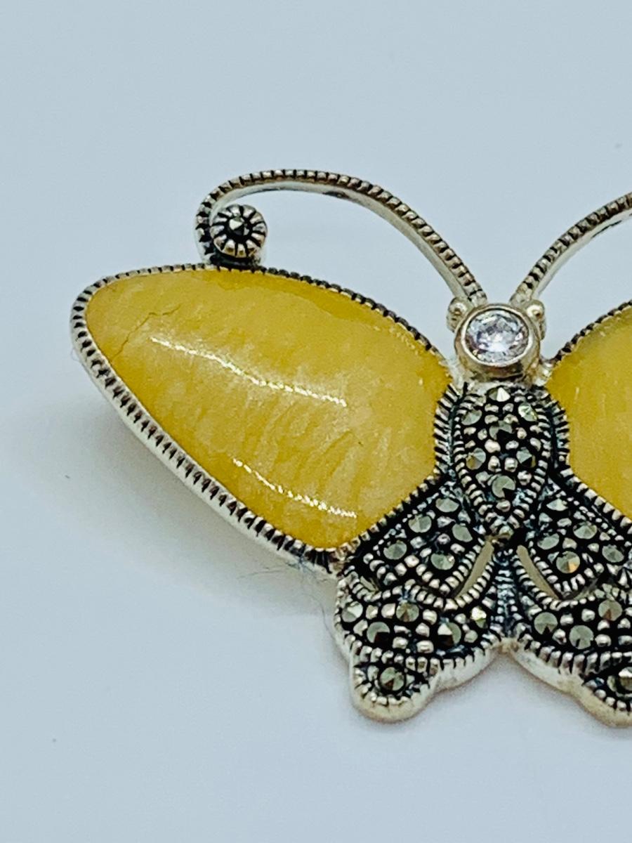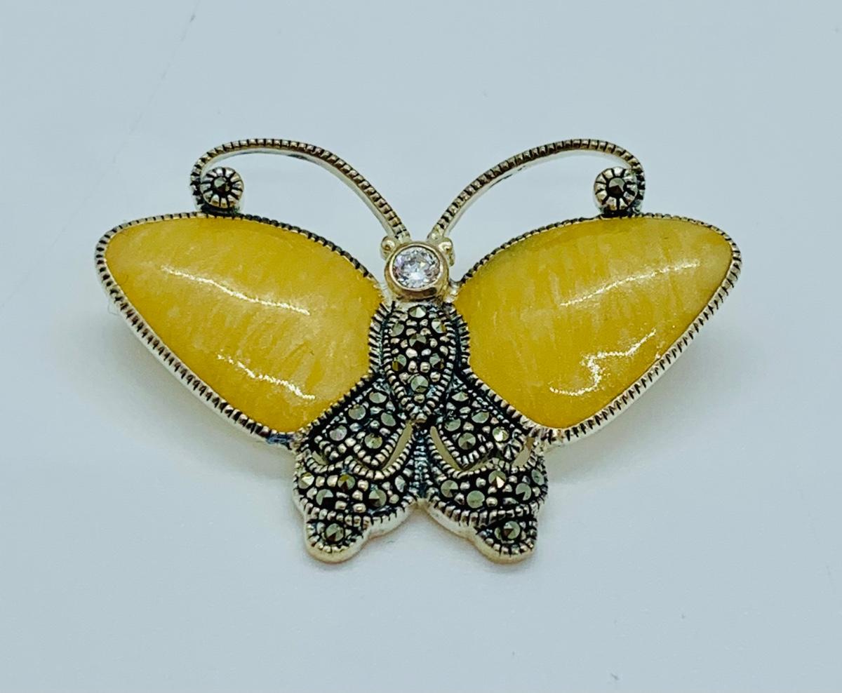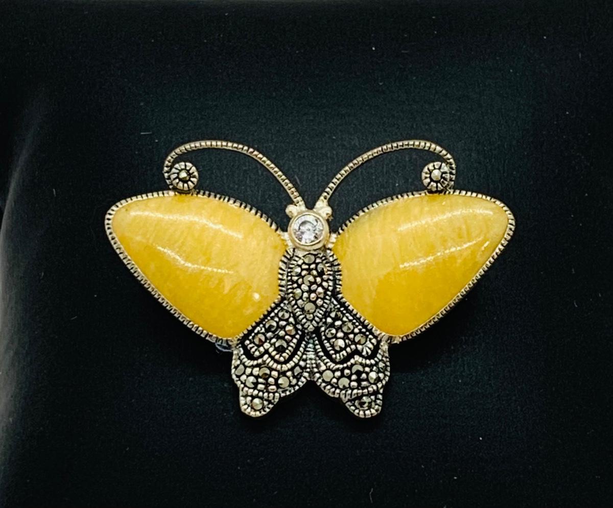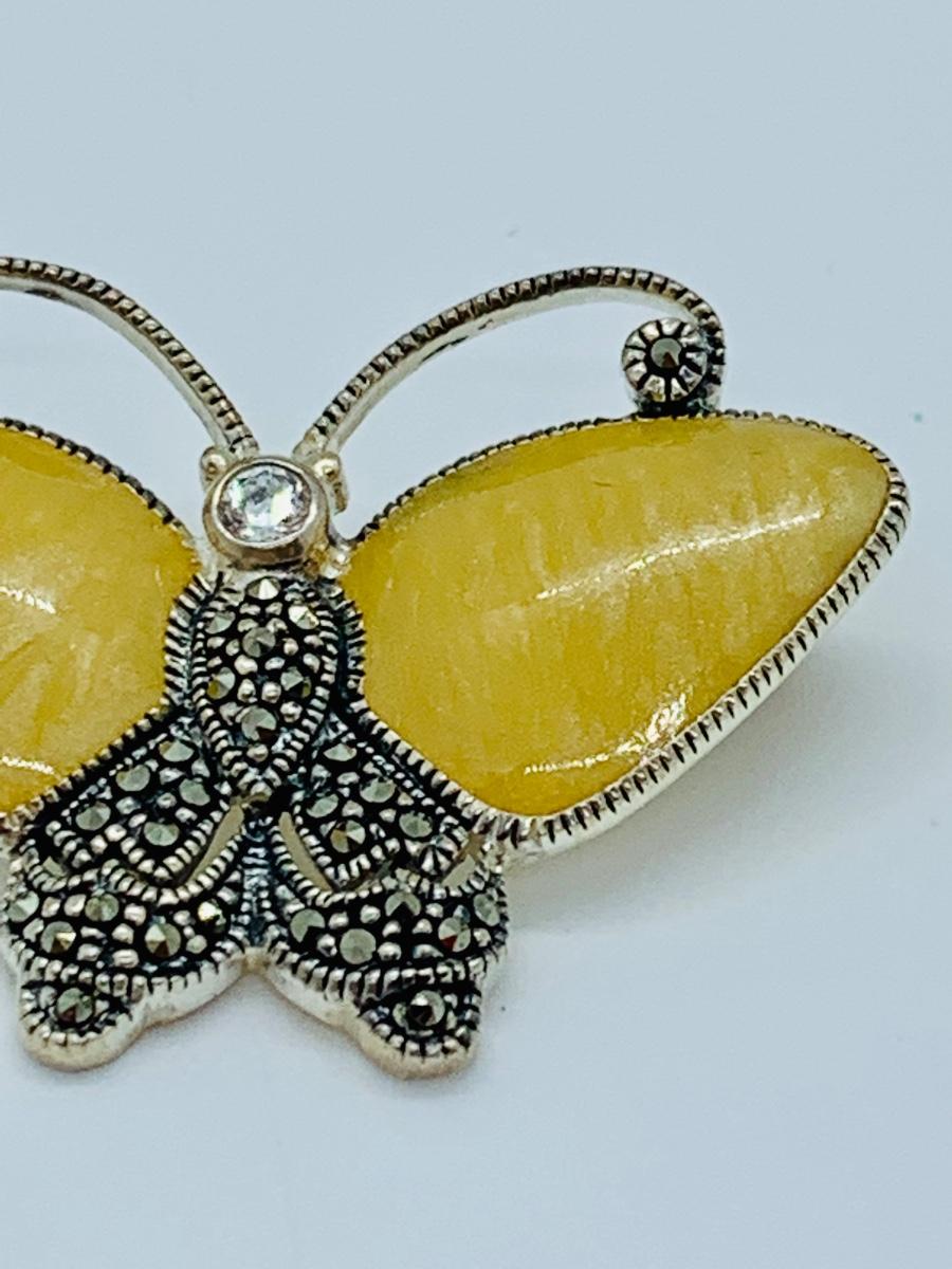 LOT 9R: Vintage Enamel & Marquisate Sterling Silver Butterfly Pin