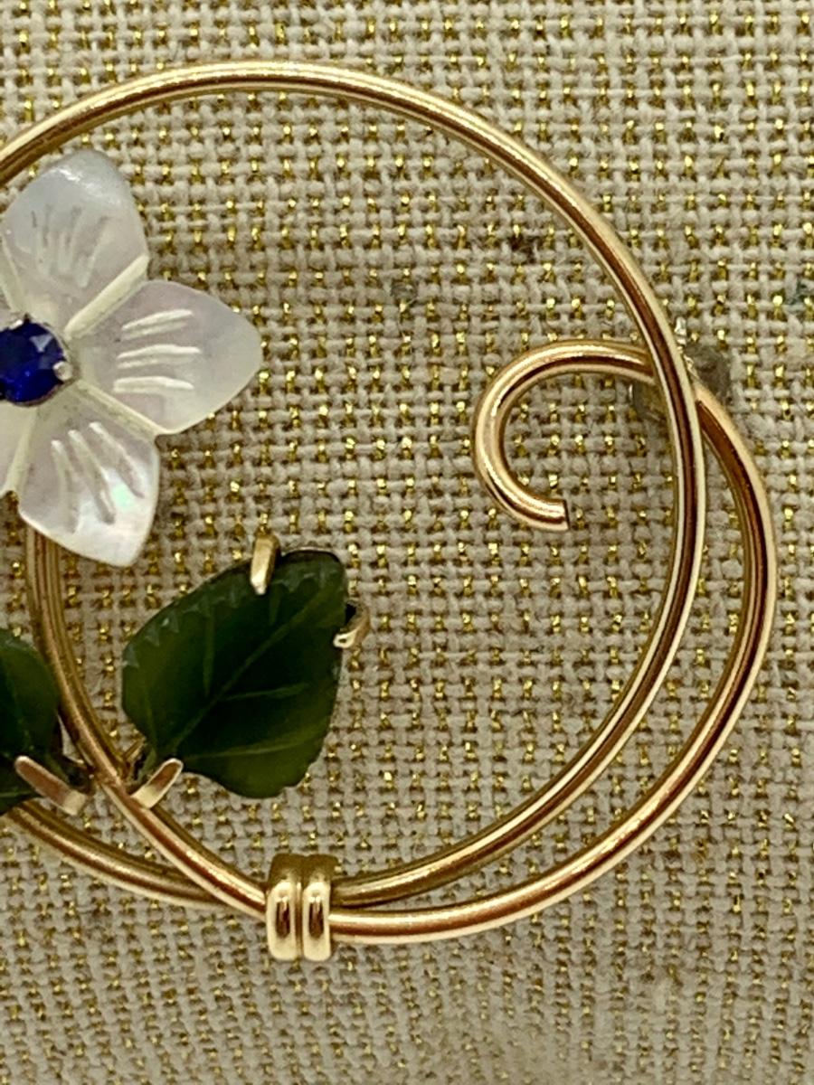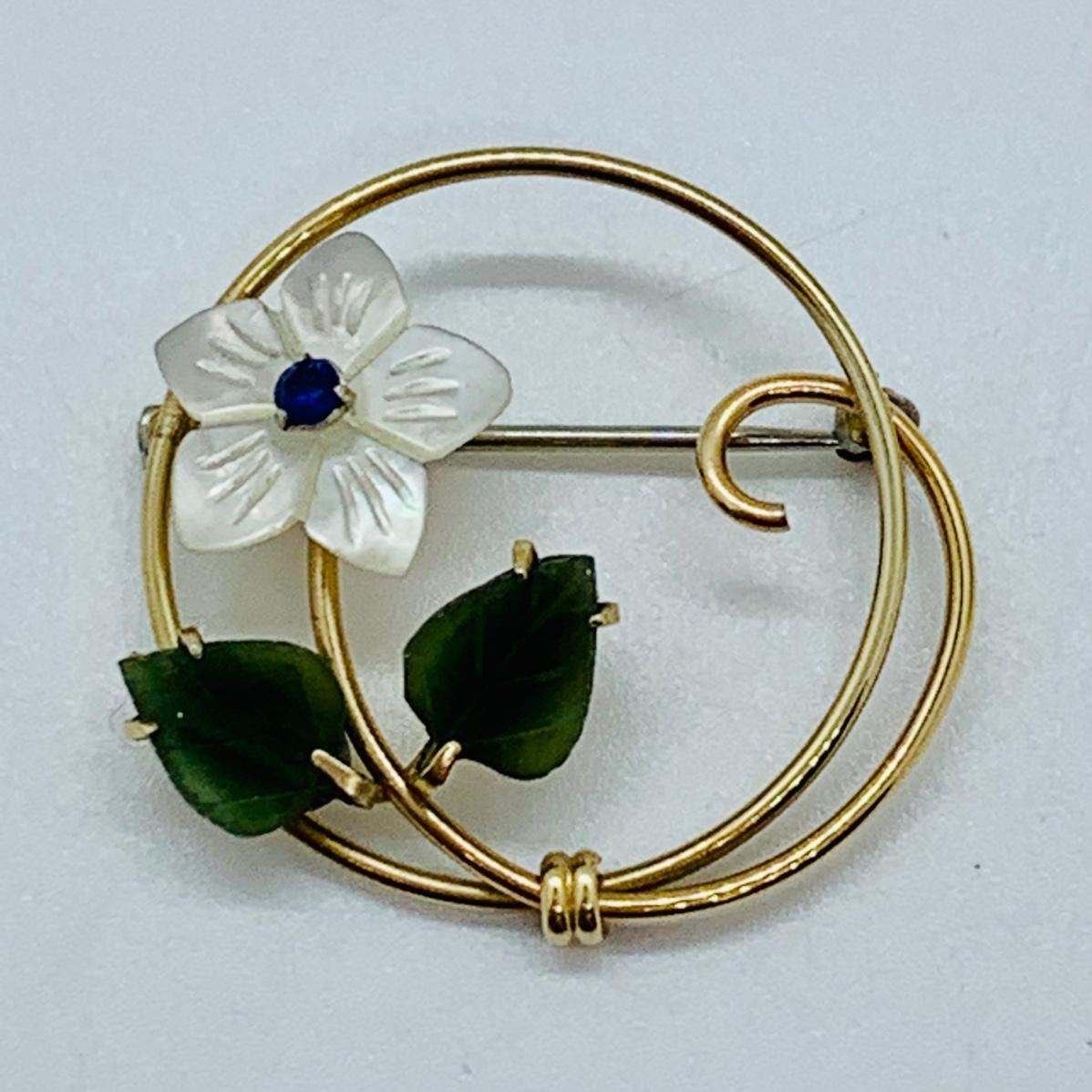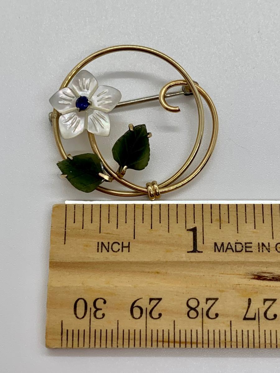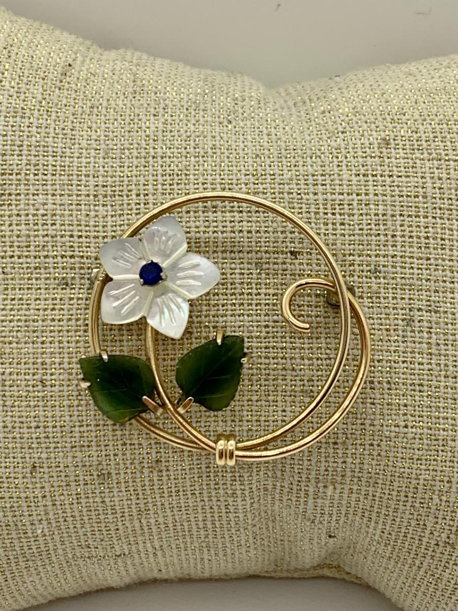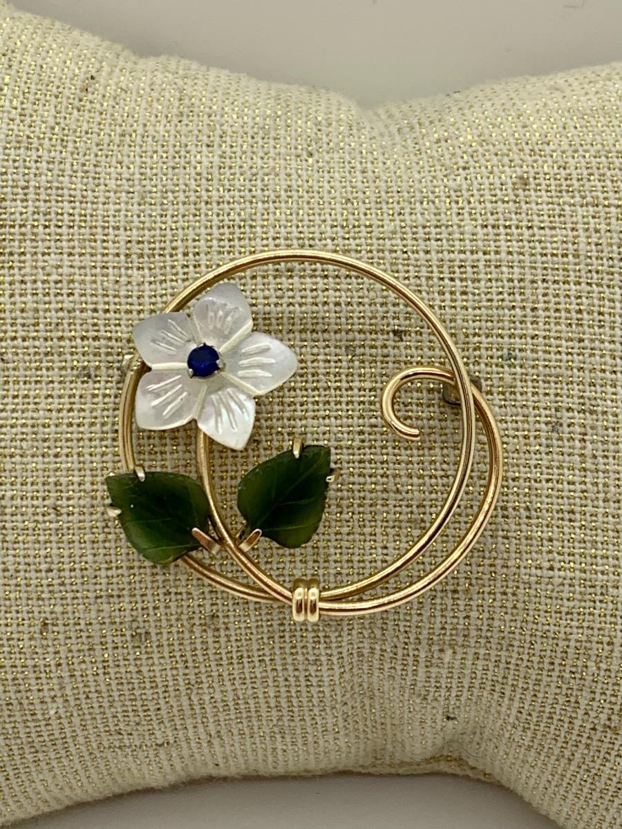 LOT 10R: Vintage Krementz Brooch. Mother of Pearl & Jade