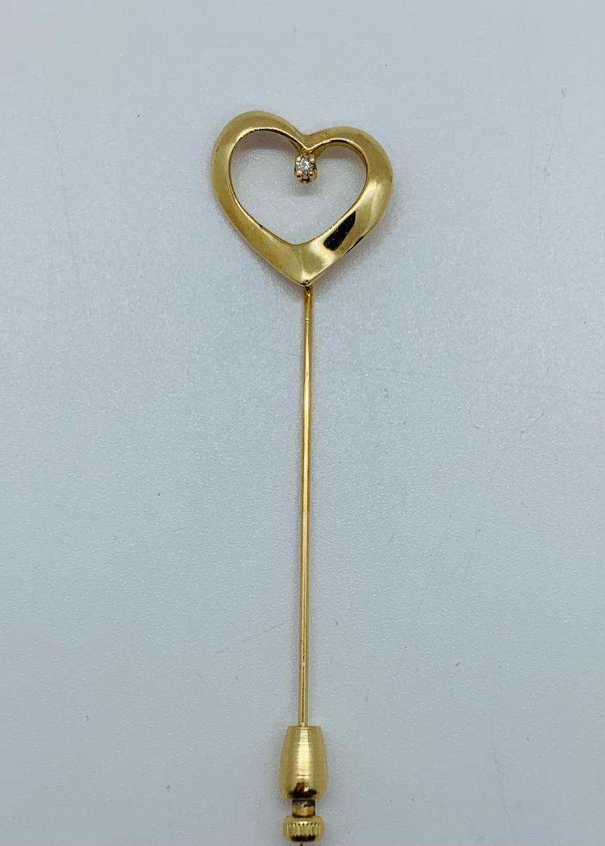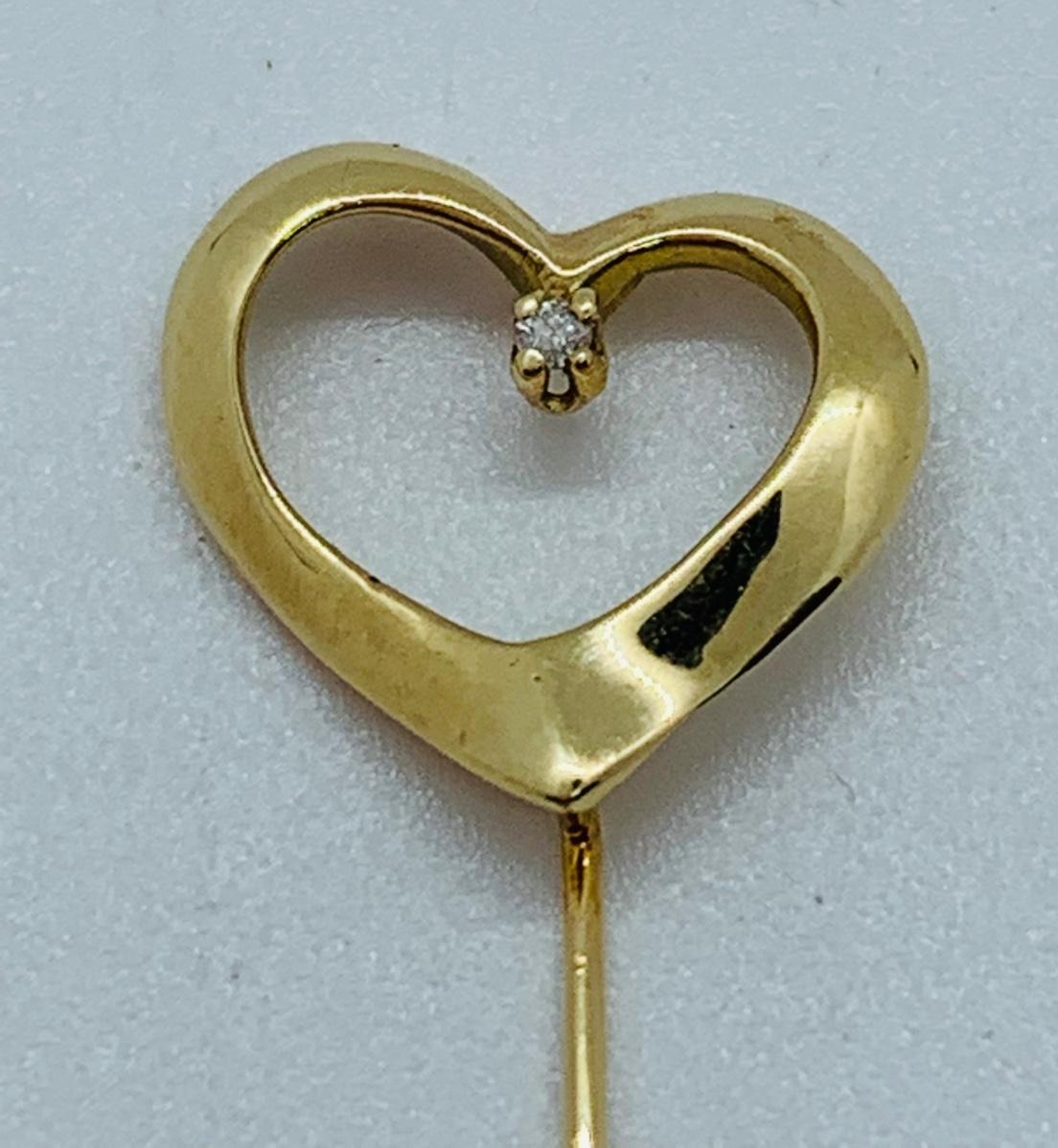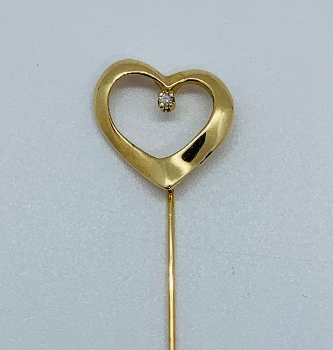 LOT 11R: Beautiful VL 14k Yellow Gold Heart Stick Pin w/Diamond Chip (wt.2.4g)
